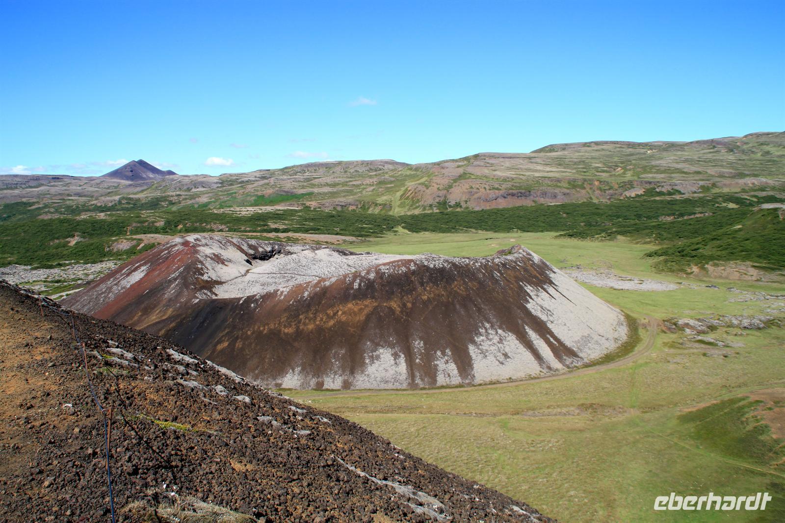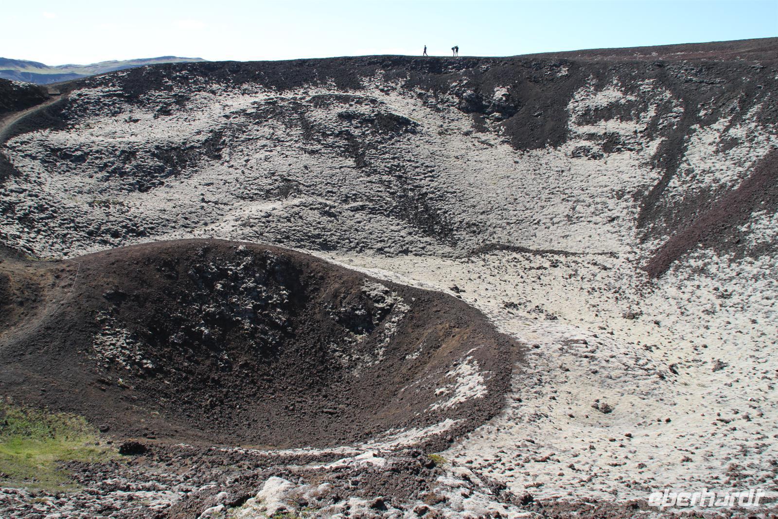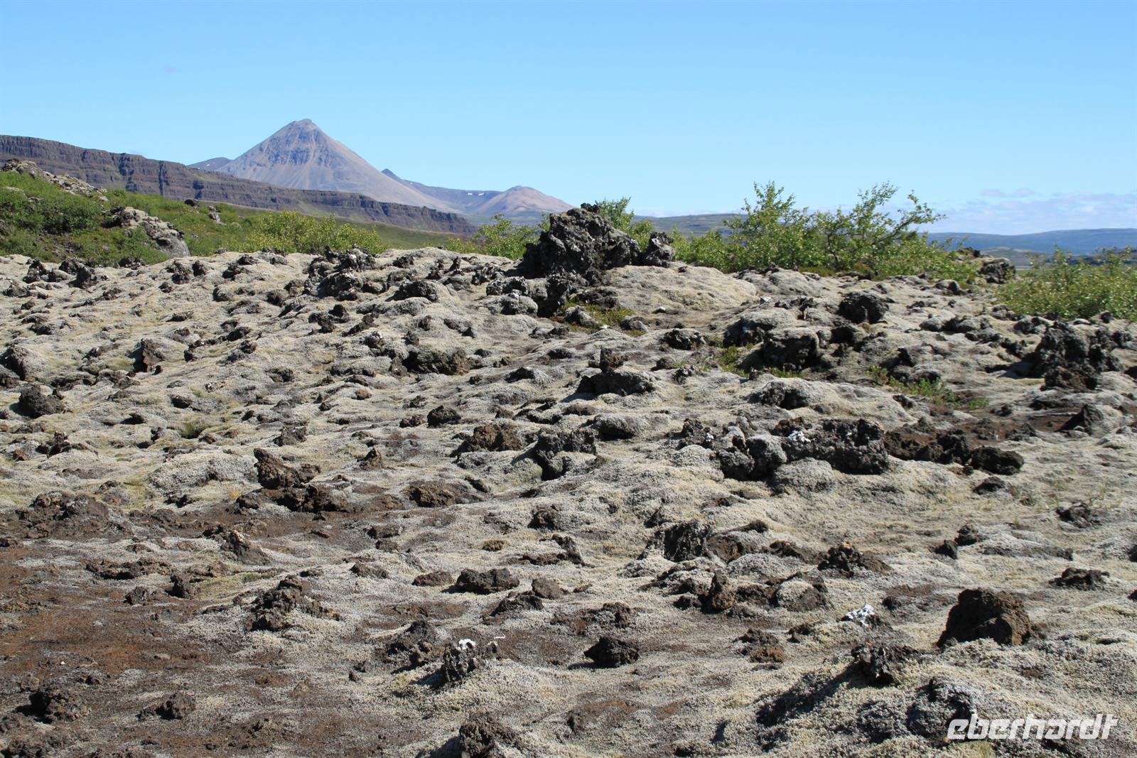 Heute ließen wir Reykjavik hinter uns und machten uns auf den Weg Richtung Norden. Akyreyri hieß das Ziel - die zweitgrößte Stadt der Insel. Doch heute stand eindeutig unter dem Motto „Der Weg ist das Ziel“, denn dieser führte uns durch beeindruckende und abwechslungsreiche Landschaften. Unter dem Walfjord hindurch mit kurzem Stopp am Städtchen Borganes ging es in das Tal Nordurádalur, wo uns der erloschene Krater Grábrók inmitten einer einzigartigen von Moos bedeckten Lavalandschaft begrüßte. Diesen bestiegen, hatte man einen umwerfenden Blick in die Weiten den Tales und die Kette der erloschenen Vulkane rund um den Grábrók.