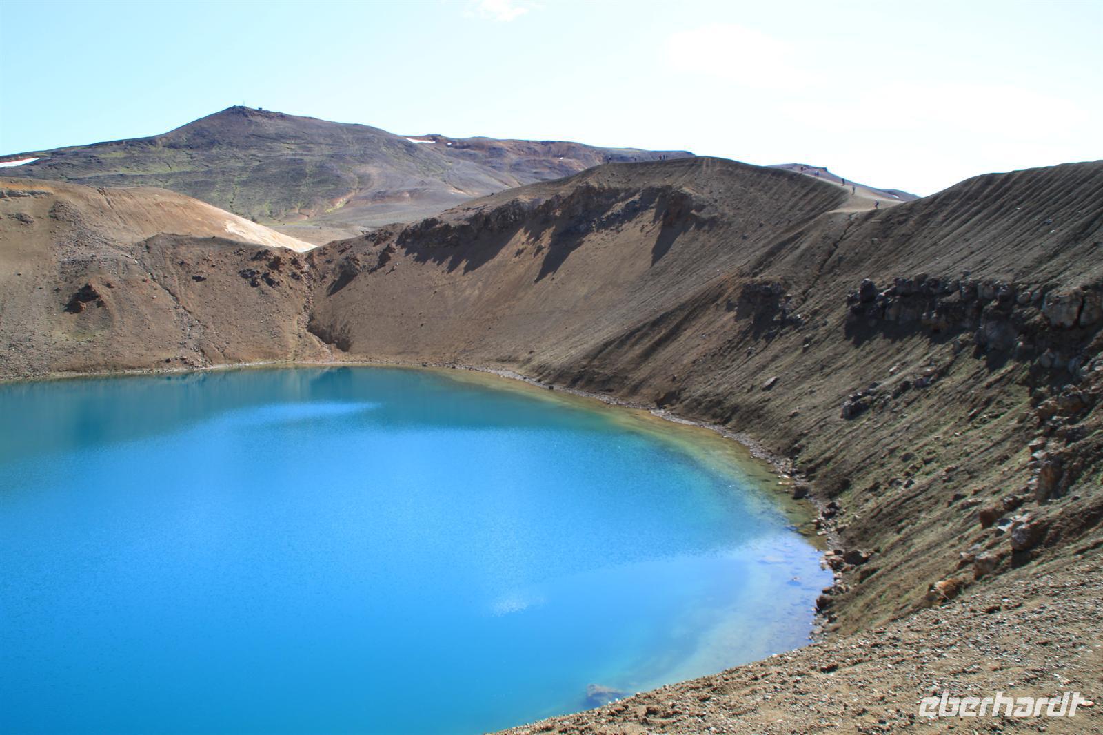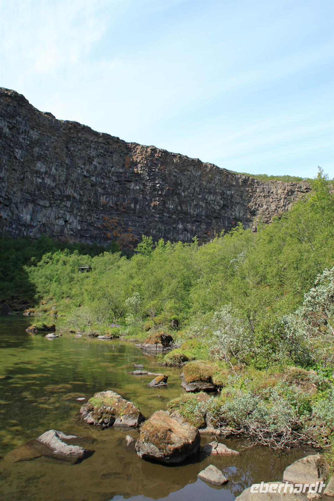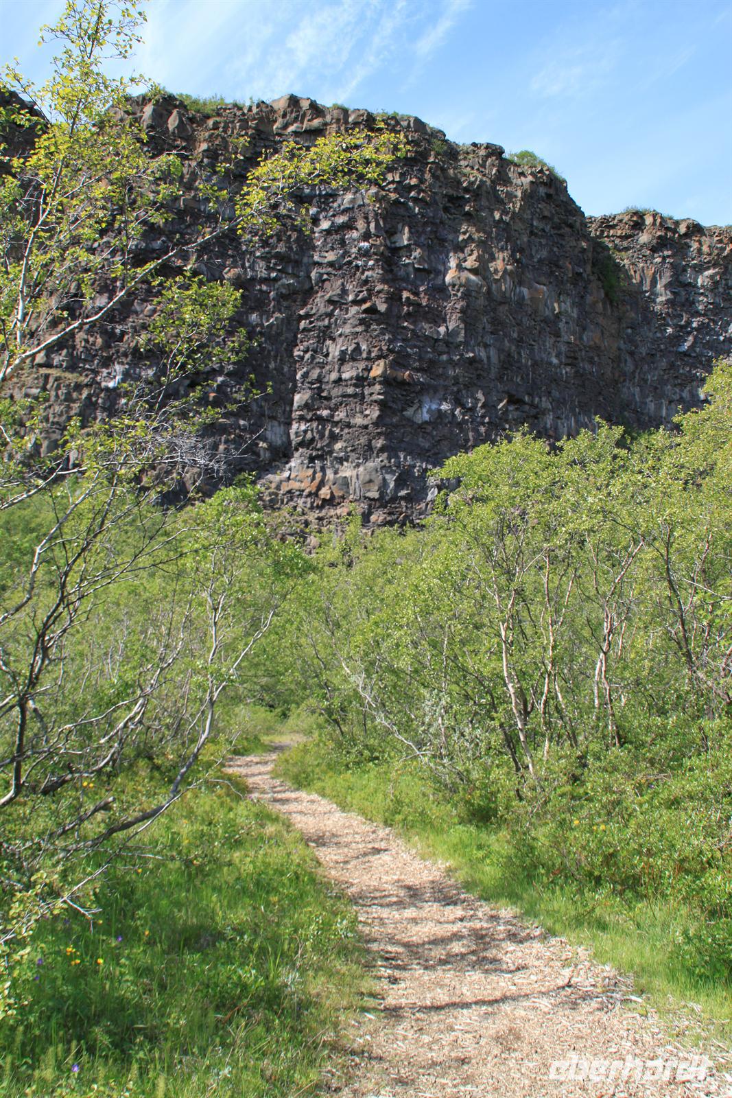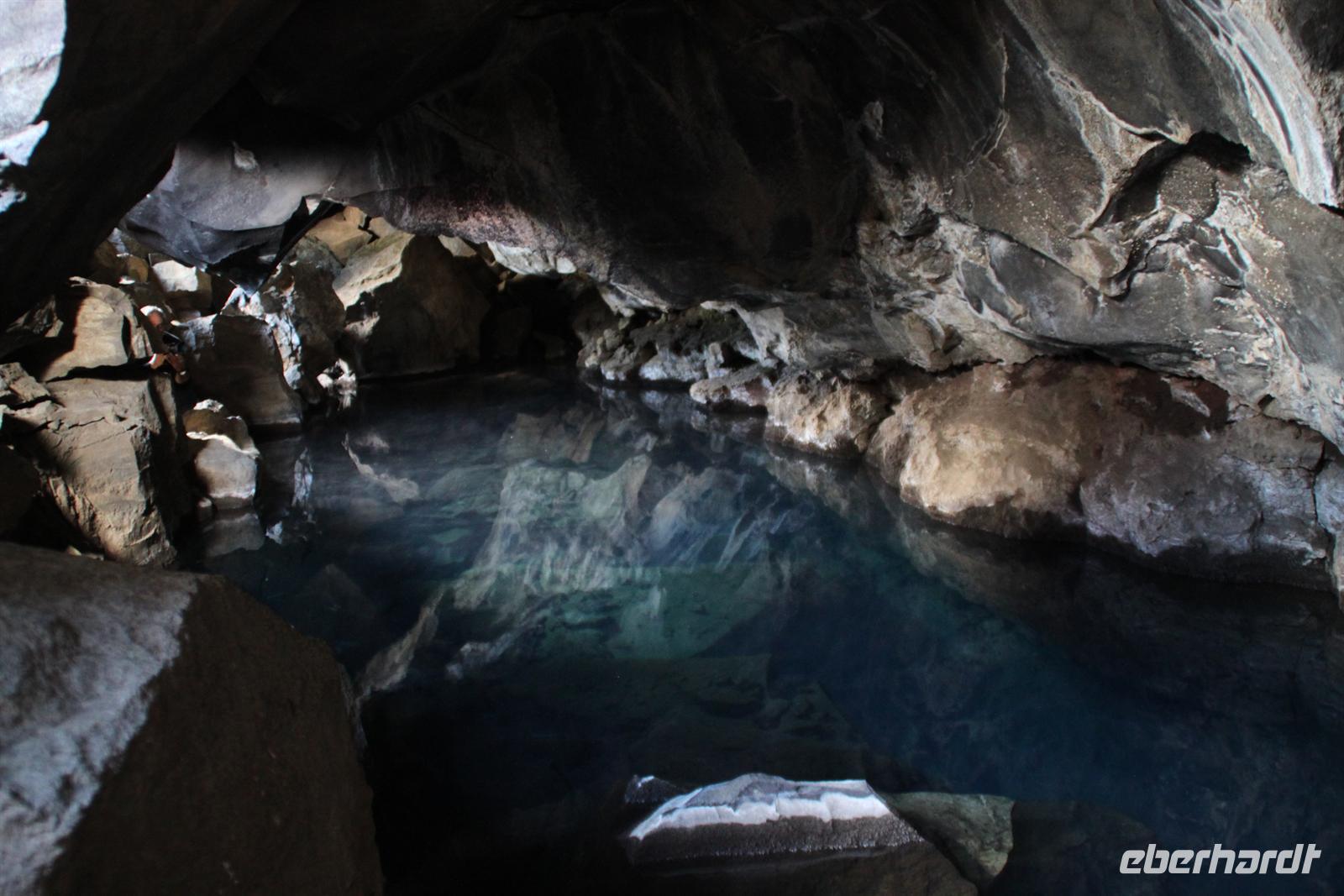 Wieder stand ein Tag mit vielen beeindruckenden Naturschauspielen auf dem Programm. Daher machten wir uns um 9 Uhr auf zum Myvatn Gebiet - auf Deutsch dem Mückensee. Unterwegs galt unser erster Stopp dem Godafoss Wasserfall, der in zwei Stufen aus 12 bzw. 6 Metern Höhe in die Tiefe stürzt. Auf der Weiterfahrt ließen wir den Myvatn See vorerst rechts liegen und fuhren zum Námaskard Hochtemperaturgebiet mit seinem Geothermalkraftwerk sowie den heißen Schwefelquellen, die geruchvoll zu Tage treten und den Dampf aus kochendem Schlamm in die Höhe sprühen. Einmal anders und ganz aus der Nähe nutzten wir eine heiße Schwefelquelle der Jardbödin Lagune, um baden zu gehen und uns im weichen fast cremigen Wasser ein wenig treiben zu lassen. Auf dem Weg zurück zum Myvatn lag nun das Lava-Labyrinth von Dimmuborgir, welches auch als die „Dunklen Burgen“ bezeichnet wird. Dort angekommen konnte auf einem Spaziergang durch diese einzigartige Landschaft ein Jeder diesen Namen nachvollziehen. Anschließend wollten wir nun auch dem Ufer des Myvatn einen Besuch abstatten und so spazierten wir an jenem entlang durch die Pseudokrater, von denen aus man einen wunderschönen Blick über die Seenlandschaft und das Naturgebiet ringsherum erhaschen kann.