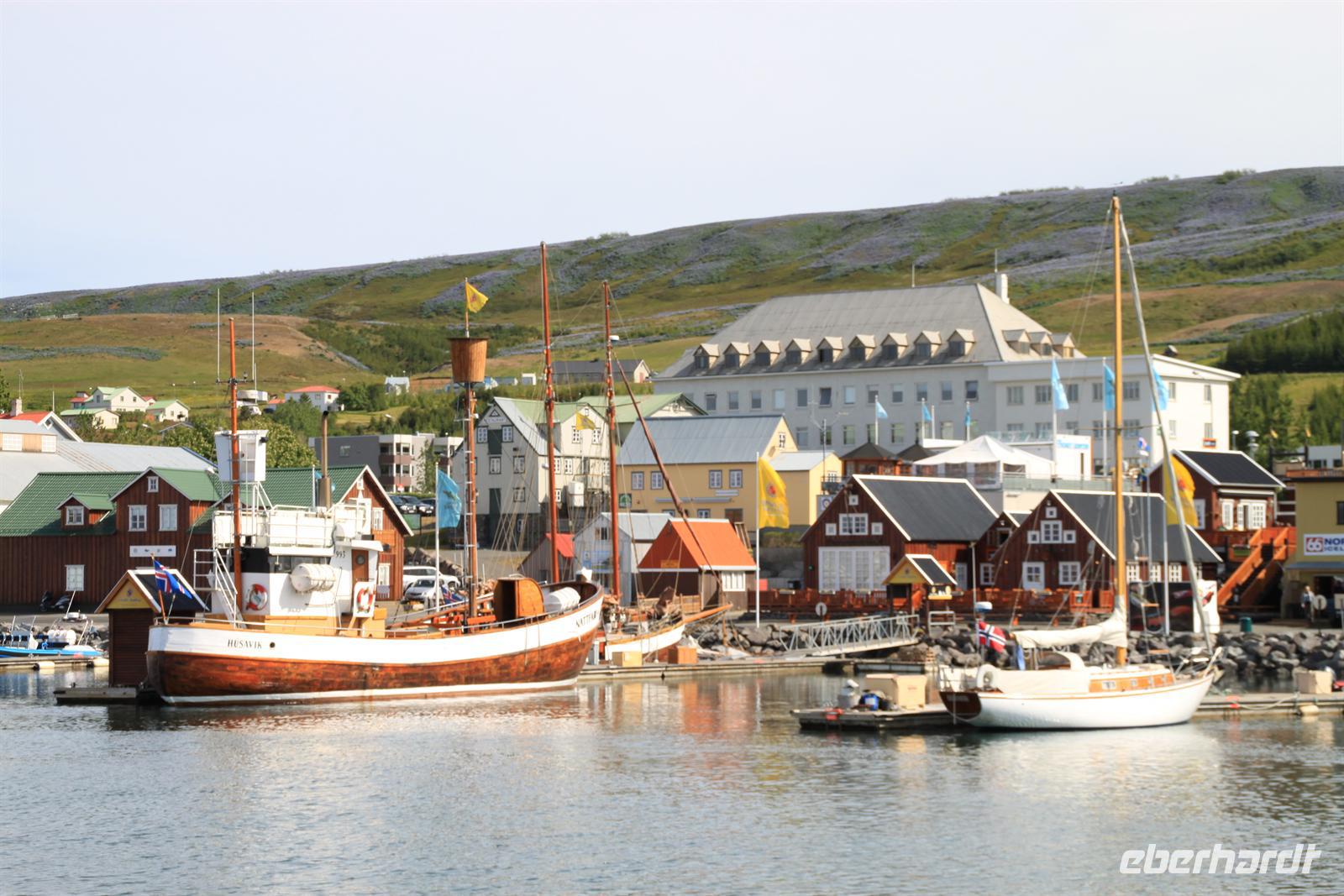 Anschließend fuhren wir die letzte Etappe mit einem kleinen Fotostopp bis nach Akureyri, wo wir in eines der Edda Sommerhotels eincheckten und uns kurze Zeit später wieder zu einem vorabendlichen Spaziergang trafen, um das kleine Städtchen näher kennenzulernen.