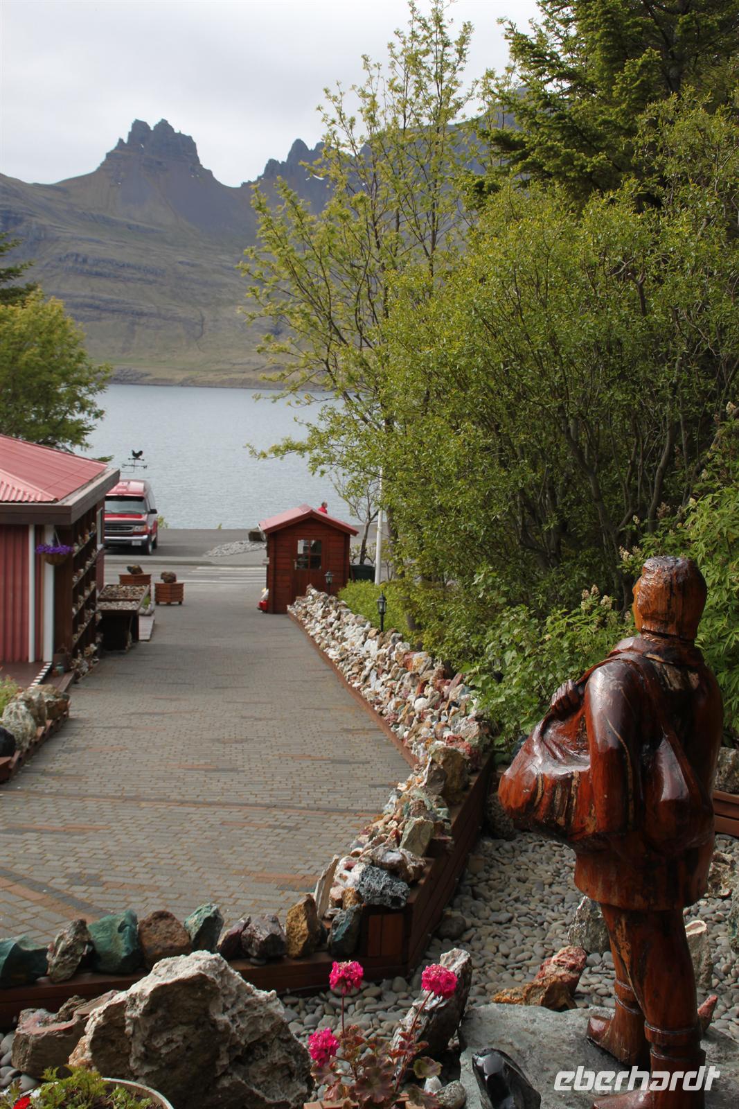 Heute war wieder einmal und ohne Frage der Weg das Ziel - Fjord ein, Fjord aus bewunderten wir die beeindruckende Kulisse Ostislands. Gegen 10.45 Uhr legten wir einen Besuch in „Petras Steinhaus“ ein - ein Haus und Garten bestückt mit tausenden gesammelter Steine. Die Dame ist leider im vergangenen Winter verstorben, doch die Familie führt ihr Erbe in Form der riesigen Steinsammlung fort.