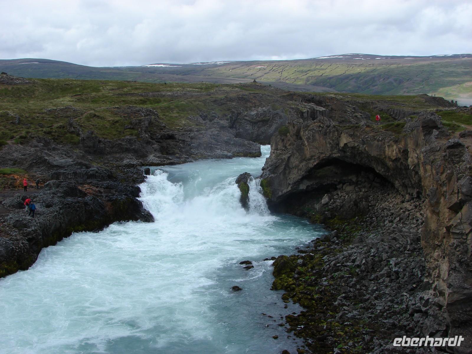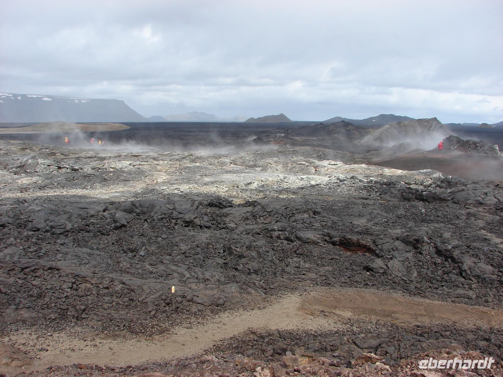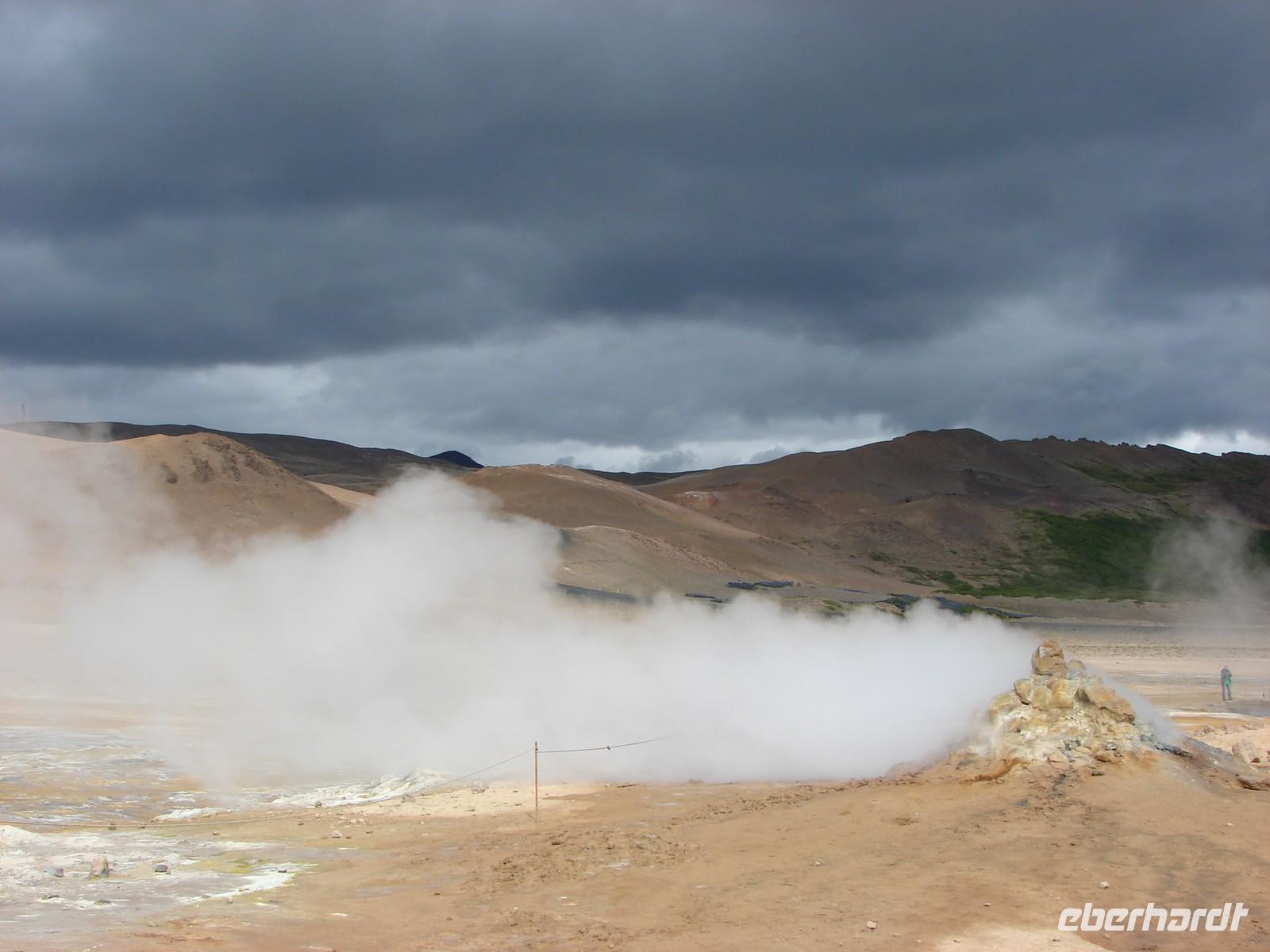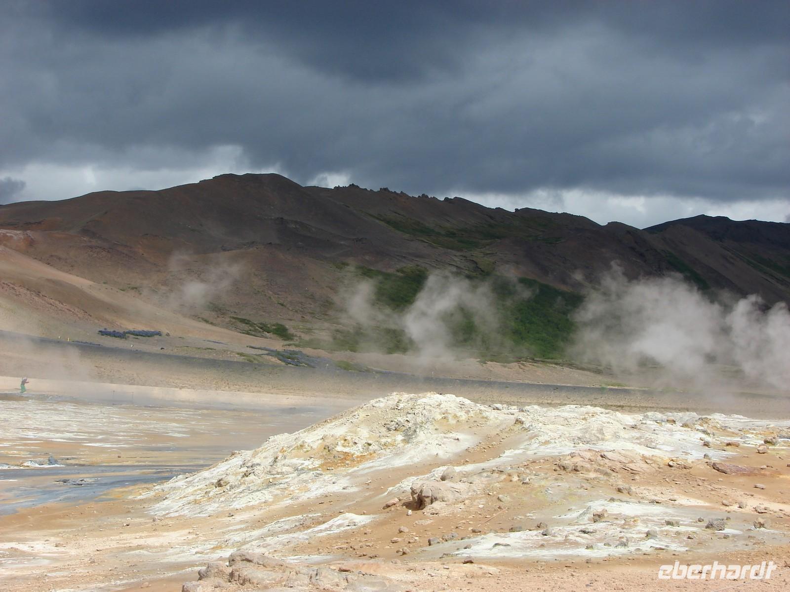 Der heutige Tag stand ganz im Zeichen der Region um den Myvatn, den "Mückensee", und seiner unglaublich vielfältigen Landschaftsformen. Unser erstes Ziel war der Götterwasserfall "Godafoss". Neugierig lauschten wir den Erzählungen Rosas zur Legende um die Namensgebung bevor wir den Godafoss hautnah erlebten. Ganz anders sah es wenige Kilometer weiter im kargen Hochtemperatur Namasgard aus. Unterschiedlichste Farbkombinationen der Erde, strenge Schwefelgerüche und -dämpfe sowie blubbernde Schlammquellen begeisterten uns. So mancher stellte sich genauso die Hölle vor. Ebenso vegetationslos und doch ganz anders sah es bei unserem Aufstieg zum Krater in Kraflagebiet aus. Kilometerweite Lavafelder, wohin man auch schaute. Und trotzdem faszinierte diese eigenartige Landschaft. Ein kurzer Fotostopp führte uns abschließend zum Krater Vit mit seiner türkisblauen Färbung - einfach unbeschreiblich. Nach den vielen Aktivitäten gönnten wir uns eine Pause im warmen Wasser der Badelandschaft "Jardbodin". Besonders gefallen hat uns dabei, dass wir fast das ganze Bad für uns hatten und einfach mal die Seele baumeln lassen konnten. Doch der Tag war noch nicht zu Ende. Bereits auf dem Weg vom Vulkansystem der Krafla hatten wir einen weiten Blick über den ausgebreiteten, relativ flachen Mückensee mit seinen Inseln, die verschiedenen Grüntönen leuchteten. Unweit des Sees liegt das Gebiet Dimmuborgir, dass mit unzähligen Tuffsteinformationen aufwartet. Bei einer kleinen Wanderung durch die "dunklen Berge" lernten wir auch die Geschichte der 13 isländischen Weihnachtsgesellen kennen, die hier wohnen sollen. Zurück am See stoppten wir an den Pseudokratern, die sich direkt im Myvatn befinden und so mancher war erstaunt, dass diese nicht direkt durch aktiven Vulkanismus entstanden sind. Der Abend hielt für einige Gäste unserer Gruppe noch einen ganz besondern Ausflug parat. Selbst nach 22.00 Uhr war es noch taghell und hoch zu Islandpferd erkundeten wir auf einem Ausritt die schöne Umgebung von Akureyri.