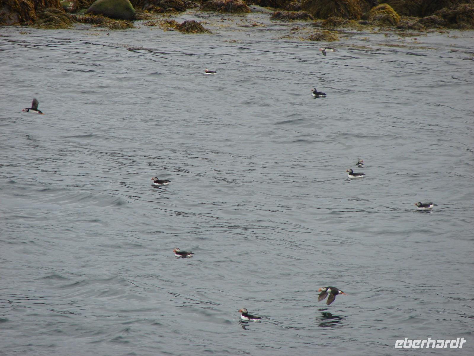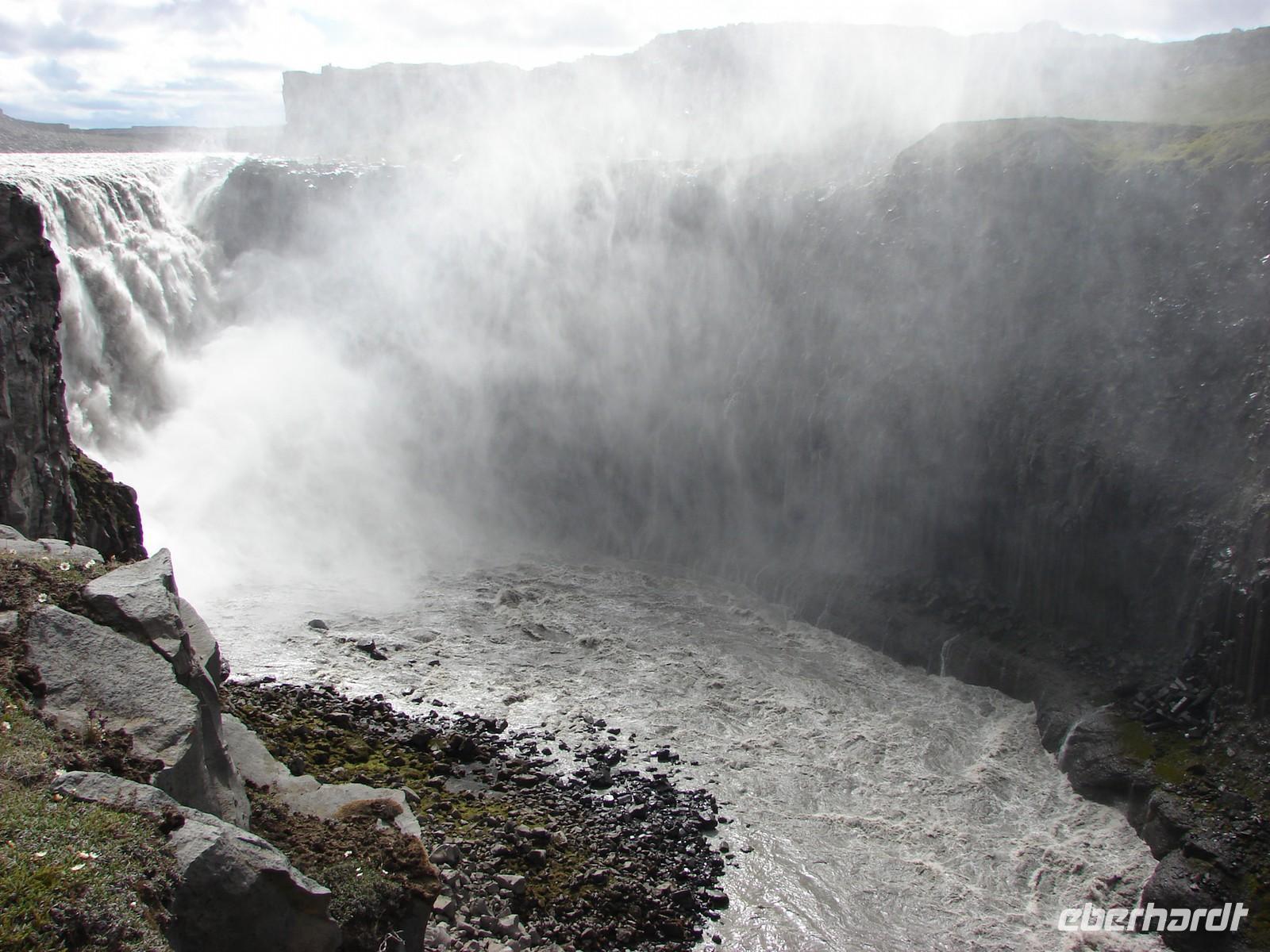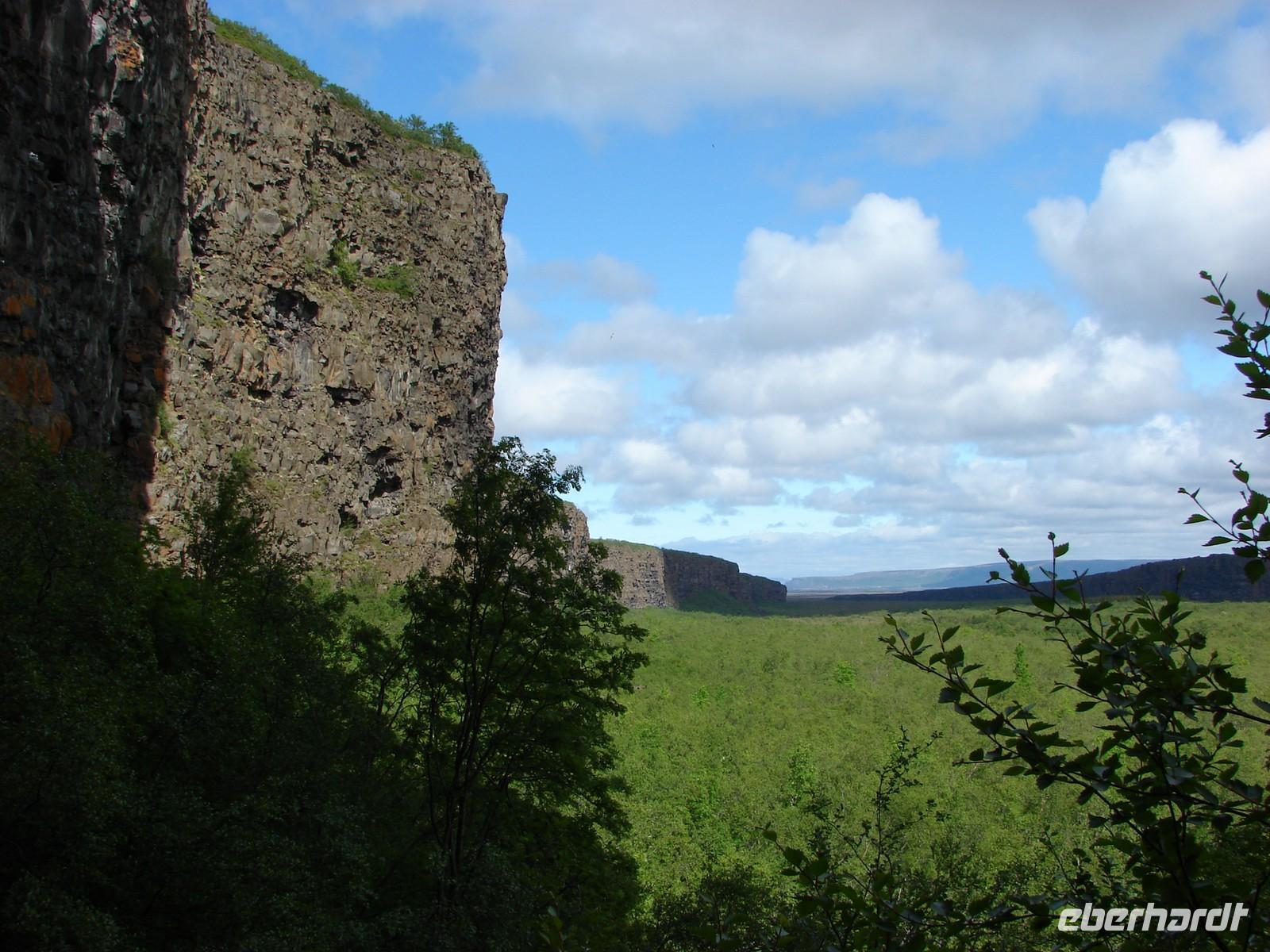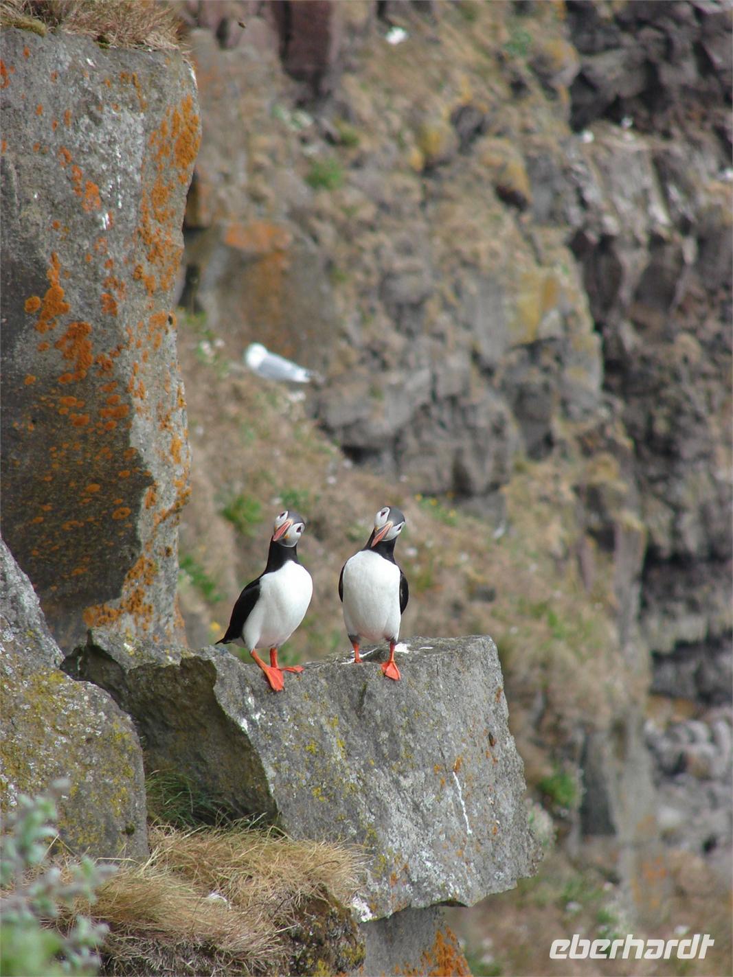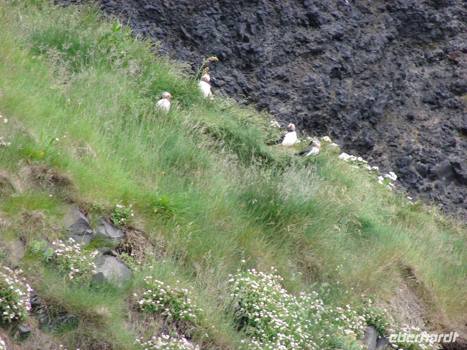 Heute lag nochmal eine lange Etappe vor uns - das Ziel hieß Egilsstadir an den Ostfjorden Islands. Bevor es so richtig auf Reisen ging, deckte sich jeder von uns für das geplante Mittagspicknick im Supermarkt ein. Bei einer kurzen Rundfahrt durch den älteren Teil von Akureyri sahen wir die schönen Häuser in der typischen Wellblecharchitektur und das sogenannte "Nonnahaus", das ehemalige Wohnhaus des bekannten Schriftstellers "Nonni". Mit seinen Erzählungen verbinden nicht nur in Island viele Leute wunderschöne Kindheitserinnerungen. In Husavik machten wir unseren ersten Stopp. Wir besuchten die kleine Kirche oder das interessante Walmuseum, das vom Europäischen Walzentrum betrieben wird.Nördlich von Husavik entfernt zeigte uns Rosa eine Insider-Stelle, an der man Papageientaucher beobachten kann und wir hatten riesiges Glück... An den Klippen kamen wir den possierlichen Tieren relativ nah. Wer eine gute Kamera hatte, konnte sie richtig gut fotografieren. Ein Höhepunkt an diesem Tag sollte die durch Gletscherläufe geformte hufeisenförmige Felsschlucht von Asbyrgi werden. Laut der nordischen Mythologie soll Ásbyrgi jedoch durch einen Hufabdruck von Odins Pferd entstanden sein. Mystisch und faszinierend lauschten wir Rosas Gedicht. Lustig ging es dagegen beim anschließenden Picknick zu, jeder packte aus, was er sich am Morgen gekauft hatte. Mit einem gewaltigen Tosen erwartete uns als nächstes der bis zu 100 Meter hohe Detifoss. Faszinierend standen wir nach einem beschwerlichen Abstieg an der Abbruchkante inmitten der Gischt. Im Anschluss daran fuhren wir zum höchstgelegensten Bauernhof Islands zur Kaffeepause. Von der Terrasse hatten wir eine tolle Sicht auf den Berg der Götter, der sonst oft nebelumschlungen ist. Auch einen Blick in die typischen Torfhäuschen und die kleine Kirche ließen wir uns nicht nehmen. Damit die Reise auch weiterhin so glücklich verläuft, steuerte unsere Fahrer Ole den Bus entlang einer Schotterpiste zu einem Steinhaufen mitten im "Nirvana". Wie viele andere Reisende, warfen auch wir einen Stein auf die Ansammlung. Auf der Busfahrt nach Egilsstadir las Rosa aus dem Roman "Die Eisumschlungene" vor, die von der Suche Ina von Grumbkows nach dem verschollenen Geologen Walther von Knebel berichtet.