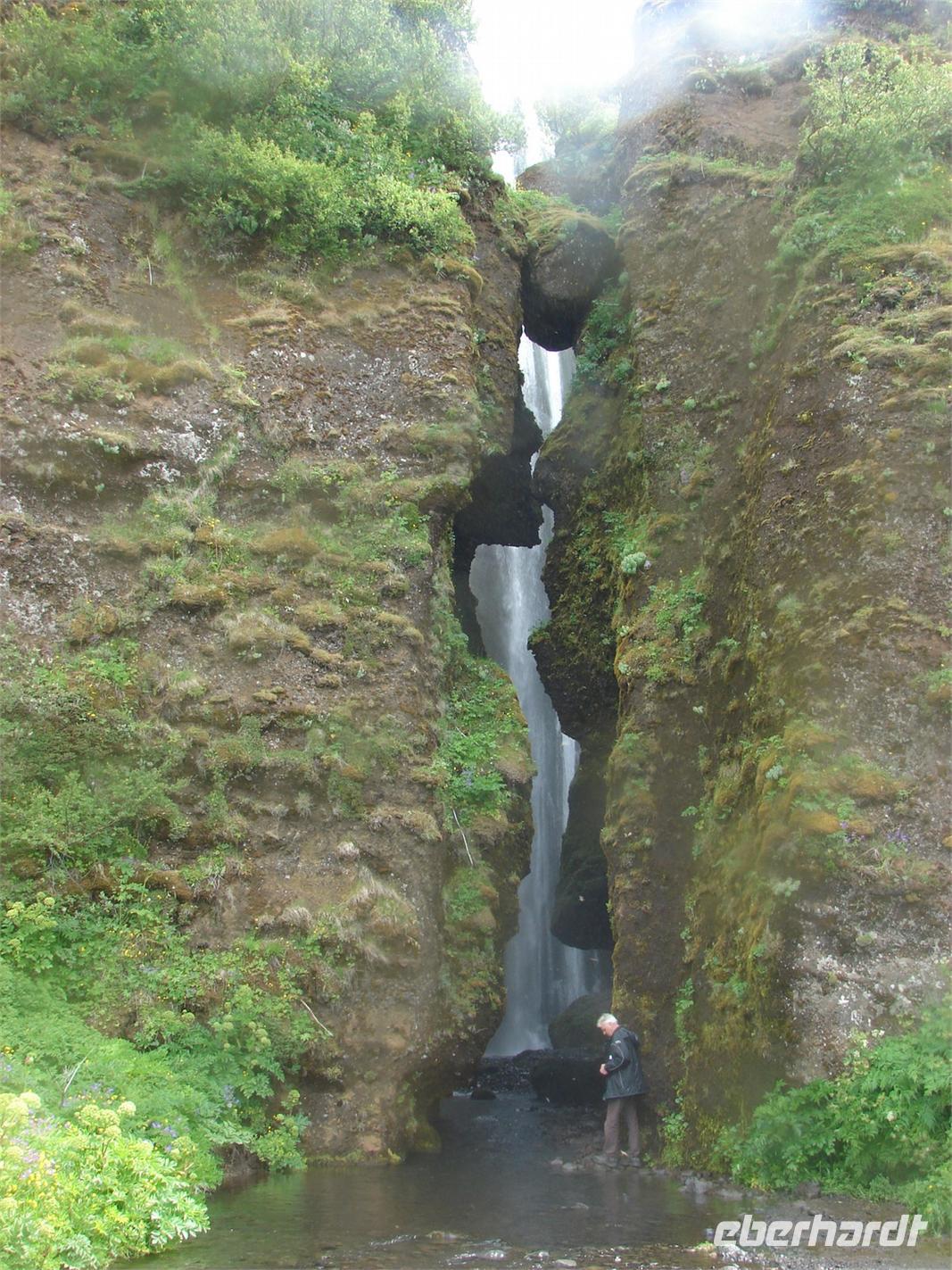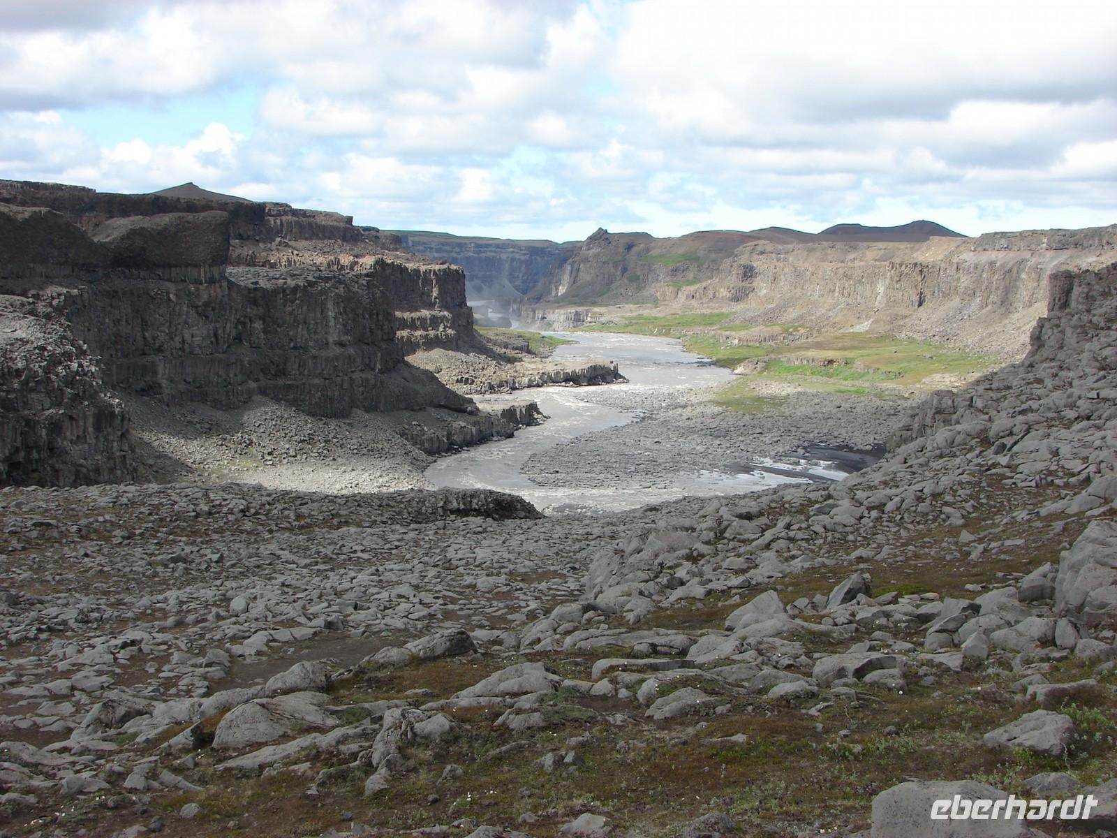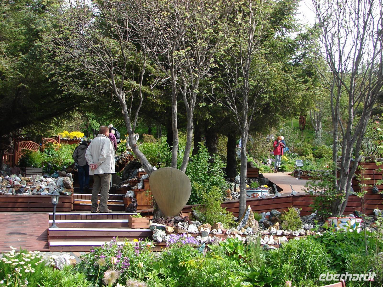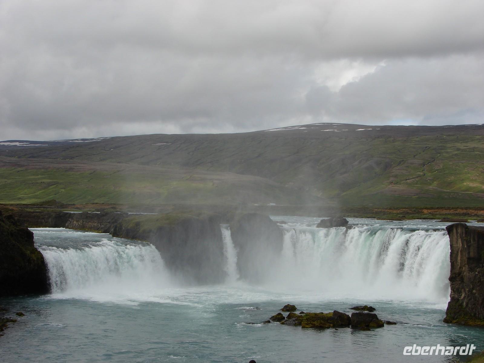 Heute lag nochmal eine lange Etappe vor uns - das Ziel hieß Egilsstadir an den Ostfjorden Islands. Bevor es so richtig auf Reisen ging, deckte sich jeder von uns für das geplante Mittagspicknick im Supermarkt ein. Bei einer kurzen Rundfahrt durch den älteren Teil von Akureyri sahen wir die schönen Häuser in der typischen Wellblecharchitektur und das sogenannte "Nonnahaus", das ehemalige Wohnhaus des bekannten Schriftstellers "Nonni". Mit seinen Erzählungen verbinden nicht nur in Island viele Leute wunderschöne Kindheitserinnerungen. In Husavik machten wir unseren ersten Stopp. Wir besuchten die kleine Kirche oder das interessante Walmuseum, das vom Europäischen Walzentrum betrieben wird.Nördlich von Husavik entfernt zeigte uns Rosa eine Insider-Stelle, an der man Papageientaucher beobachten kann und wir hatten riesiges Glück... An den Klippen kamen wir den possierlichen Tieren relativ nah. Wer eine gute Kamera hatte, konnte sie richtig gut fotografieren. Ein Höhepunkt an diesem Tag sollte die durch Gletscherläufe geformte hufeisenförmige Felsschlucht von Asbyrgi werden. Laut der nordischen Mythologie soll Ásbyrgi jedoch durch einen Hufabdruck von Odins Pferd entstanden sein. Mystisch und faszinierend lauschten wir Rosas Gedicht. Lustig ging es dagegen beim anschließenden Picknick zu, jeder packte aus, was er sich am Morgen gekauft hatte. Mit einem gewaltigen Tosen erwartete uns als nächstes der bis zu 100 Meter hohe Detifoss. Faszinierend standen wir nach einem beschwerlichen Abstieg an der Abbruchkante inmitten der Gischt. Im Anschluss daran fuhren wir zum höchstgelegensten Bauernhof Islands zur Kaffeepause. Von der Terrasse hatten wir eine tolle Sicht auf den Berg der Götter, der sonst oft nebelumschlungen ist. Auch einen Blick in die typischen Torfhäuschen und die kleine Kirche ließen wir uns nicht nehmen. Damit die Reise auch weiterhin so glücklich verläuft, steuerte unsere Fahrer Ole den Bus entlang einer Schotterpiste zu einem Steinhaufen mitten im "Nirvana". Wie viele andere Reisende, warfen auch wir einen Stein auf die Ansammlung. Auf der Busfahrt nach Egilsstadir las Rosa aus dem Roman "Die Eisumschlungene" vor, die von der Suche Ina von Grumbkows nach dem verschollenen Geologen Walther von Knebel berichtet.