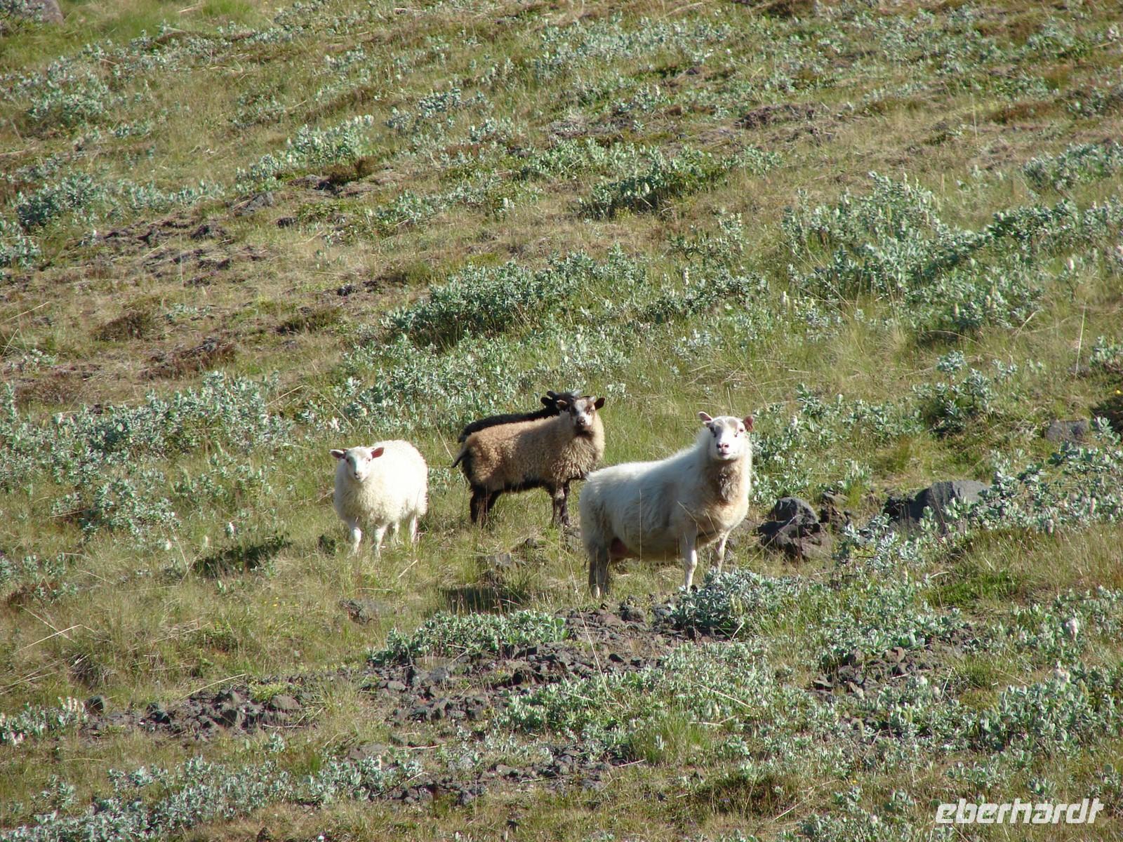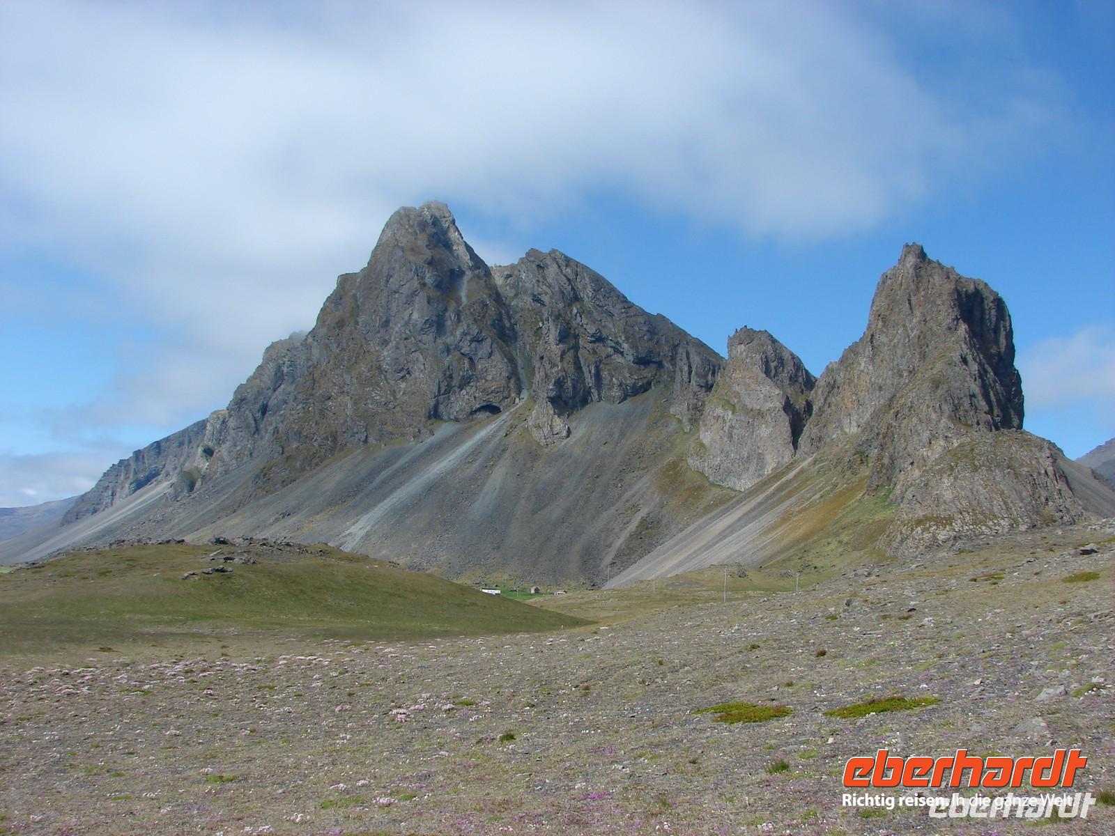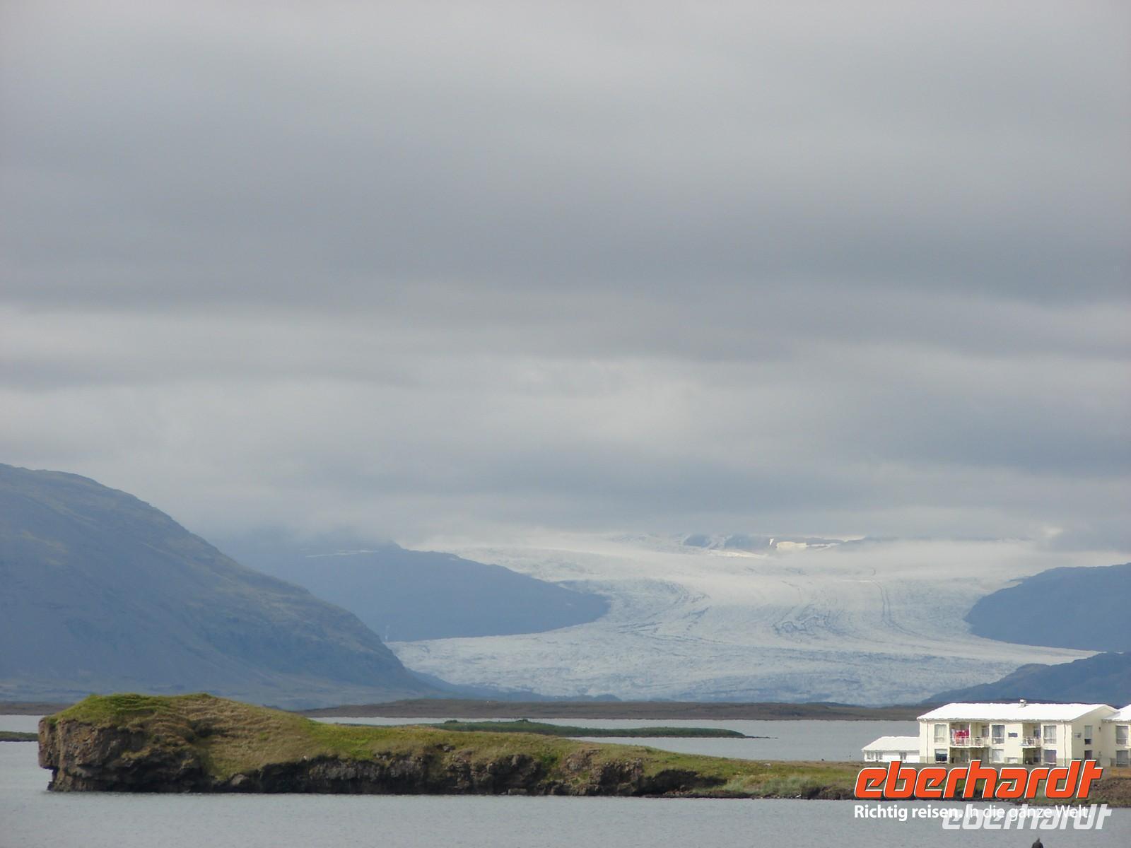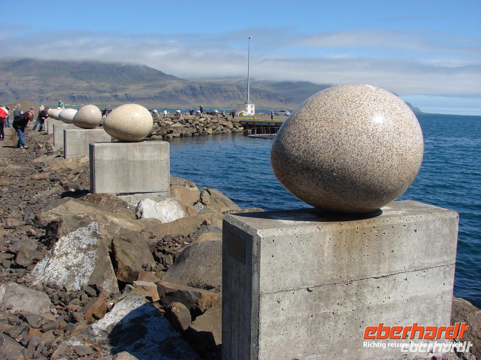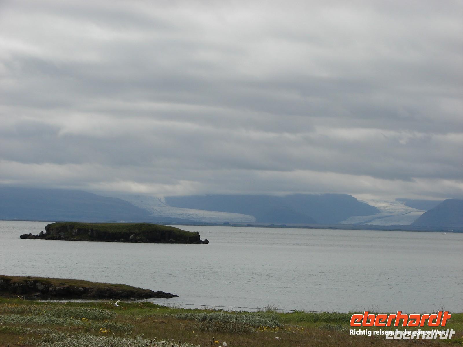 Bei traumhaftem Wetter starten wir zu unserer Fahrt entlang der Ostfjorde. Auf unsere Bitte stoppten Ole und Rosa kurz nach Egilsstadir, da wir ganz in der Nähe eine Schaffamilie sahen. So gern hätten wir ein Foto "mitgenommen", aber leider waren sie zu scheu und suchten schnell das Weite. Die erste Etappe führte uns nach Reyðarfjöður, einem kleinen Ort am gleichnamigen Fjord. Durch das hier erbaute Aluminiumwerk wurde er zu einem wichtigen Punkt in dieser Gegend. Nach dem kurzen Fotostop gab es eine kleine Schrecksekunde, denn die hintere Tür des Busses ließ sich nicht wieder schließen. Mit vereinten Kräften schafften wir es aber doch und der Bus ließ uns bis zum Ende unserer Reise nicht nochmal im Stich. Eine Überraschung erwartete uns in Petras Steinhaus - wär hätte das gedacht, welche Schätze in nach außen eher unscheinbar aussehenden Steinen zu finden sind. Gemütlich schlenderten wir durch den Garten und staunten, was man mit einer Sammelleidenschaft so alles zusammentragen kann. Mittags erreichten wir den Künstlerort Djúpivogur. Etwas außerhalb zeigte uns Rosa eine ungewöhnlich lange Reihe steinerner Eier auf. Auf etwa 30 bis 40 gewaltigen Betonsockeln thronen große polierte Steineier. Jedes der Eier besteht aus einem anderen in Island vorkommenden Gestein. Im Café des alten Langhaus Langabuð wollten wir eigentlich gemütlich Mittagessen, aber leider hatten sich das gleichzeitig auch mehrere andere Gruppen überlegt. Aber letztendlich bekam jeder sein gewünschtes Sandwich oder einen Kaffee. Richtig Spaß machte dann der Spaziergang am Strand mit dem Sammeln von Steinen. Wunderbar warm fühlten sich die kleinen Lavakiesel an und das Strandblauglöckchen wurde dabei aufgrund des komplizierten Namens zu unserer Lieblingsblume. Unser Quartier schlugen wir heute am Fuße des größten Gletschers in Höfn auf. Gut sichtbar von unserem Hotel ragten die Gletscherzungen des Vatnajökull fast bis zum Wasser. Alle freuten sich schon auf das besondere Erlebnis, abends den Gletscher mit dem Jeep oder dem Schneemobil näher zu entdecken. Leider machte uns am Abend der Nebel einen Strich durch die Rechnung und die Tour wurde abgesagt, weil man auf dem Gletscher die Hand vor Augen nicht sah - schade! Am Ende waren wir uns aber einig, lieber 9 nicht nur wettermäßig traumhafte Tage und einen im Nebel versunkenen als andersherum. Dafür gab es als kleinen Ausgleich zum Abendessen Hummer, was allen vorzüglich schmeckte.