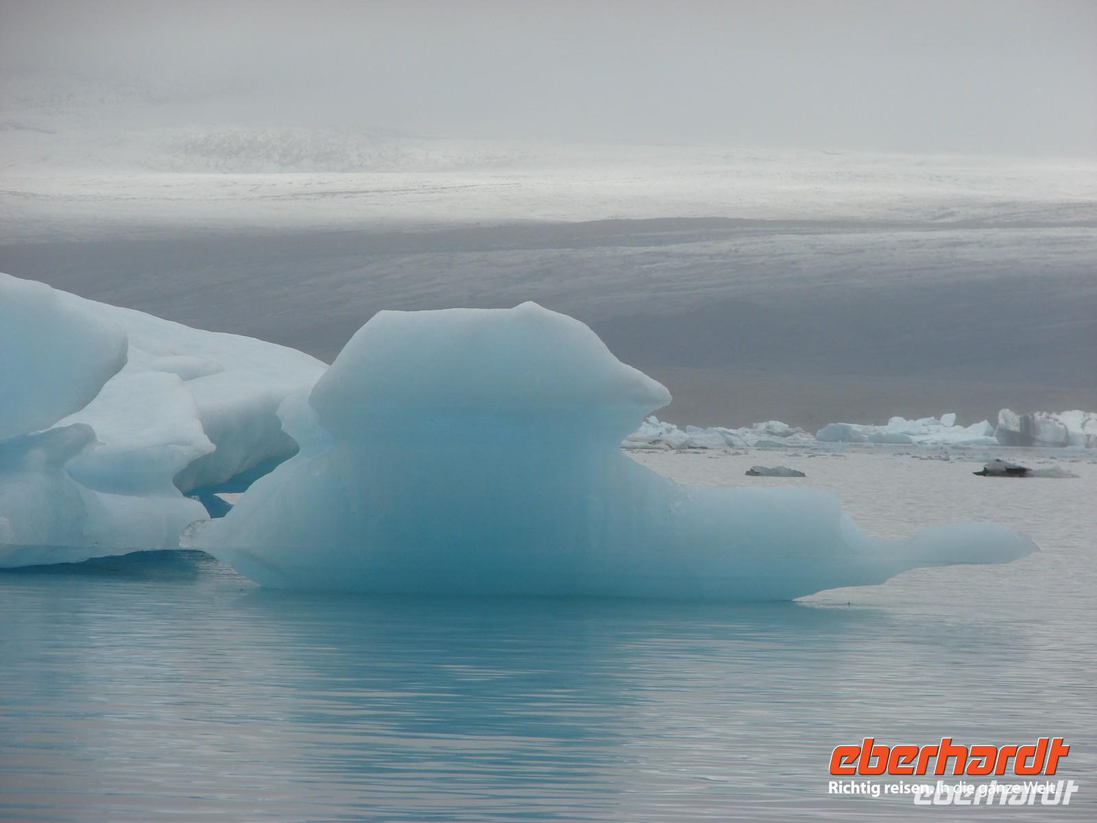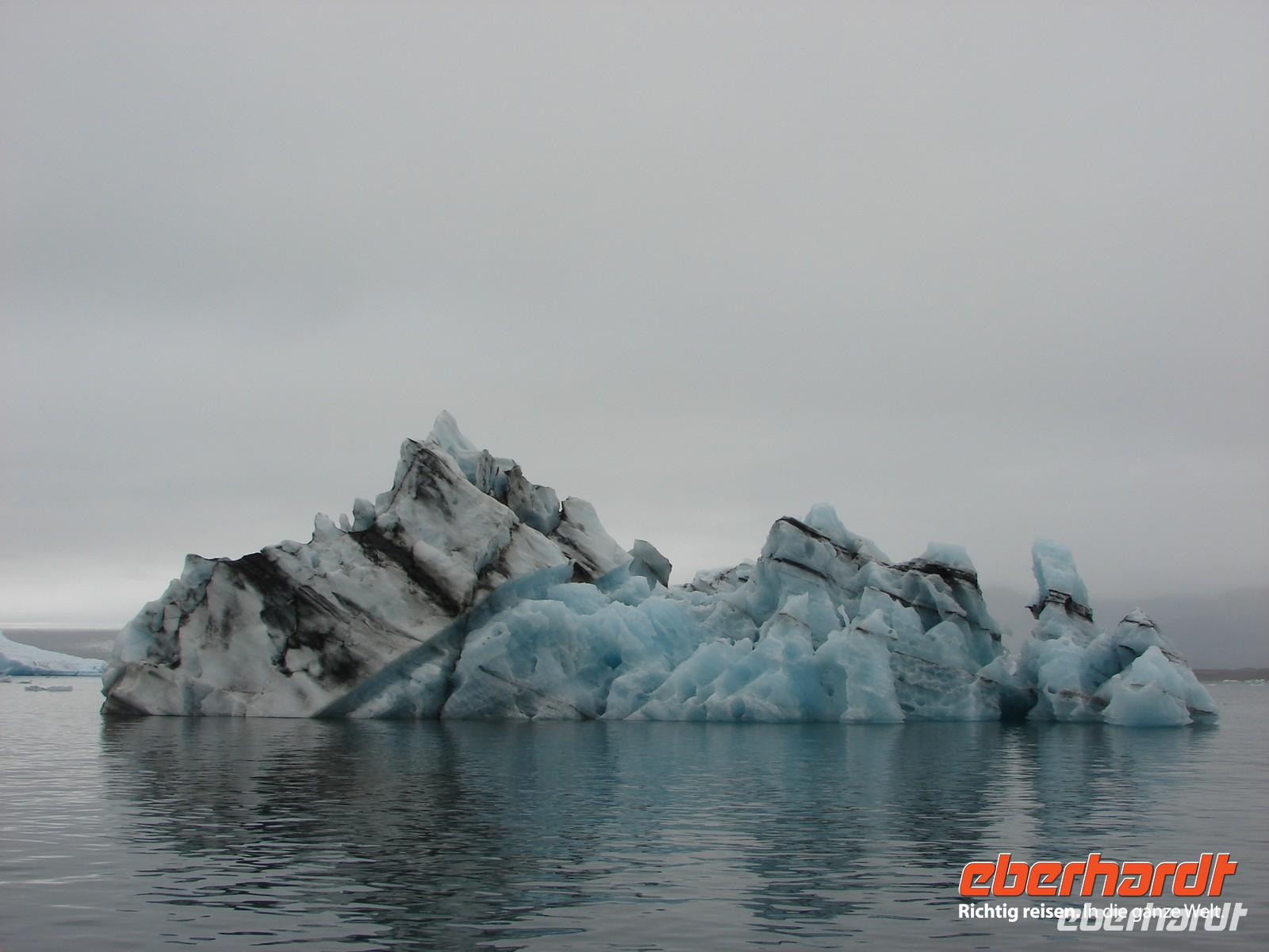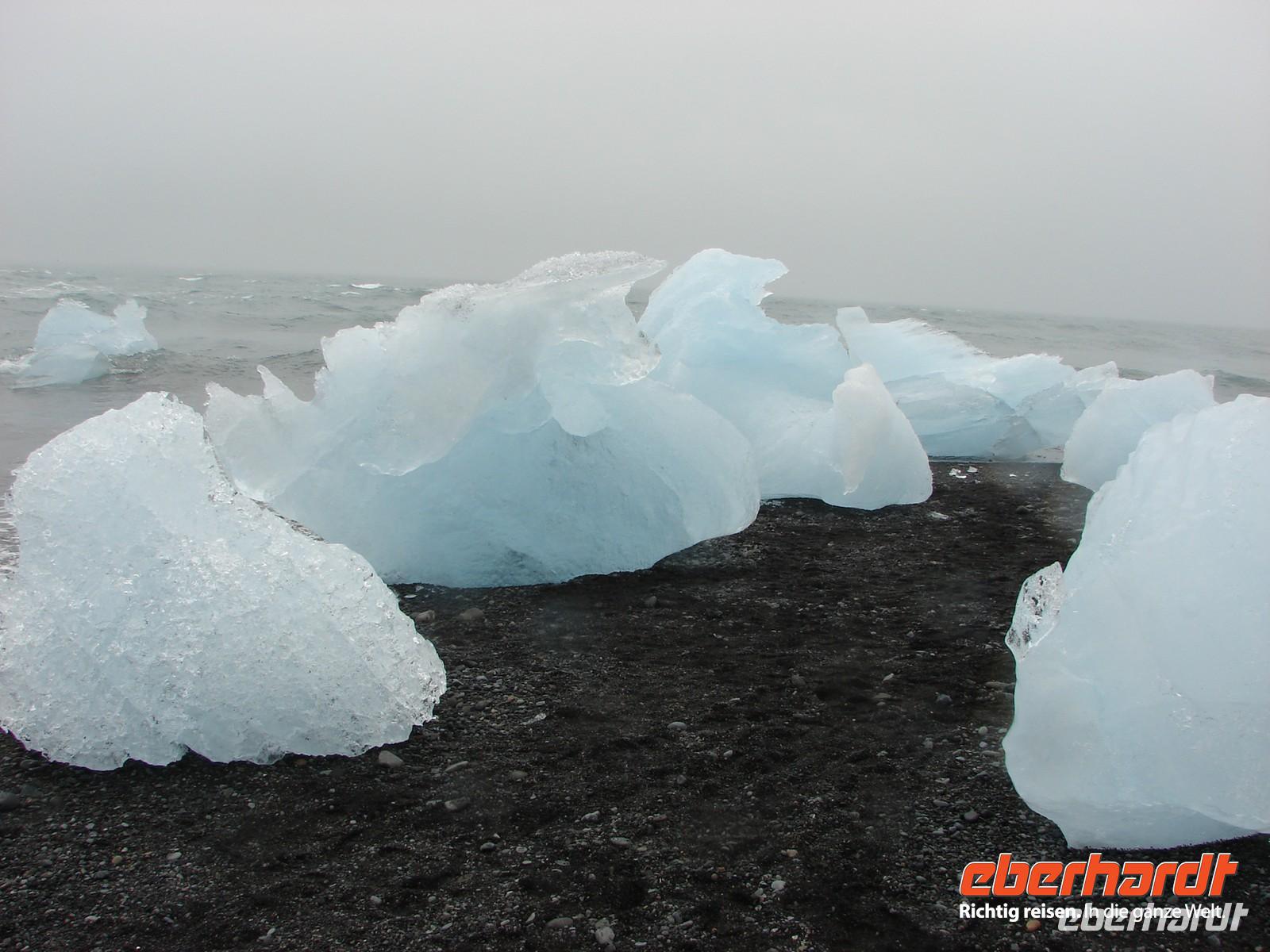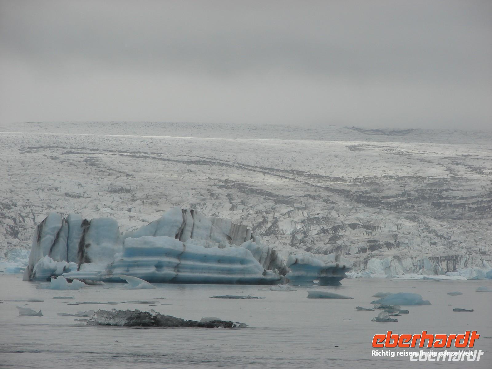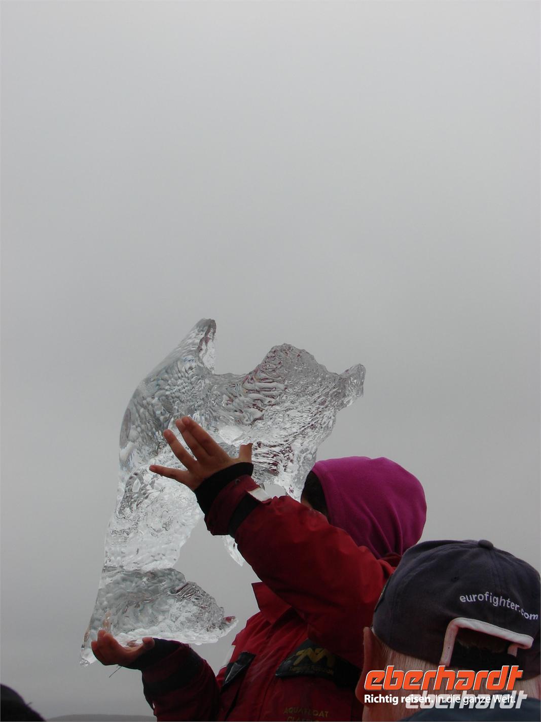 Der heutige Tag stand ganz im Zeichen der Gletscherlagune Jökulsárlón. Für viele Gäste unserer Gruppe war es einer der Höhepunkte unserer Reise, weil keiner so richtig auf das Naturschauspiel vorbereitet war. Mit Amphibienfahrzeugen ging es zunächst ganz nah an die Gletscherzunge und wir konnten uns ein wenig wie James Bond fühlen. Sogar frisches Gletschereis konnten wir probieren und ein auf einer Eisscholle ruhender Seehund schaute uns in Ruhe bei unserer Fahrt zu. Eine Besonderheit liegt neben der Größe in der Vielzahl an gekalbten Eisbrocken und der Verbindung zum offenen Meer. Die durch den kurzen Fluss ins offene Meer herausgetriebenen Eisstücke werden durch die Gezeiten an den schwarzen Basalt- und Lavastrand gespült. Das strahlende Blau des Eises im Kontrast zum schwarzen Strand ergeben eine einzigartige Kulisse. In Svanifelljökull hatten wir dann auch die Möglichkeit zu Fuss ganz dicht an eine der Gletscherzungen zu gehen. Danach stärkten wir uns bei einem rustikalen Picknick und probierten verschiedenen isländische Spezialitäten, unter anderem Trockenfisch, Lachs, einen zünftigen Brennevin und Kremkekse. Voller Elan machten wir uns dann zur nächsten Wanderung im Skaftafell NP auf. Da es ausgerechnet in diesem Moment anfing zu regnen. Die Gäste, die tapfer mit durch den Regen wanderten, testen zum einzigsten Mal auf unserer Reise ihre Regenbekleidung. Bei der Fahrt durch die Region des großen Gletscherlaufes aus dem Jahr 1996, der einen Teil der Ringstraße zerstörte, konnte man die Kraft der Natur regelrecht spüren. Unser Hotel in Vik lag nicht weit vom Strand entfernt, so dass so mancher am Abend einen Spaziergang dorthin unternahm. Auch die Wollfabrik fand ihre Fans und das eine oder andere Andenken aus Wolle wurde gekauft. Nach dem Abendessen zeigte uns Rosa unter anderem auf Video einen tollen Film über den großen Vulkanausbruch mit dem verhängnisvollen Gletscherlauf.