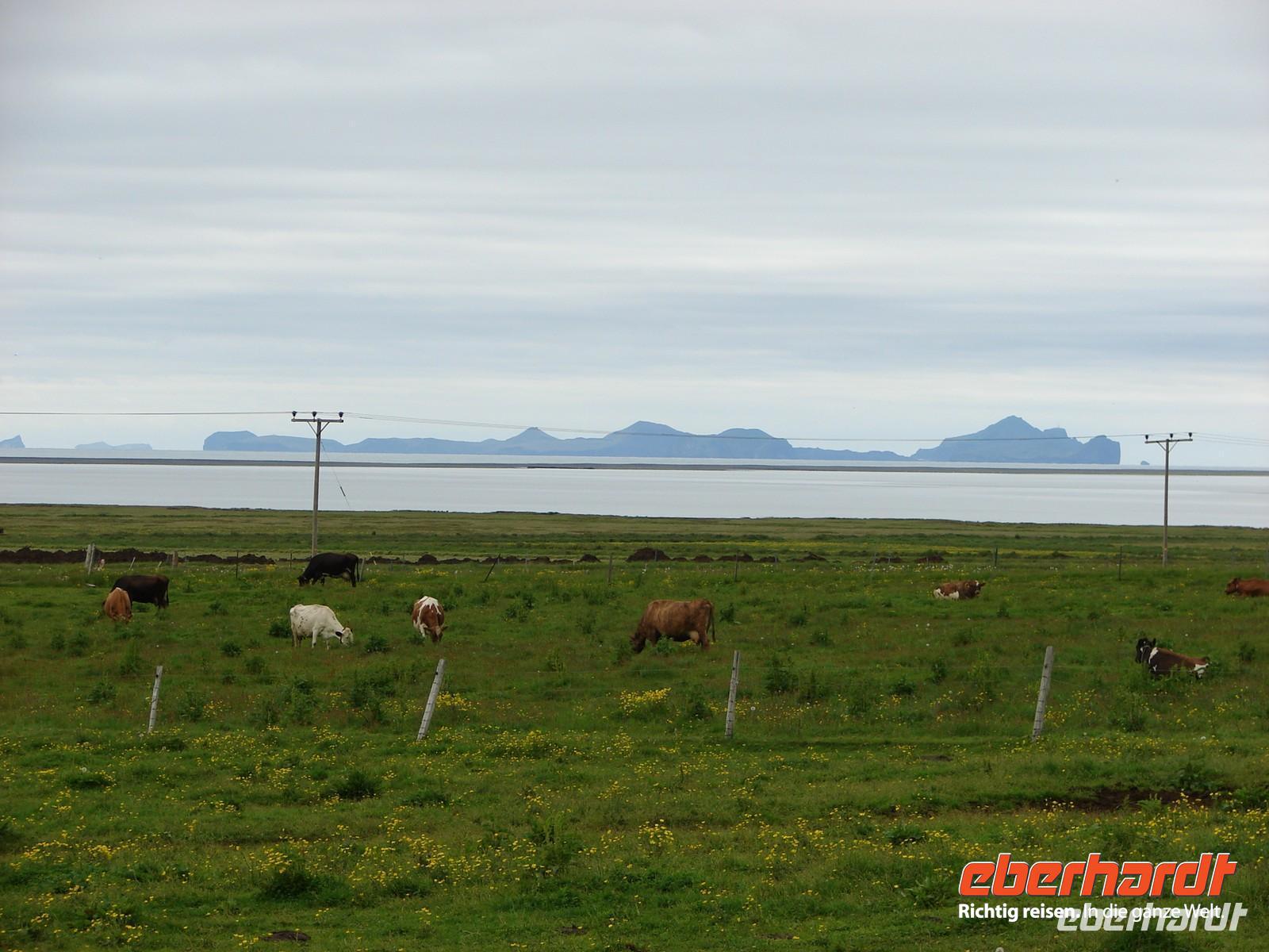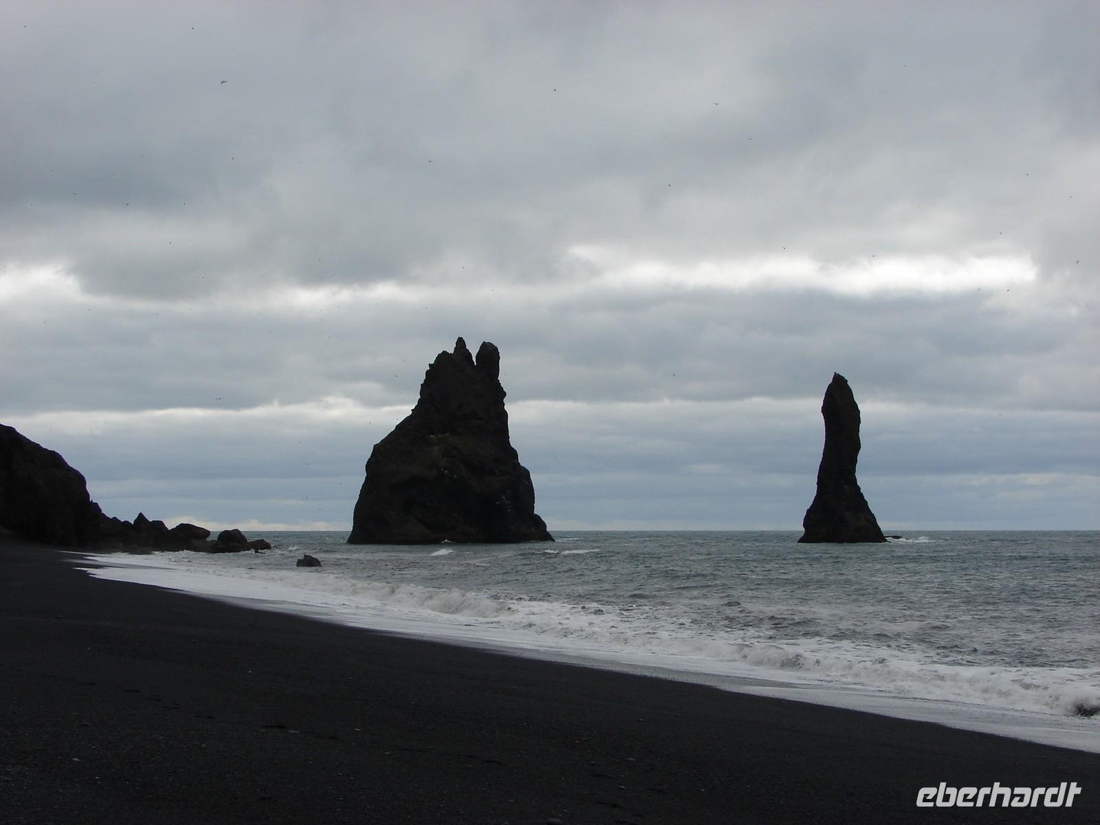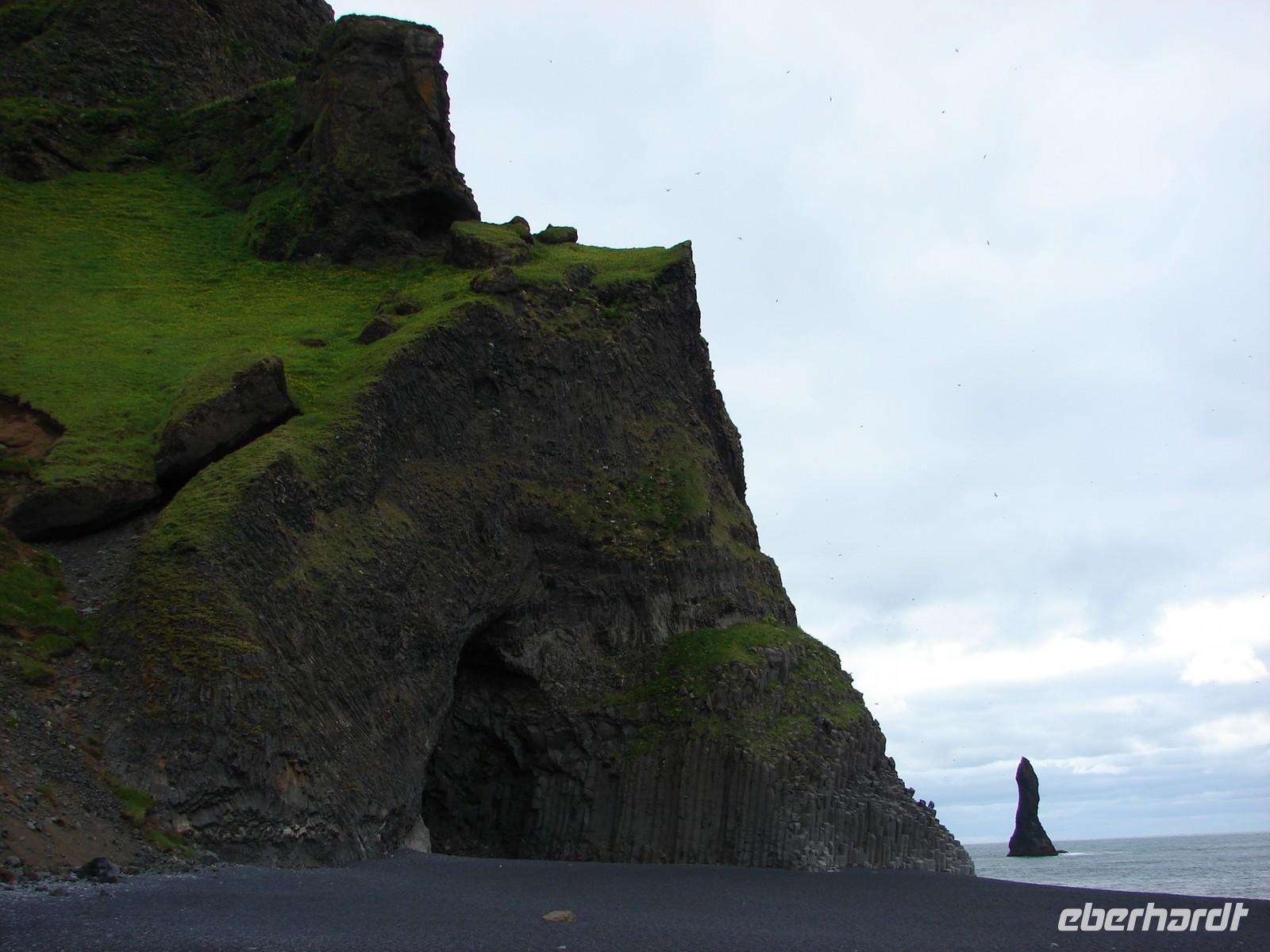 Morgens unternahmen wir einen kleinen Spaziergang am Strand des Kap Dyrhólaey. Wir hatten Glück, dass Ebbe war, denn sonst sollte man das stürmische Meer an dieser Stelle eher meiden. Nicht weit von der Küste entfernt sieht man die schwarzen Felsnadeln Reynisdrangar. Die Legende berichtet, dass Trolle ein Schiff ans Land bringen wollten und dabei versteinert worden seien. Die Spitze des Kap bildet ein Felsentor, durch das Boote fahren können. Sogar ein Flugzeug soll schon durchgeflogen sein. Auf den Felsen oberhalb des Meeres nisten unzählige Seevögel, unter anderem Papageientaucher und Eissturmvögel. Beim Stopp am Skogarfoss-Wasserfall hatten wir leider keine Zeit, auch nach dem sagenumwobenen Schatz zu suchen. Dafür besichtigten wir dann das Skogar Heimatmuseum ausführlicher. Nach einer kleinen Führung durch das Museum konnte jeder auf eigene Faust die typischen Häuser auf dem Gelände anschauen. Ein Höhepunkt war das kleine unerwartete Konzert in der Kirche. Ganz gespannt warteten alle darauf, dass wir den Vulkan Eyjafjallajökull passieren, denn jeder hat seine eigene kleine Geschichte zur Zeit, als der Flugverkehr in Europa fast lahmgelegt war. Rosa erzählte dazu verschiedene Schicksale der hier wohnenden Bevölkerung. In einem kleinen, urigen Café probierten wir selbstgebackenen Kuchen oder eine leckere Suppe. Sogar einen Blick auf die vorgelagerten Westmänner-Inseln konnten wir erhaschen. Kurz bevor wir Reykjavik erreichten, verabschiedeten wir unseren Fahrer Ole, der uns sicher einmal rund um die Insel chauffiert hatte. In Reykjavik wohnten wir wieder im gleichen Hotel. Im Restaurant "Reykjavik" gleich neben unserem Hotel wurde uns unser Abendbrot serviert.