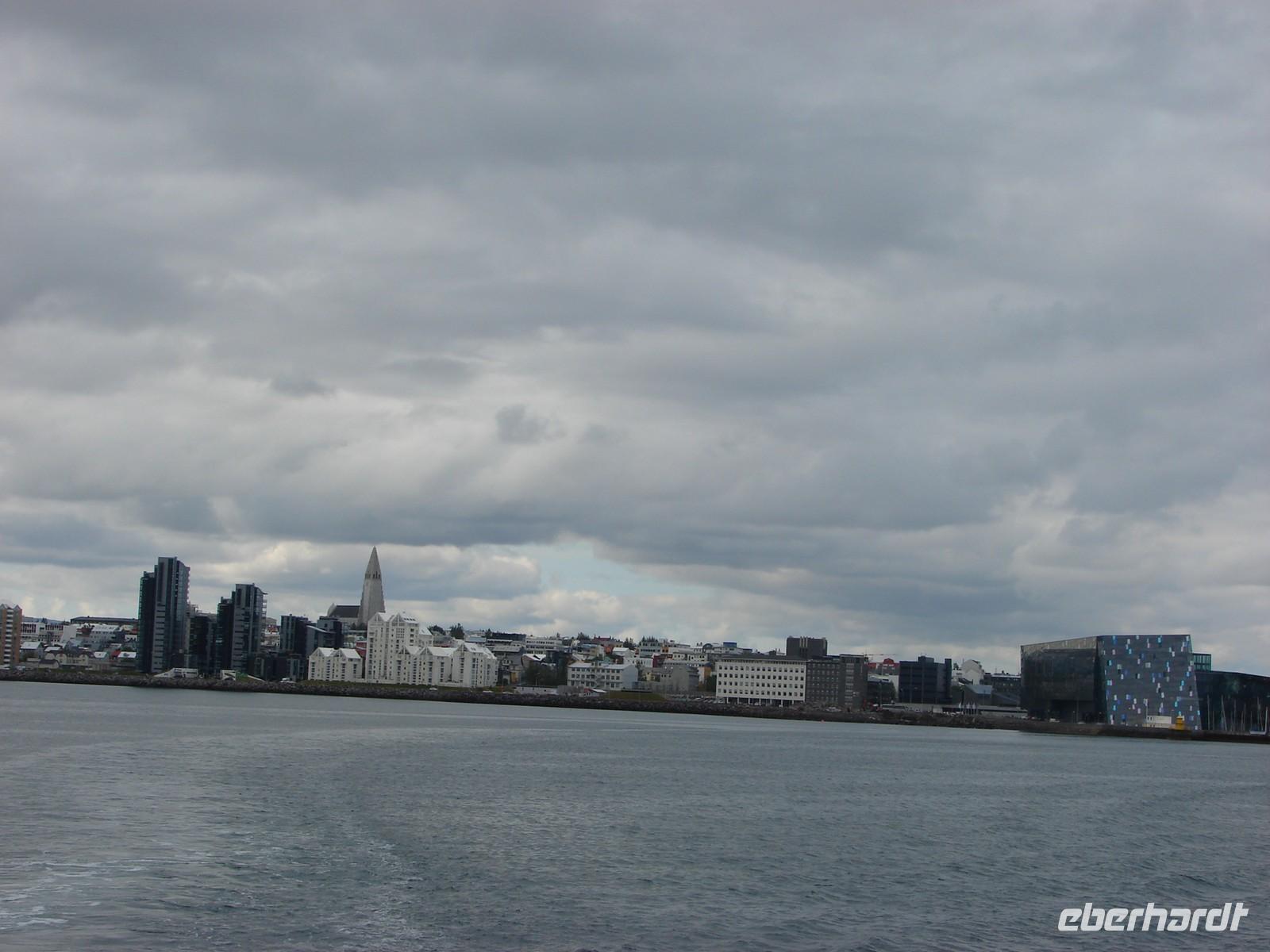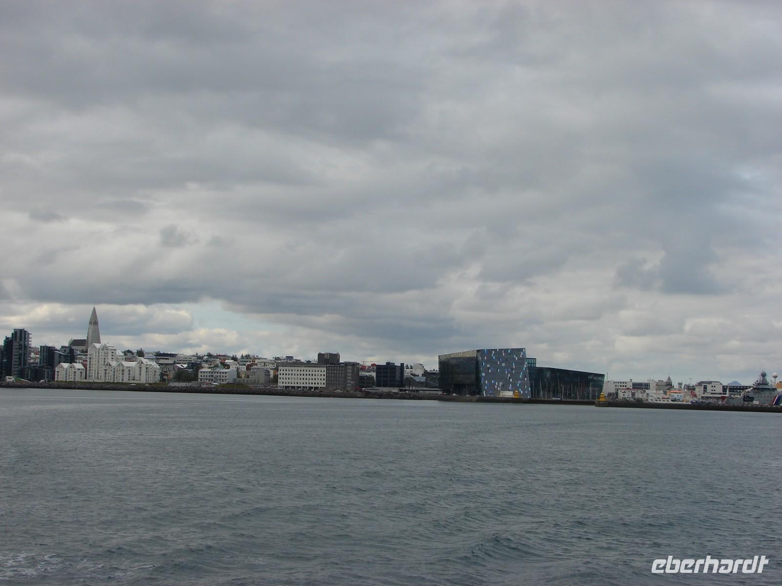 Heute hatten wir einen ganzen freien Tag in Reykjavik zur Verfügung. Einige Gäste kamen mit mir früh zur Walsafari. Obwohl sich bedrohlich Regenwolken am Himmel sammelten, setzten wir uns mutig aufs Oberdeck und sicherten uns die besten Plätze. Zunächst ging es zu den Papageientauchern. Die Reiseleiterin Patricia, die ursprünglich aus Hamburg stammte, erzählte uns noch so manches über die possierlichen Vögel. Leider kamen wir nicht nochmal so nah wie an der Nordküste. Und dann warteten wir natürlich auf die Könige des Ozeans, die Wale. Nach einem kurzen Schauer hatten sich die Wolken verzogen und nach anfänglich kleinen Walen hatten wir das große Glück 2 Wale zu sehen, die regelrecht vor unserem Boot spielten und sich immer wieder zeigten. Selbst die Bootscrew wollte am liebsten gar nicht wieder zurückfahren. Zum Mittag gingen wir ganz urig in den “Seabaron” am Hafen und probierten Hummersuppe oder einen der leckeren Fischspieße, die ganz frisch zubereitet wurden. Am Nachmittag bummelte dann jeder für sich etwas durch Reykjavik. Ein Besuch der Hallgrimskirche stand bei den moisten Gästen ebenso auf dem Programm wie ein Spaziergang entlang der Uferpromenade sowie des architektonisch interessanten Konzerthauses, der Harfe. Am Abend trafen wir uns alle zum gemeinsamen Essen im Restaurant, gleich gegenüber von unserem Hotel. Der Lachs wurde extra für uns frisch zubereitet.