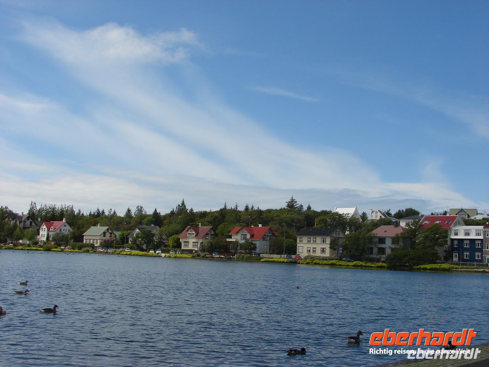 Gegen 19.30 Uhr trafen wir uns erwartungsvoll am Flughafen in Berlin-Tegel, von wo es zu unserer Reise „Island-Feuerwerk der Natur losgehen sollte. Vorher wurden wir alle von zu Hause abgeholt und mit Kleinbussen nach Berlin gefahren. Der unvorhergesehene Megastau auf der A4 wurde von der Transferabteilung bravourös umgangen und alle waren pünktlich am Flughafen. Nach dem schnellen Einchecken unseres Gepäcks gingen wir zunächst noch zu einem leckeren Abendessen in das Restaurant „Red Baron“ am Flughafen. Somit verging die Wartezeit wie im Flug und wir starteten pünktlich um 22:15 Uhr mit Air Berlin nach Reykjavik. Nach 3 ½ Stunden Flug landeten wir auf Island. Und obwohl es auch in Island schon weit nach Mitternacht war und wir unsere Uhren 2 Stunden zurückgestellt hatten, war es taghell. Schnell holten wir unsere Koffer vom Band, denn wir wollten eigentlich nur noch ins Hotel und schlafen. Das Hotel Plaza im Zentrum von Reykjavik wurde unser Domizil für die ersten beiden Nächte. Endlich gegen 2.00 Uhr lagen wir alle im Bett.