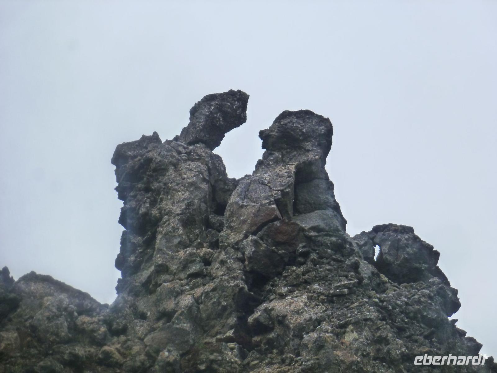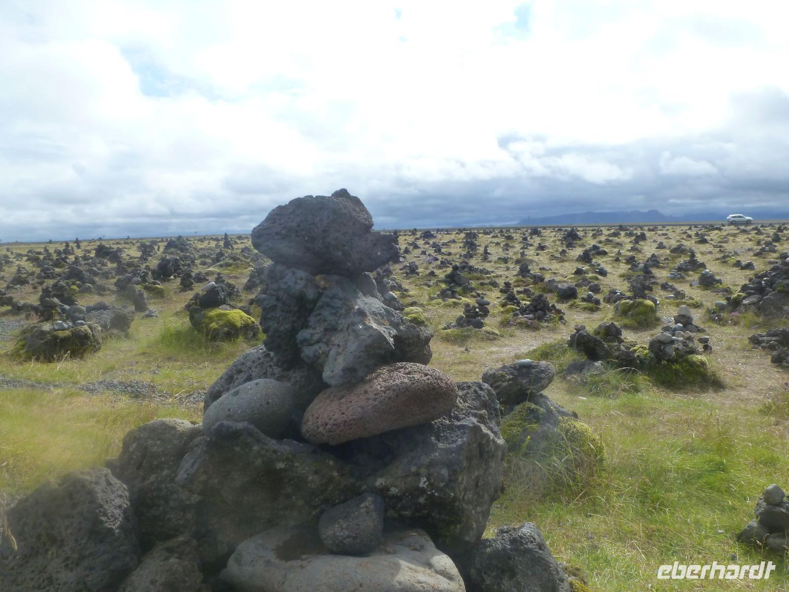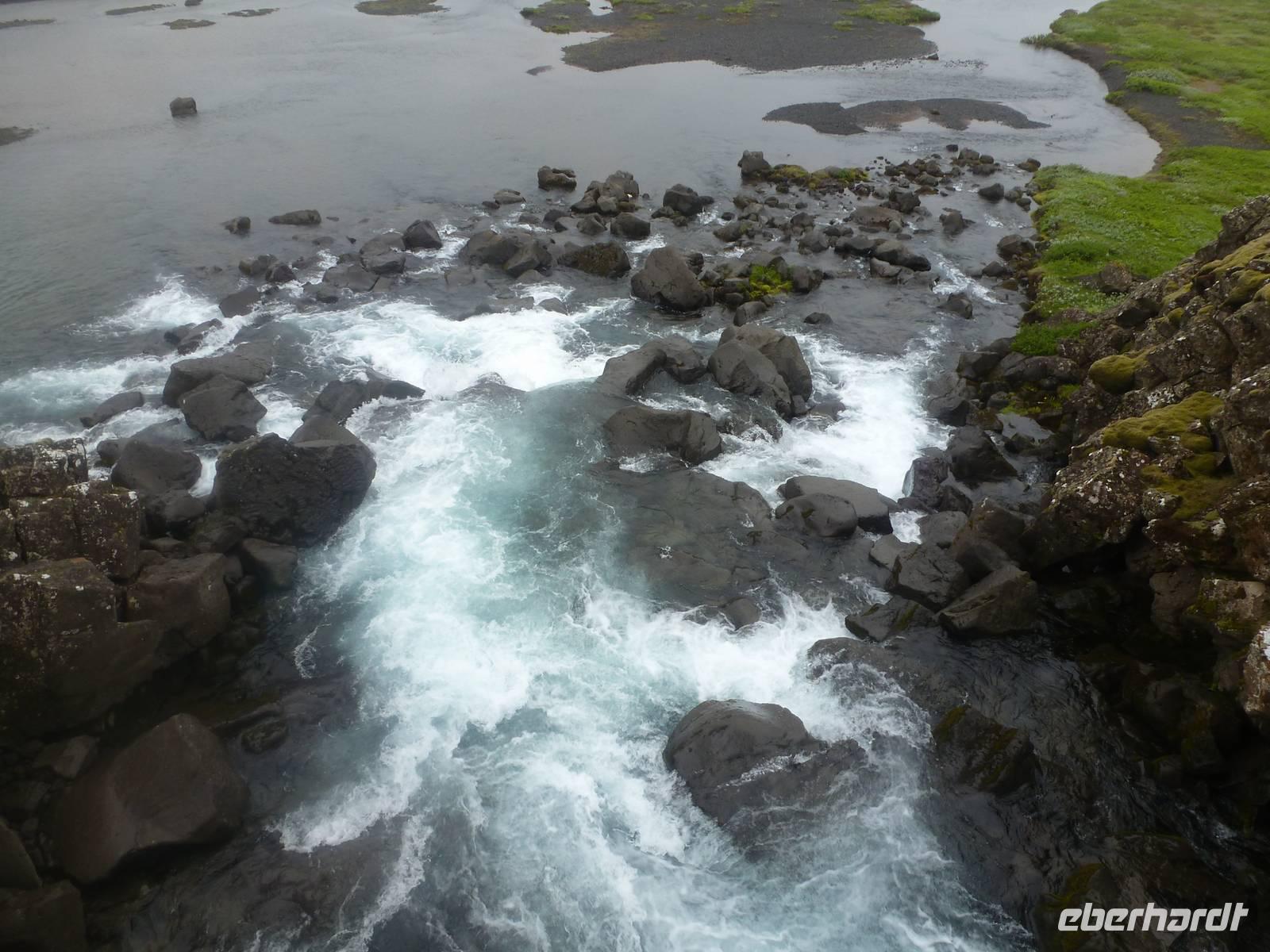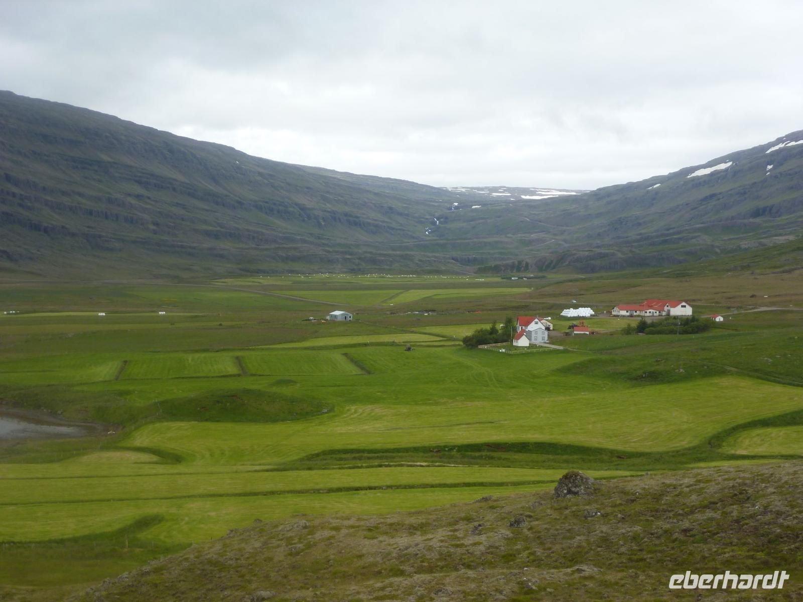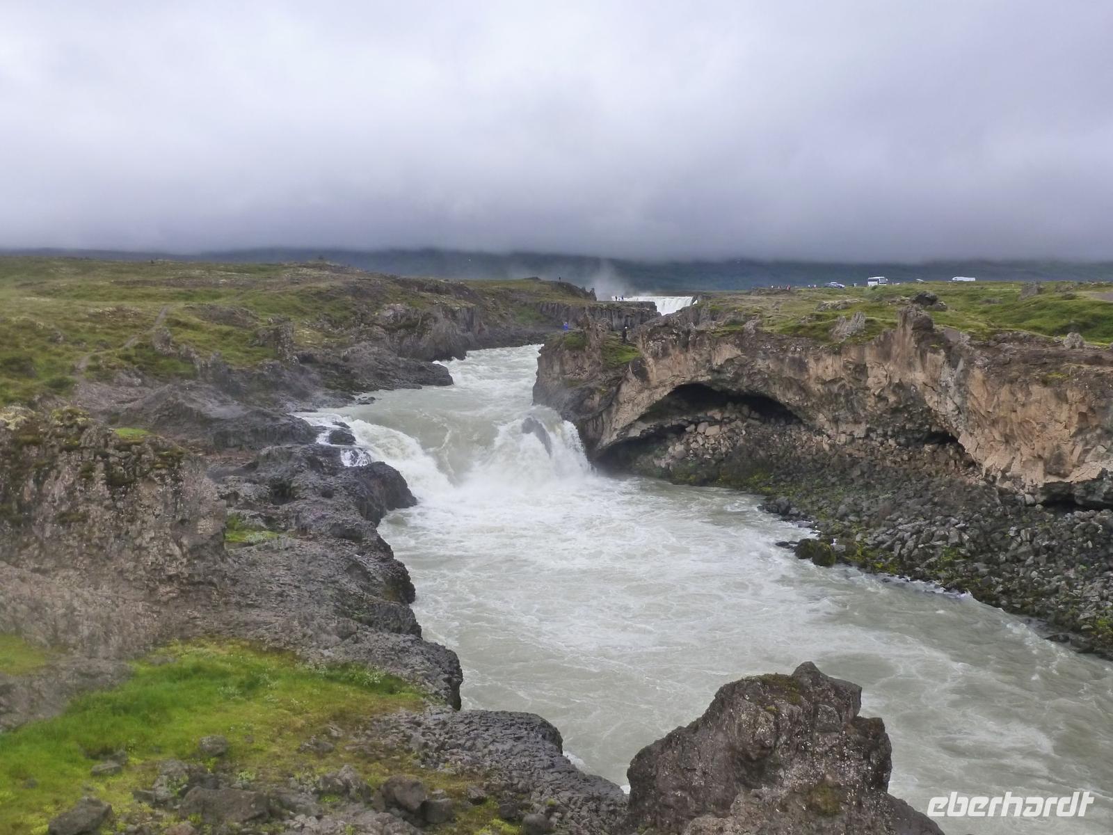 Im hohen Norden fanden wir ein ähnliches Phänomen wie den goldenen Kreis. Auf einer Ringstrecke rund um den Myvatn-See gab es mehrere ungewöhnliche Naturschauspiele zu sehen. Myvatn-See heißt übersetzte Mückensee, aber Mücken belästigten uns an diesem Tag glücklicherweise keine. Doch das Naturparadies Seenlandschaft überzeugte uns mit seiner malerischen Idylle. Im Lavalabyrinth Dimmubogir unternahmen wir eine kleine Wanderung, bei der uns die ungewöhnlichsten Formen begegneten. Mit etwas Phantasie konnte man Hexen, Trolle und verschiedene Tiere in den Lavaformationen erkennen. Zur Stärkung gab es im kleinen Cafe ein isländisches Forellenbrot zu genießen. Wer wollte, wagte anschließend den Aufstieg auf den angrenzenden Krater, um den herrlichen Ausblick auf das Seengebiet zu erlangen. Danach war etwas Entspannung notwendig, wofür wir einen Stopp in der Badelagune Jadbördin einlegten. Ähnlich wie in der berühmten Blauen Lagune gönnt man sich hier ein Bad im 38 Grad heißen, schwefelhaltigen Wasser, um Knochen und Kopf zu entspannen. Noch mit leichtem Schwefelgeruch in der Nase begaben wir uns in das Hochtemperaturgebiet Namaskard, wo uns blubbernde und nach faulen Eiern riechende Schlammtöpfe erwarteten. Am Abend unternahm ein Teil der Gruppe noch einen Reitausflug auf den Islandpferden. Eine Stunde lang ging es hoch zu Ross durch die herrliche Natur des Eyjafjödur.