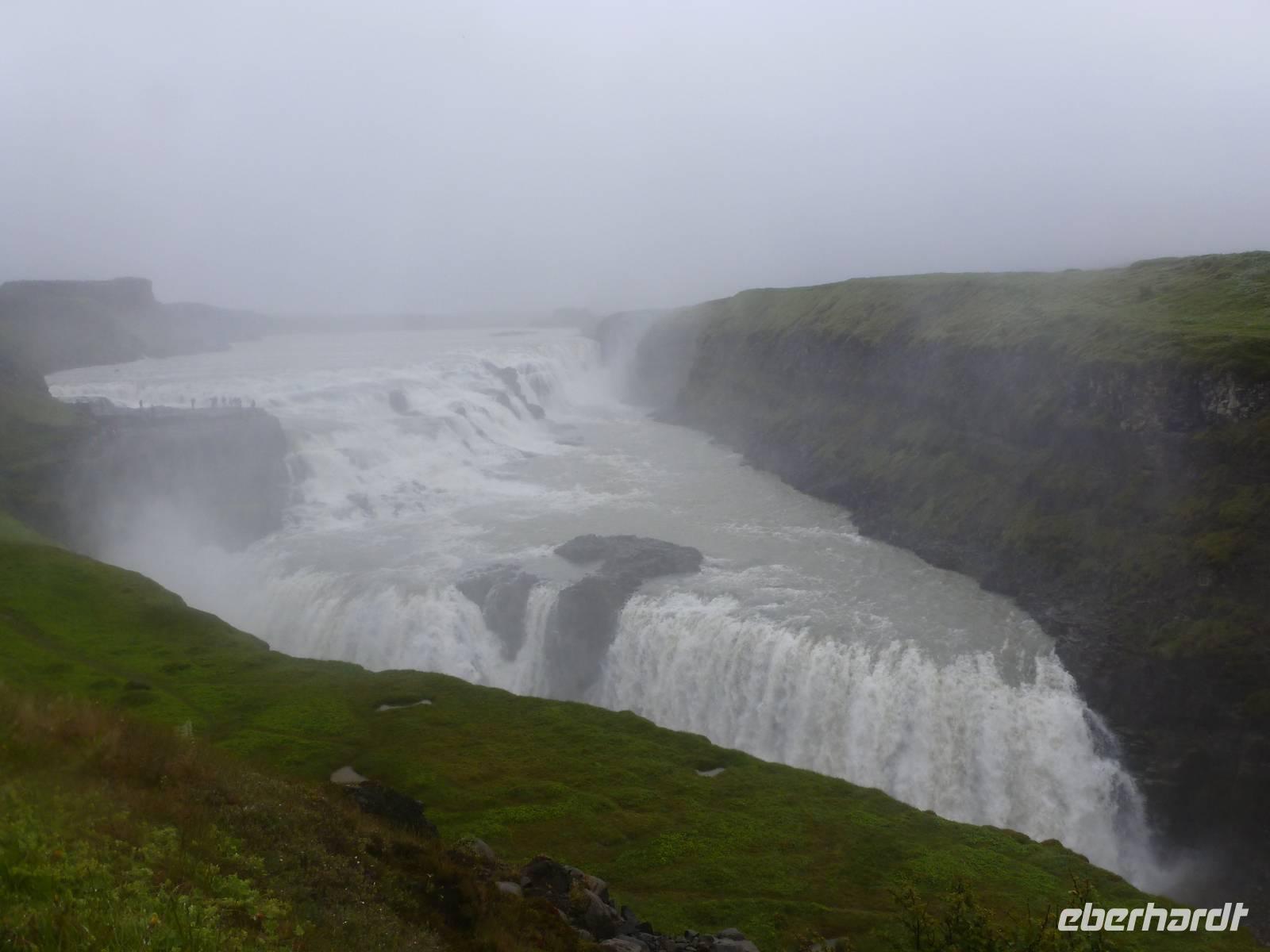 Bereits bei der Anreise habe ich unserer Reisegruppe versprochen, dass sie schon heute zahlreiche Naturwunder bestaunen dürfen und damit sollte ich Recht behalten, denn wir begaben uns auf die Strecke des Goldenen Kreises. Anfangspunkt war das geschichtsträchtige Thingvellir, wo einst das älteste Parlament der Welt tagte. Doch nicht nur das macht den Zauber dieses Ortes aus. Unübersehbar sind die riesigen Felsspalten, welche durch das Auseinandertriften der Kontinentalplatten entstanden. Etwa eine Stunde später erwartete uns bereits der nächste Höhepunkt. Wir besuchten ein aktives Geysirgebiet. Der Geysir Stokkur speit zuverlässig ca. alle 3-5 Minuten eine Wassersäule in die Höhe - ein spektakuläres Schauspiel, dass jeder erleben durfte. Zum Abschluss genossen wir noch den Ausblick auf den mächtigen Wasserfall Gullfoss. Leider zeigte sich hier nicht wie in vielen Reiseprospekten abgebildet ein Regenbogen, aber diesen sollten wir noch später auf der Reise sehen dürfen. Wie bei einem Kreis so üblich, landeten wir am Ende des Tages wieder in unserem Ausgangsort Reykjavik, wo wir noch das Wahrzeichen der Stadt, die Hallgrimskirche, besuchten.