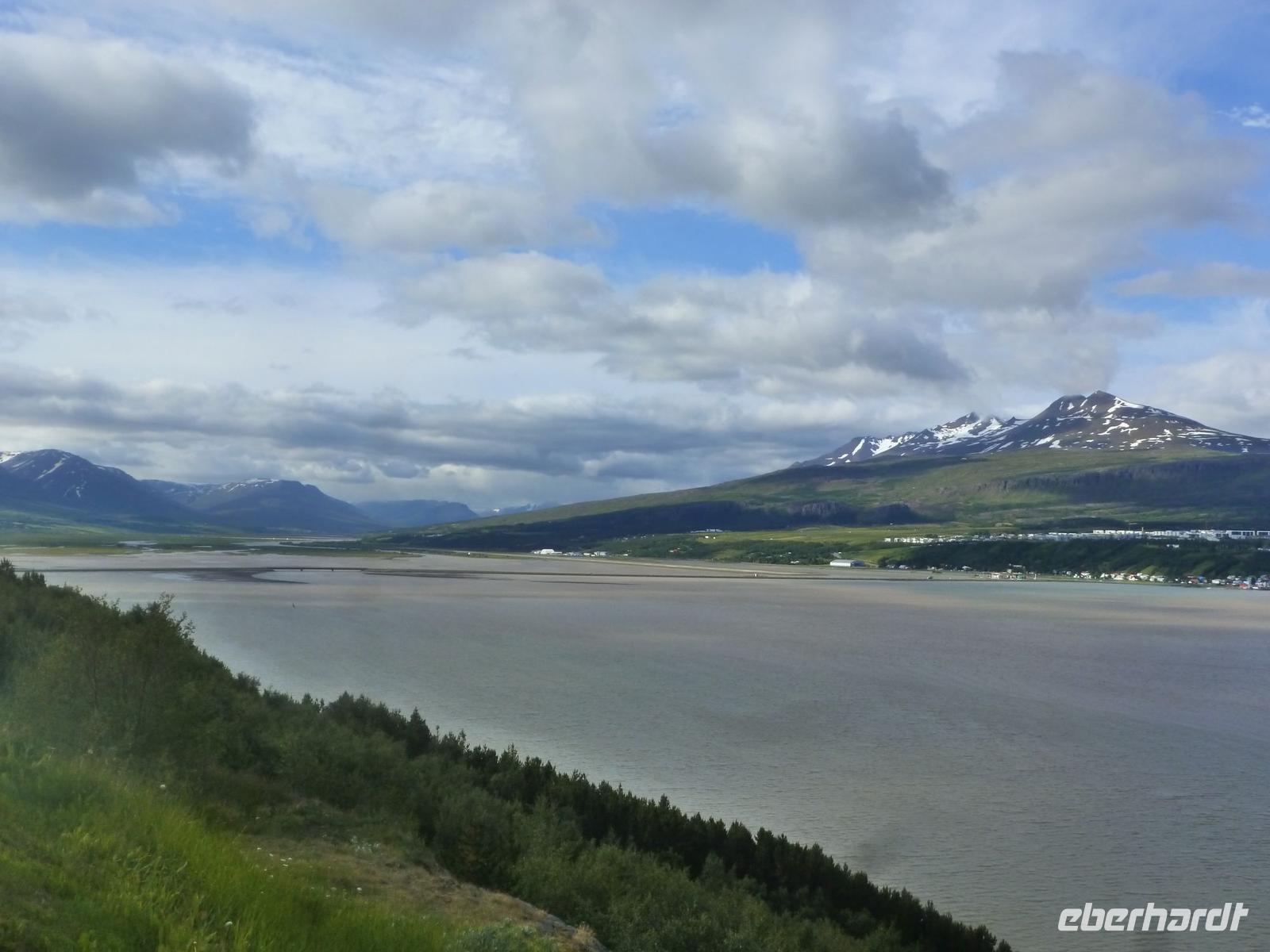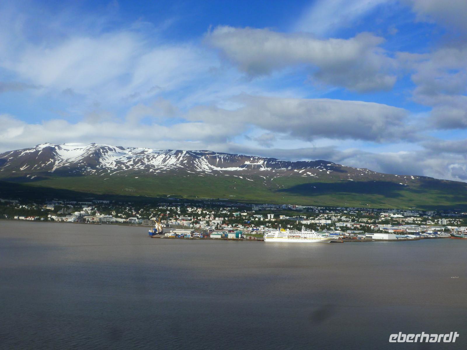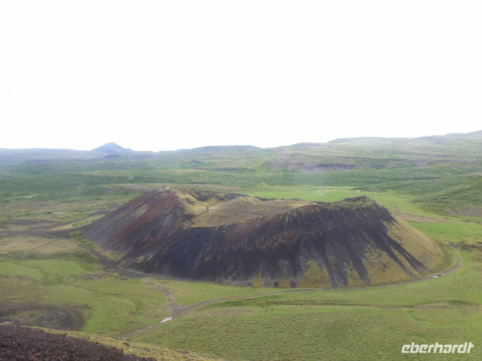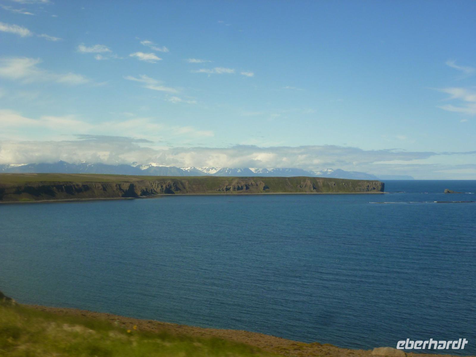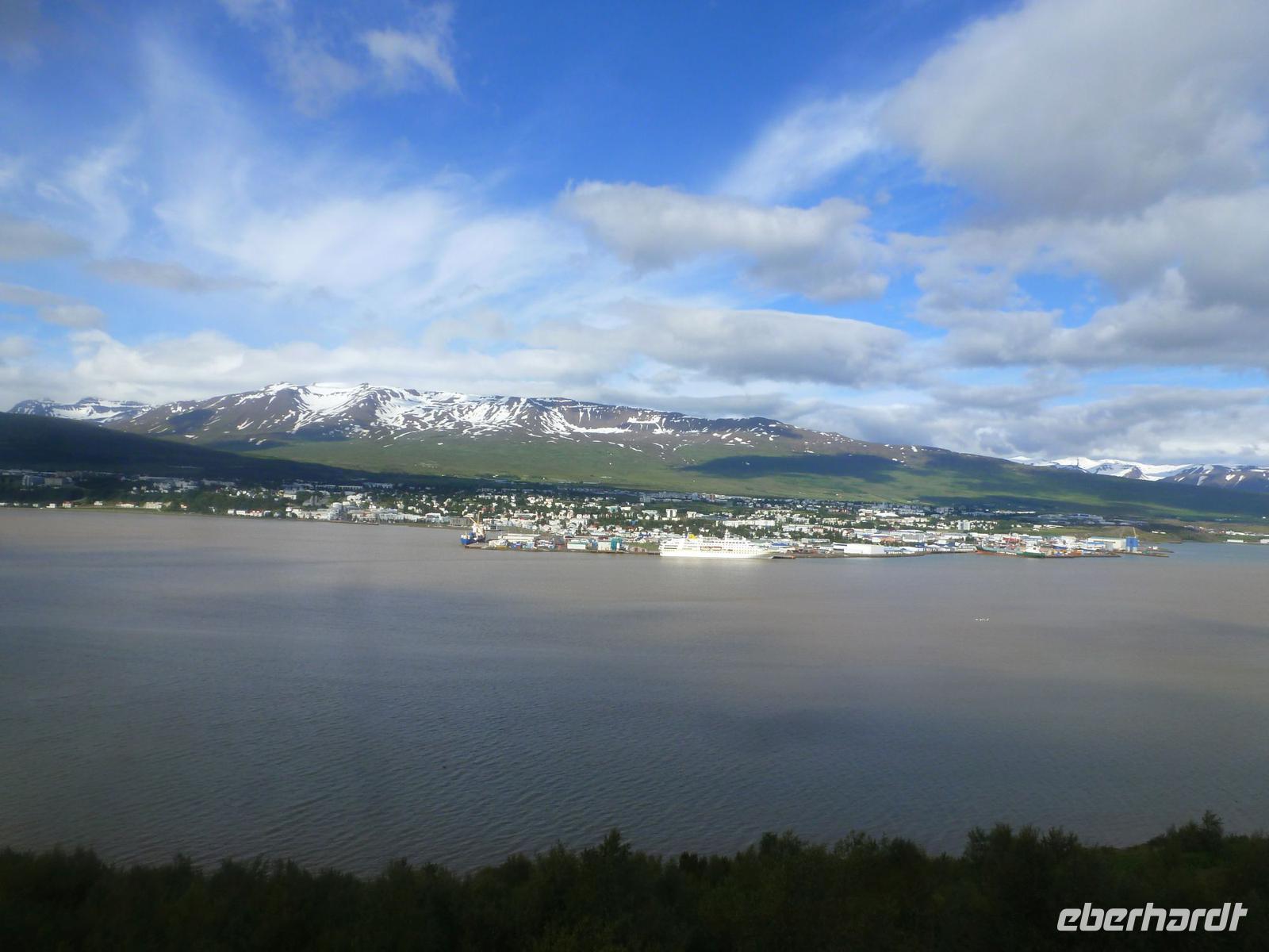 Die Reise führte uns heute weiter von Reykjavik in den Norden nach Akureyri. Doch vorher besichtigten wir noch das neue Konzerthaus der Hauptstadt, Harpa (Harfe) genannt. Wir blieben etwas länger als geplant, denn unser Bus musste noch einmal getauscht werden. Doch dann ging es los durch die herrliche Natur. Unser Reiseleiter Ulrik, ein eingefleischter Isländer, unterhielt uns schon heute mit sagenhaften Geschichten und Märchen. Mitten in einem jahrhunderte alten Lavafeld hielten wir und machten eine kleine Wanderung auf einen erloschenen Krater. Von hoch oben hatten wir einen herrlichen Ausblick auf die Lava und die umliegenden Berge. Am Nachmittag begrüßten uns die Besitzer des Pferdehofes Flugumyri auf Ihrem Anwesen, um über Ihr Leben und das bemerkenswerte Islandpferd zu erzählen. Wir durften die Stallungen anschauen, ein Kaffeetrinken genießen und bei einer Reitvorführung zuschauen. Dabei wurden uns alle 5 Gangarten - Schritt, Trab, Galopp und die für Islandpferde typischen Gangarten Pass und Tölt vorgeführt. Am Abend erreichten wir das lebhafte Städtchen Akureyri, welches malerisch im Eyjafjödur gelegen ist.