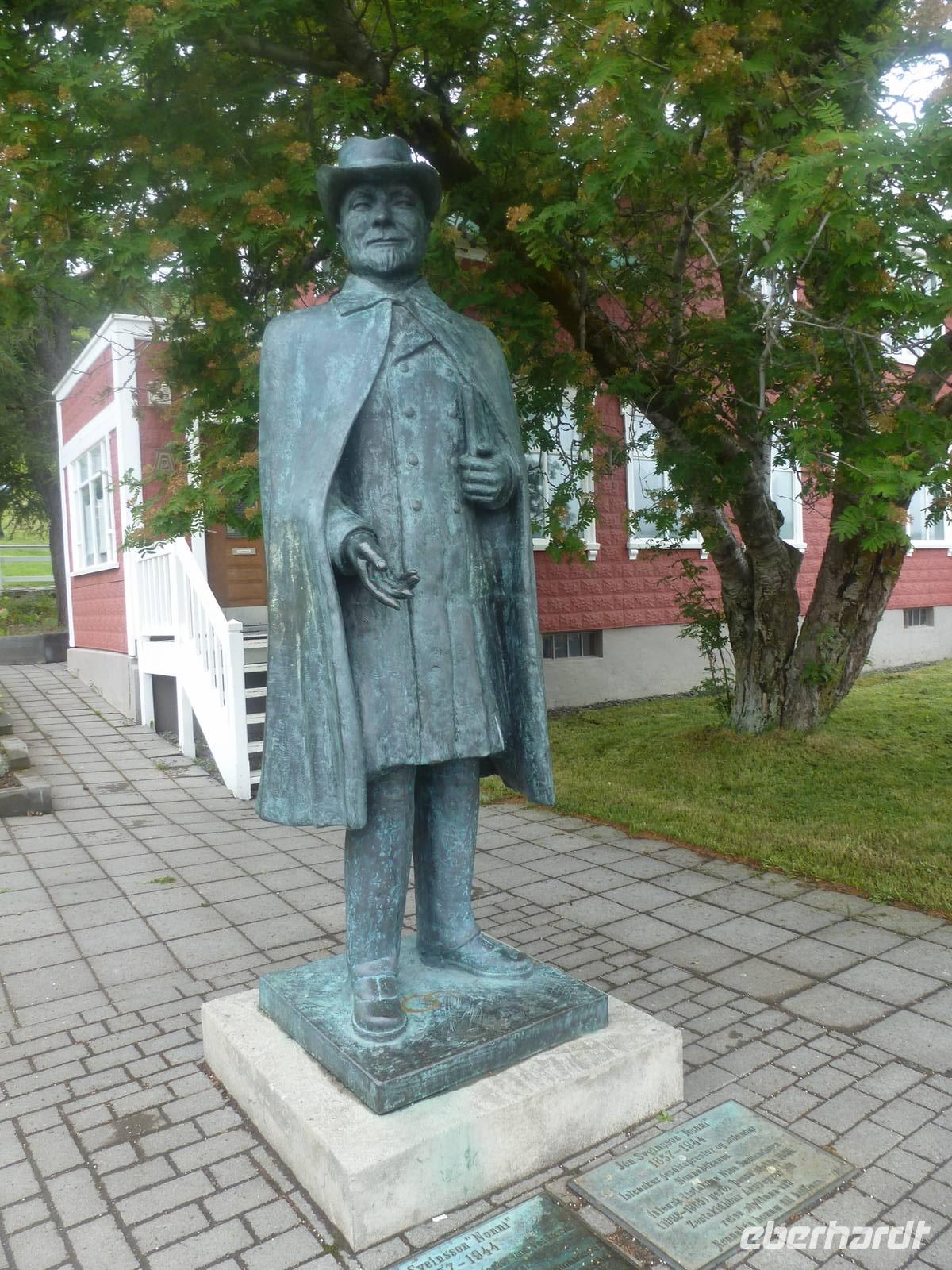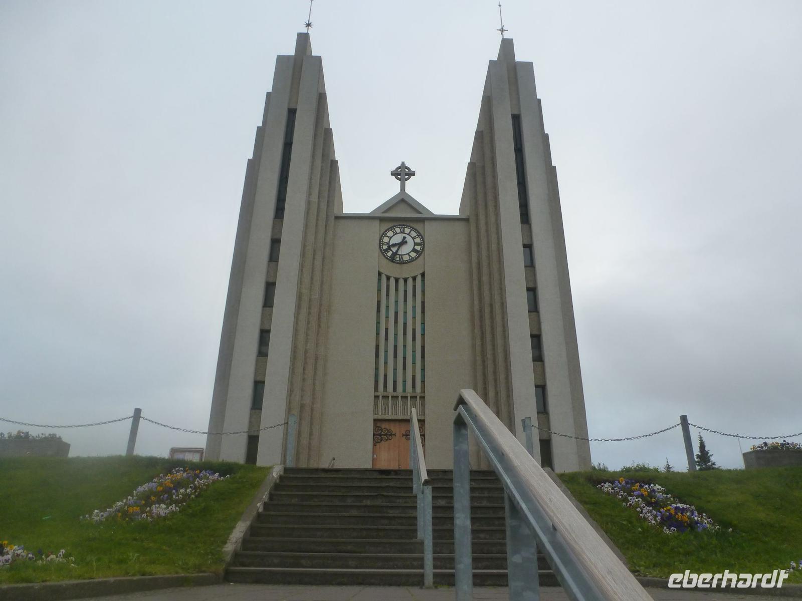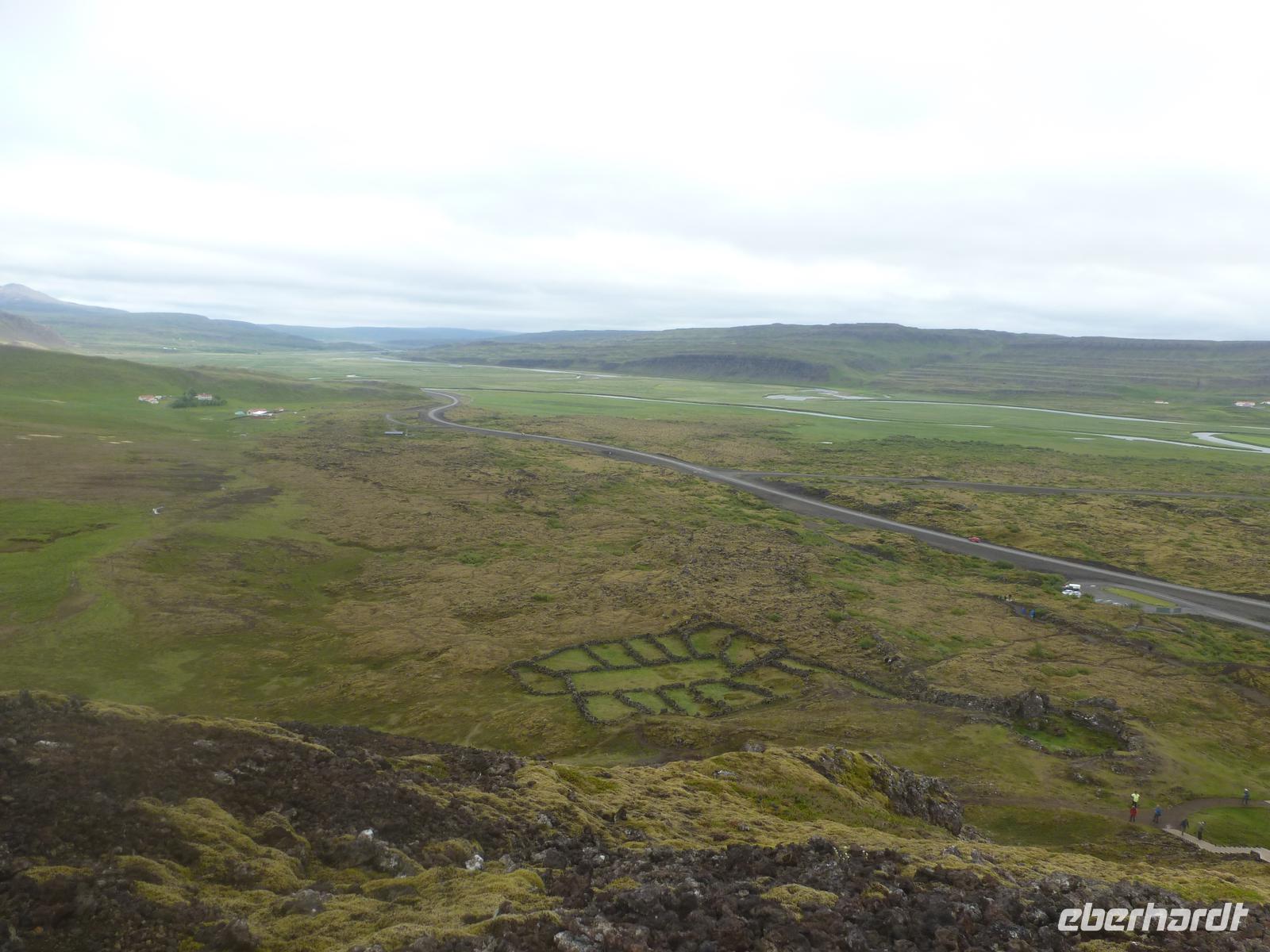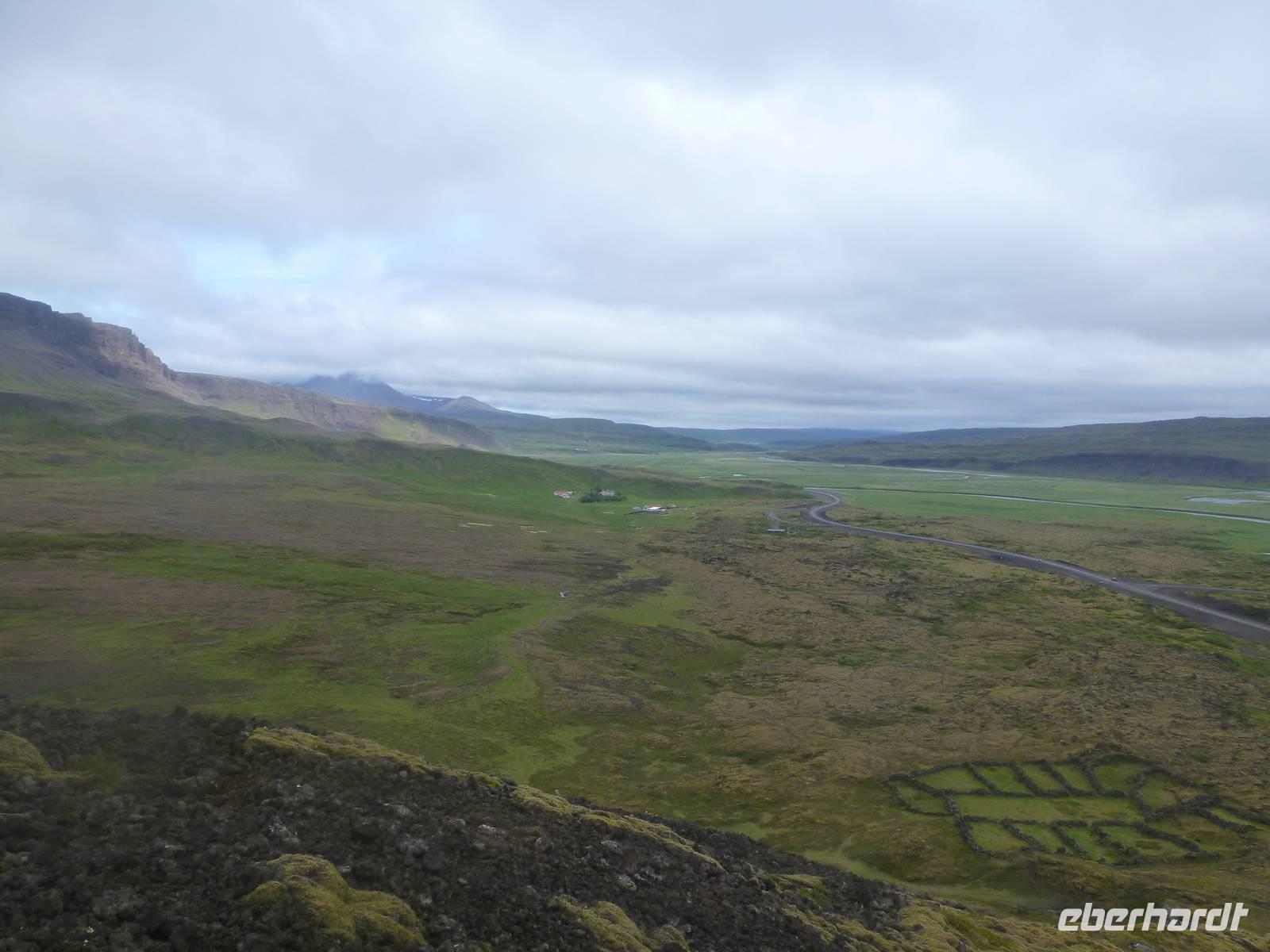 Die Reise führte uns heute weiter von Reykjavik in den Norden nach Akureyri. Doch vorher besichtigten wir noch das neue Konzerthaus der Hauptstadt, Harpa (Harfe) genannt. Wir blieben etwas länger als geplant, denn unser Bus musste noch einmal getauscht werden. Doch dann ging es los durch die herrliche Natur. Unser Reiseleiter Ulrik, ein eingefleischter Isländer, unterhielt uns schon heute mit sagenhaften Geschichten und Märchen. Mitten in einem jahrhunderte alten Lavafeld hielten wir und machten eine kleine Wanderung auf einen erloschenen Krater. Von hoch oben hatten wir einen herrlichen Ausblick auf die Lava und die umliegenden Berge. Am Nachmittag begrüßten uns die Besitzer des Pferdehofes Flugumyri auf Ihrem Anwesen, um über Ihr Leben und das bemerkenswerte Islandpferd zu erzählen. Wir durften die Stallungen anschauen, ein Kaffeetrinken genießen und bei einer Reitvorführung zuschauen. Dabei wurden uns alle 5 Gangarten - Schritt, Trab, Galopp und die für Islandpferde typischen Gangarten Pass und Tölt vorgeführt. Am Abend erreichten wir das lebhafte Städtchen Akureyri, welches malerisch im Eyjafjödur gelegen ist.