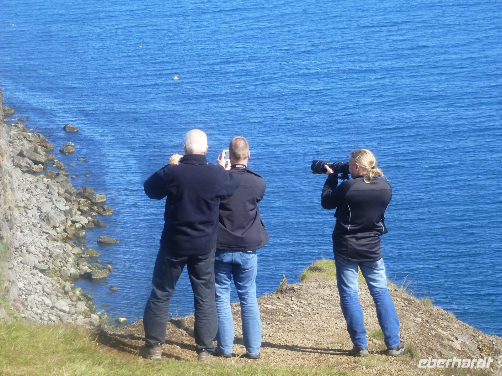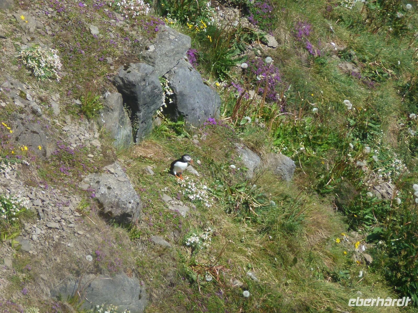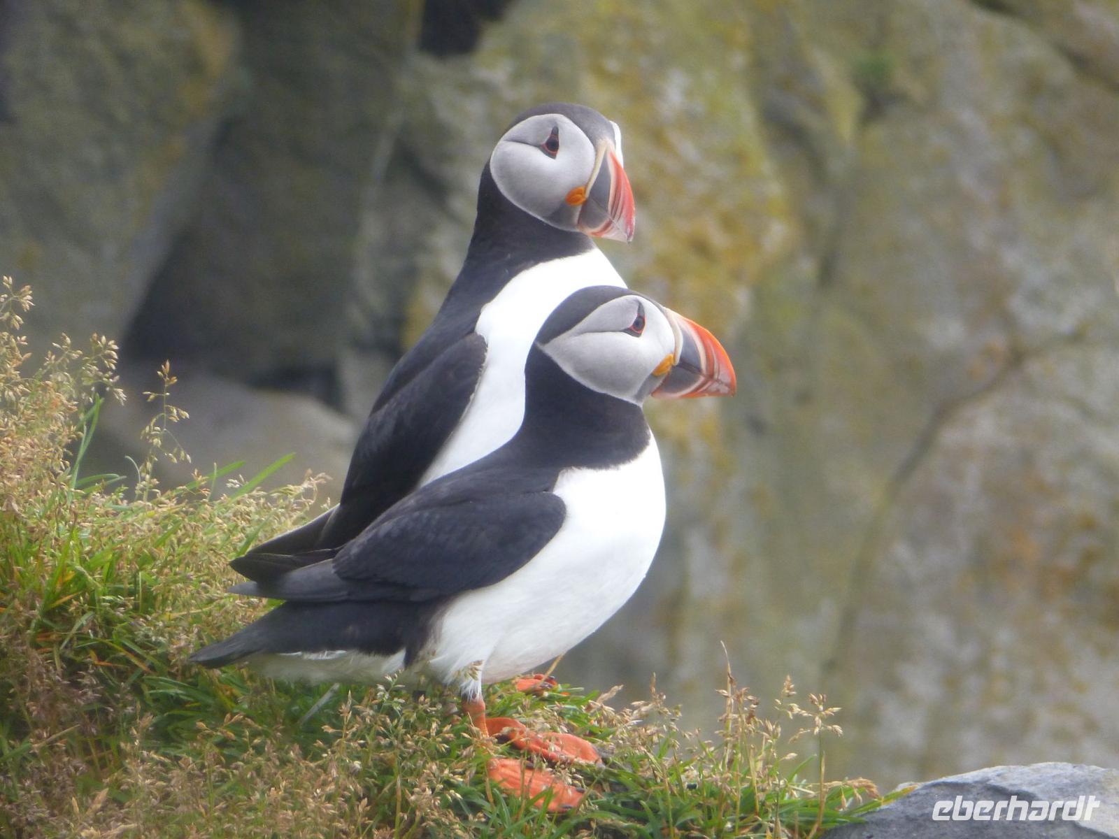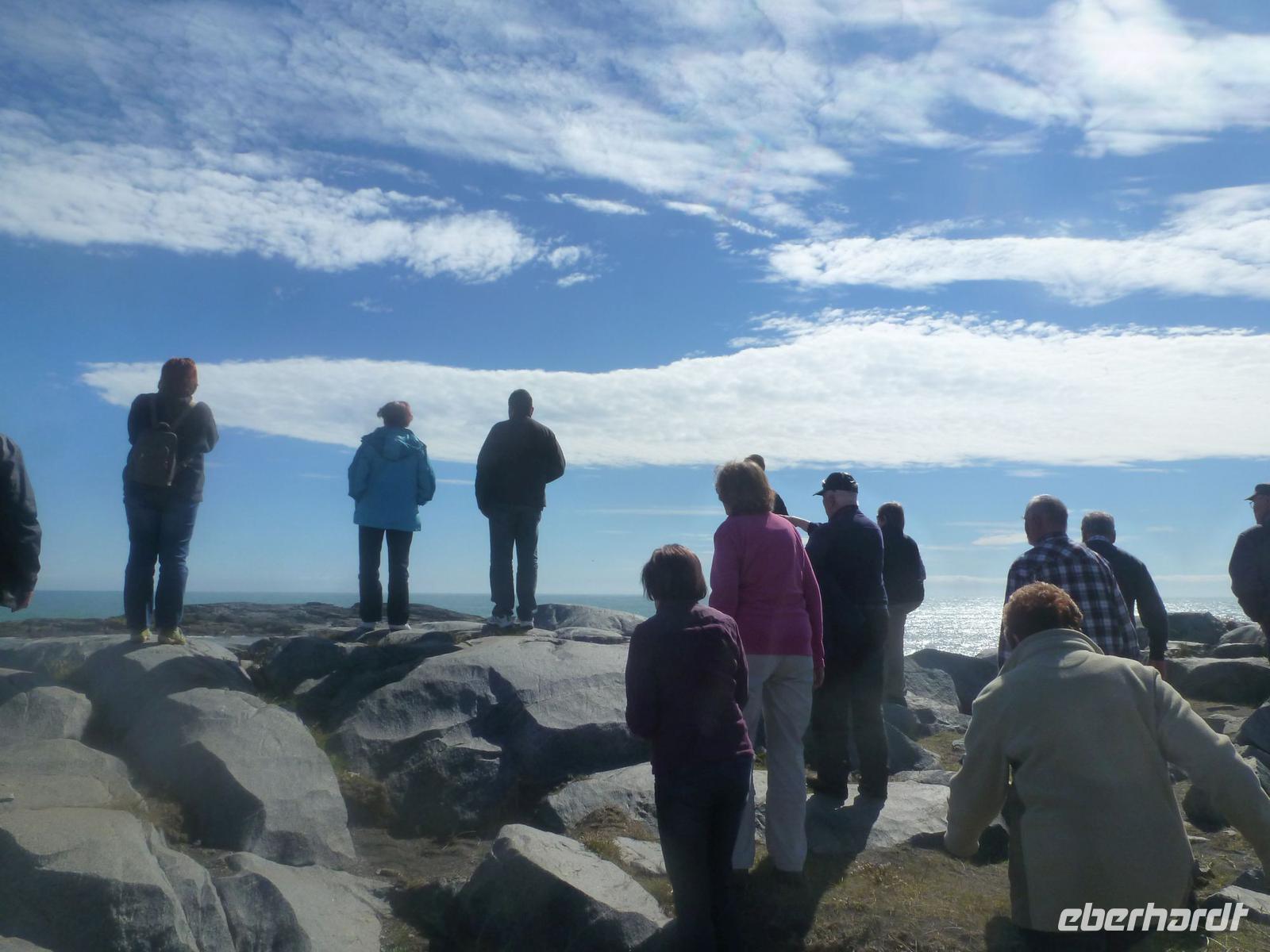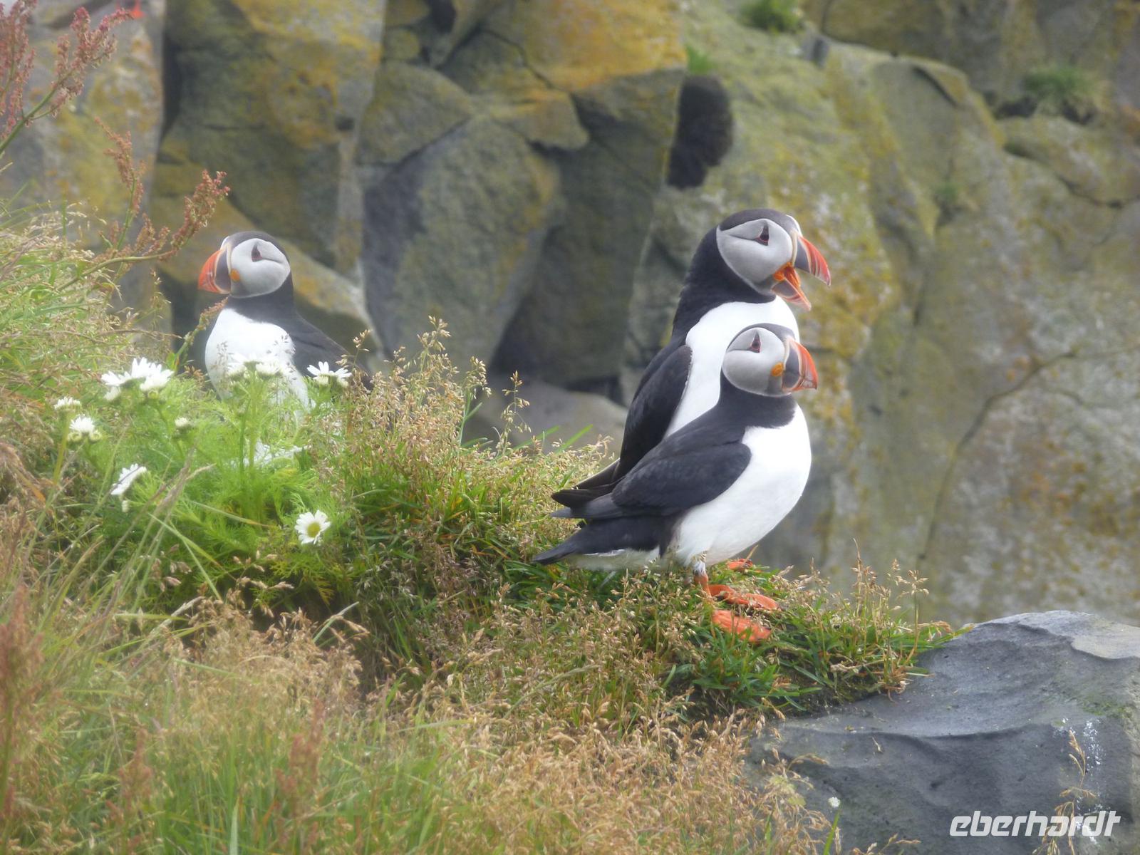 Gleich früh am Morgen fuhren wir zu nahegelegenen Landspitze Dyrhólaey, welche zu den bekanntesten Fotomotiven Islands zählt. Wir hatten Glück und konnten zahlreiche der niedlichen Papageientaucher aus nächster Nähe bewundern. In der Ferne tauchte eine merkwürdige Felsformation im Meer auf, die auch das Trollschiff genannt wird. Im Heimatmuseum Skogarfoss erhielten wir bei einer Führung einen Einblick in das harte Leben der Isländer im Laufe der Geschichte und staunten wieder über den Einfallsreichtum der Bevölkerung unter diesen unwirtlichen Bedingungen. Am bekannten Skogarfoss machten wir schließlich noch ein gemeinsames Gruppenfoto zur Erinnerung an die schöne Reise. Als kleine Überraschung hatte Eberhardt TRAVEL heute noch einen Besuch im Eyjafjallajökull-Zentrum organisiert, in dem ein spannender Film über den gewaltigen Ausbruch gezeigt wurde. Nach zwei weiteren Stopps an den Wasserfällen Seljalandsfoss und Sellfoss erreichten wir am Nachmittag wieder Reykjavik, wo wir noch auf die Perle stiegen, um die Stadt von Oben zu bestaunen. Anschließend war der Abschied von Reiseleiter Ulrik und Fahrer Sigi gekommen, die uns während der Rundreise betreut hatten.