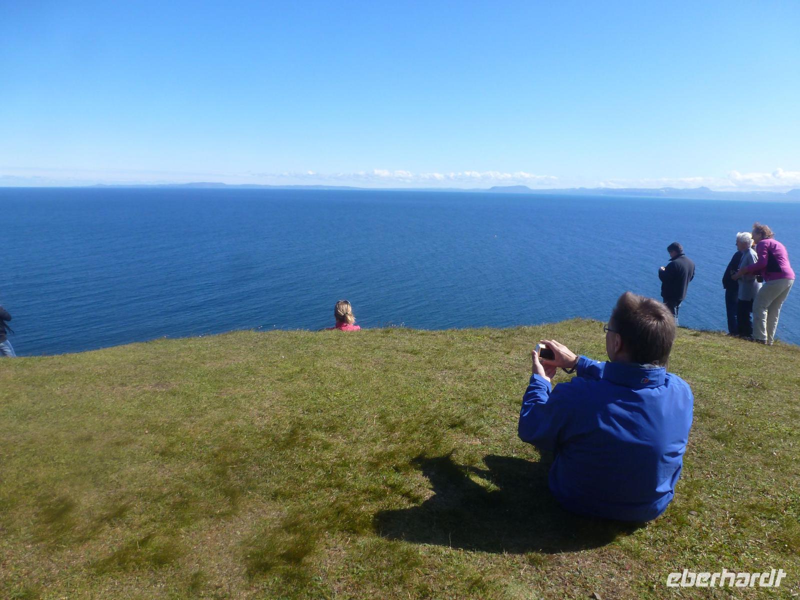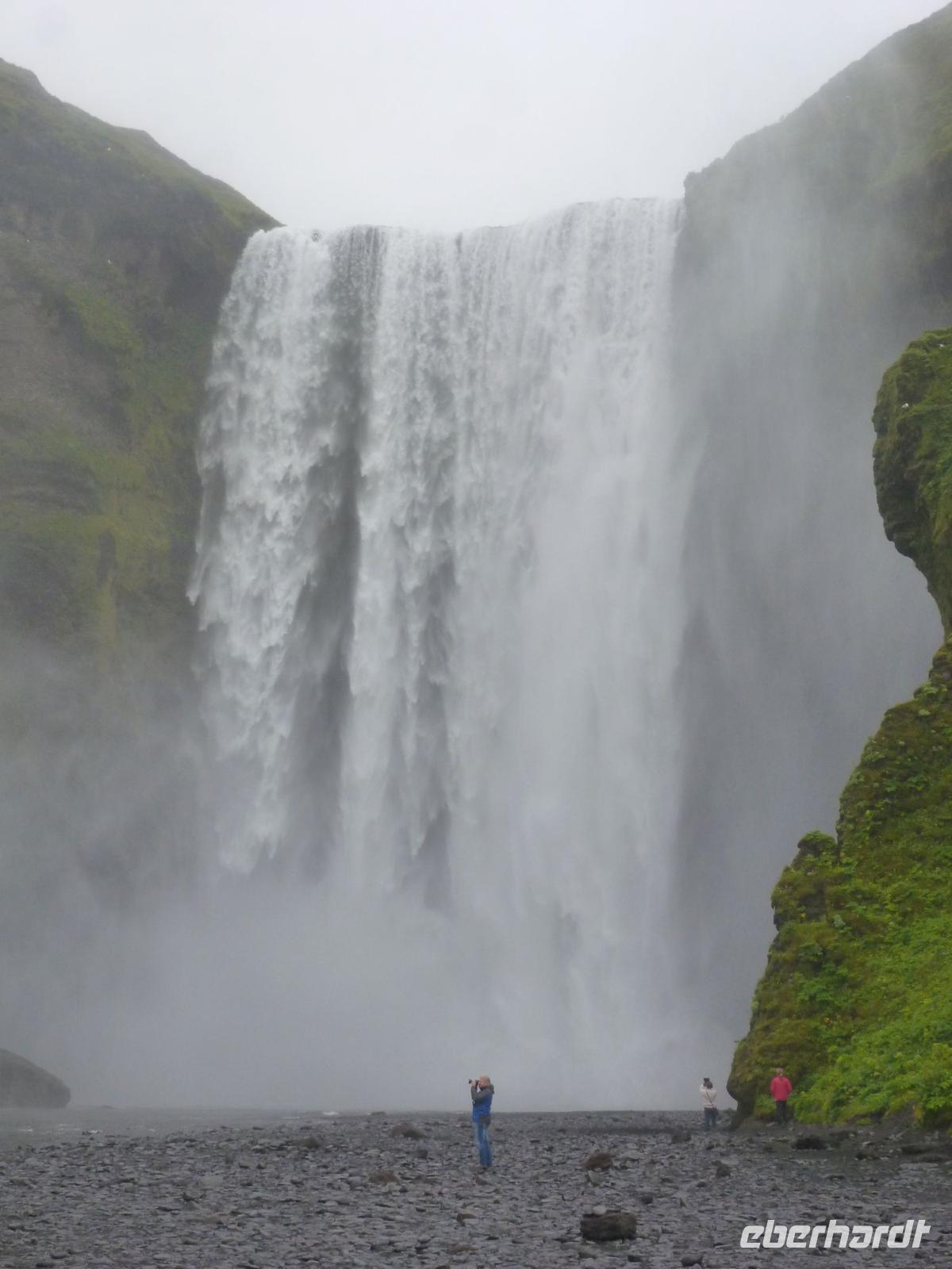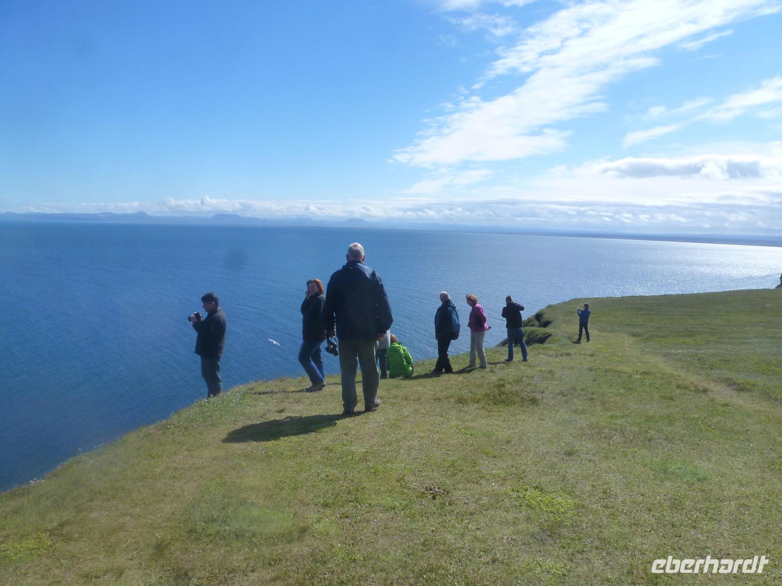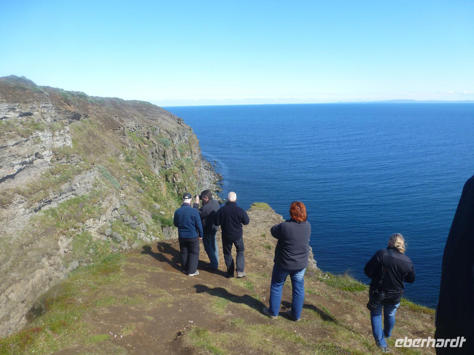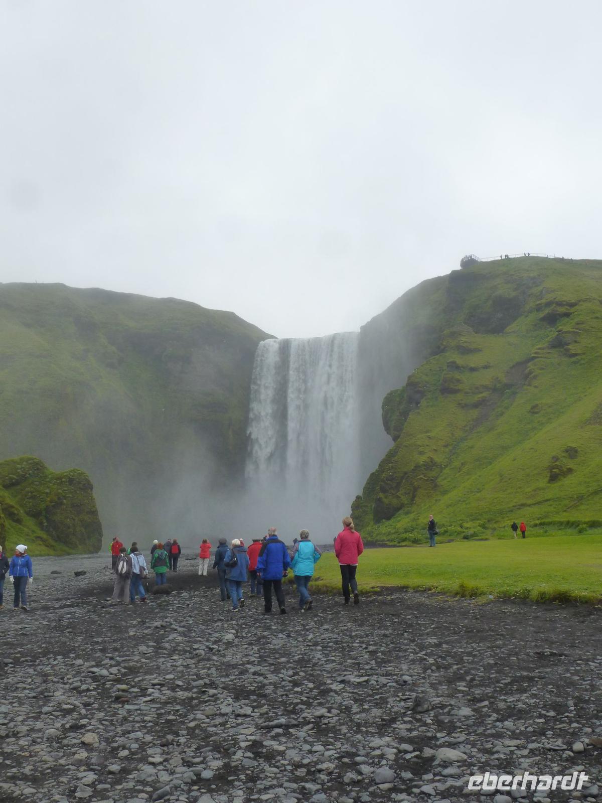 Gleich früh am Morgen fuhren wir zu nahegelegenen Landspitze Dyrhólaey, welche zu den bekanntesten Fotomotiven Islands zählt. Wir hatten Glück und konnten zahlreiche der niedlichen Papageientaucher aus nächster Nähe bewundern. In der Ferne tauchte eine merkwürdige Felsformation im Meer auf, die auch das Trollschiff genannt wird. Im Heimatmuseum Skogarfoss erhielten wir bei einer Führung einen Einblick in das harte Leben der Isländer im Laufe der Geschichte und staunten wieder über den Einfallsreichtum der Bevölkerung unter diesen unwirtlichen Bedingungen. Am bekannten Skogarfoss machten wir schließlich noch ein gemeinsames Gruppenfoto zur Erinnerung an die schöne Reise. Als kleine Überraschung hatte Eberhardt TRAVEL heute noch einen Besuch im Eyjafjallajökull-Zentrum organisiert, in dem ein spannender Film über den gewaltigen Ausbruch gezeigt wurde. Nach zwei weiteren Stopps an den Wasserfällen Seljalandsfoss und Sellfoss erreichten wir am Nachmittag wieder Reykjavik, wo wir noch auf die Perle stiegen, um die Stadt von Oben zu bestaunen. Anschließend war der Abschied von Reiseleiter Ulrik und Fahrer Sigi gekommen, die uns während der Rundreise betreut hatten.