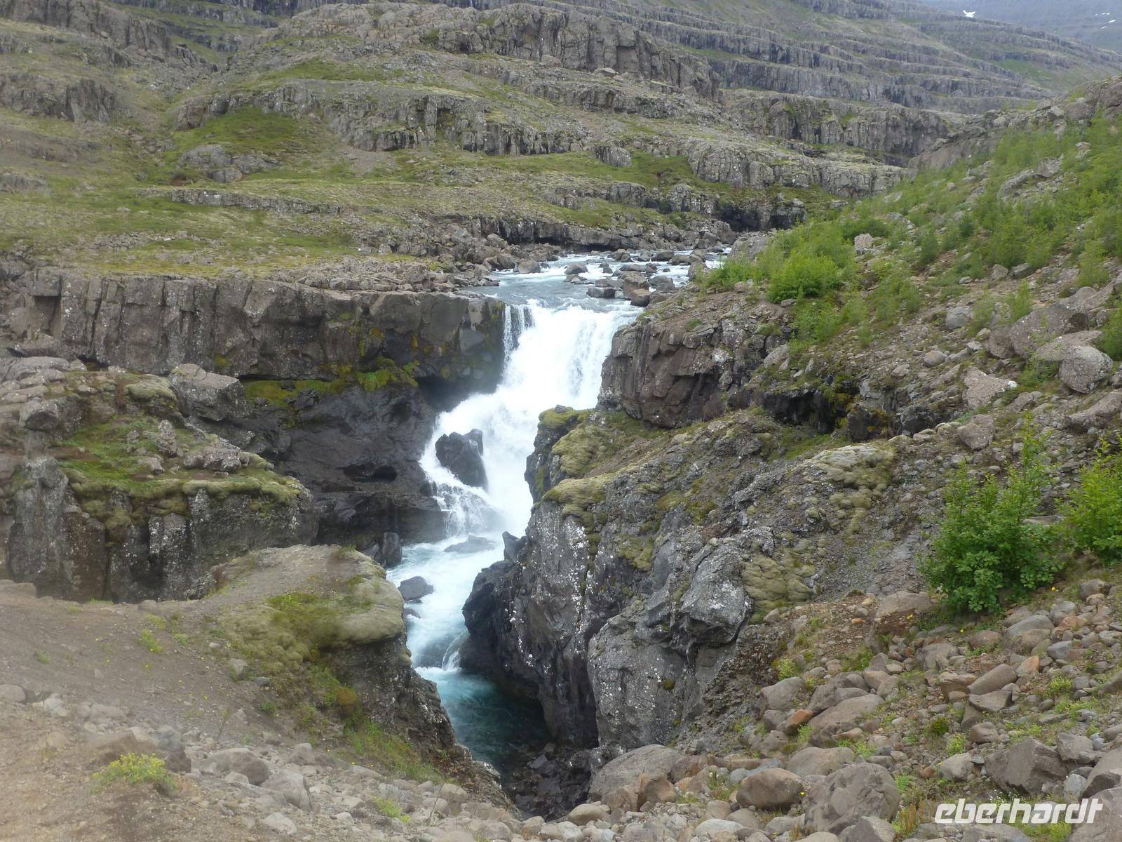 Bei strahlendem Sonnenschein verließen wir heute Akureyri, um weiter in Richtung Ostfjorde zu fahren. Bevor wir diese erreichten, standen jedoch noch 3 Höhepunkte auf unserem Tagesprogramm. Den ersten Halt legten wir im verträumten Fischerort Husavik ein. Von hier aus werden oft Walsafaris angeboten, da die Möglichkeit sehr hoch ist, die Meeresgiganten zu entdecken. Das Walmuseum bat dazu anschaulich gestaltete Ausstellungsstücke und Informationen. Weiter ging es an der Küste entlang bis zur Asbyrgi-Schlucht. Der Sage nach soll die hufeisenförmige Schlucht durch den Abdruck von Odins achtbeinigem Ross Sleipnir entstanden sein. Nach einer kleinen Wanderung legten wir am örtlichen Campingplatz noch eine Picknickpause ein, bevor uns die Reise weiter über eine Schotterstraße, vorbei an den Echofelsen, bis zum Dettifoss führte. Der 45m hohe eindrucksvolle Wasserfall empfing uns mit dem romantischen Regenbogen, den wir uns alle für das perfekte Foto gewünscht hatten. Nach einem langen Fahrttag mit vielen Eindrücken erreichten wir das Edda-Hotel in Egilstadir.