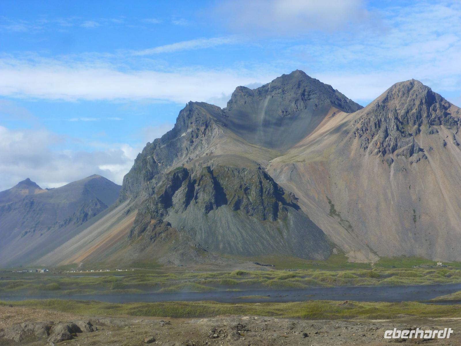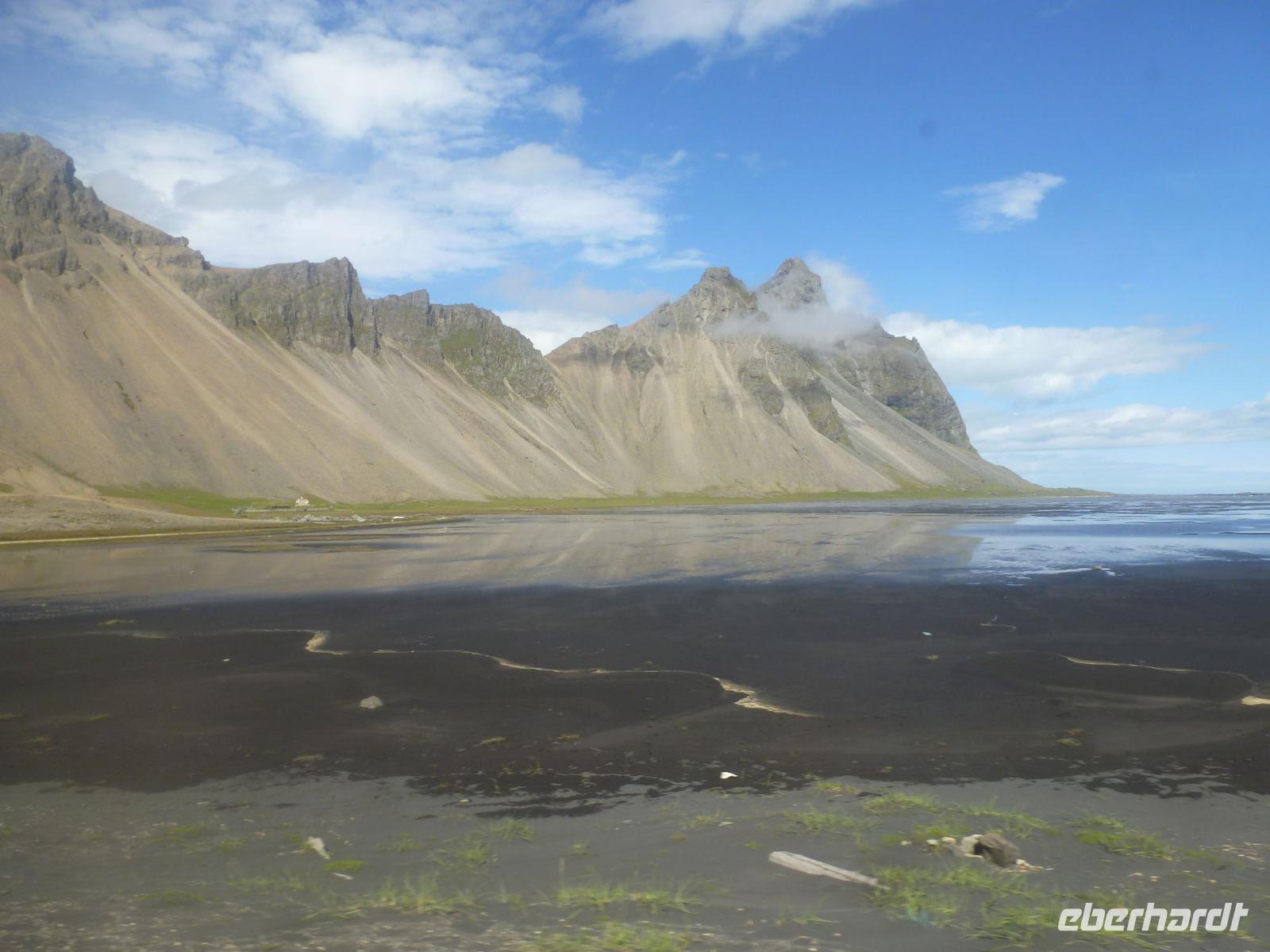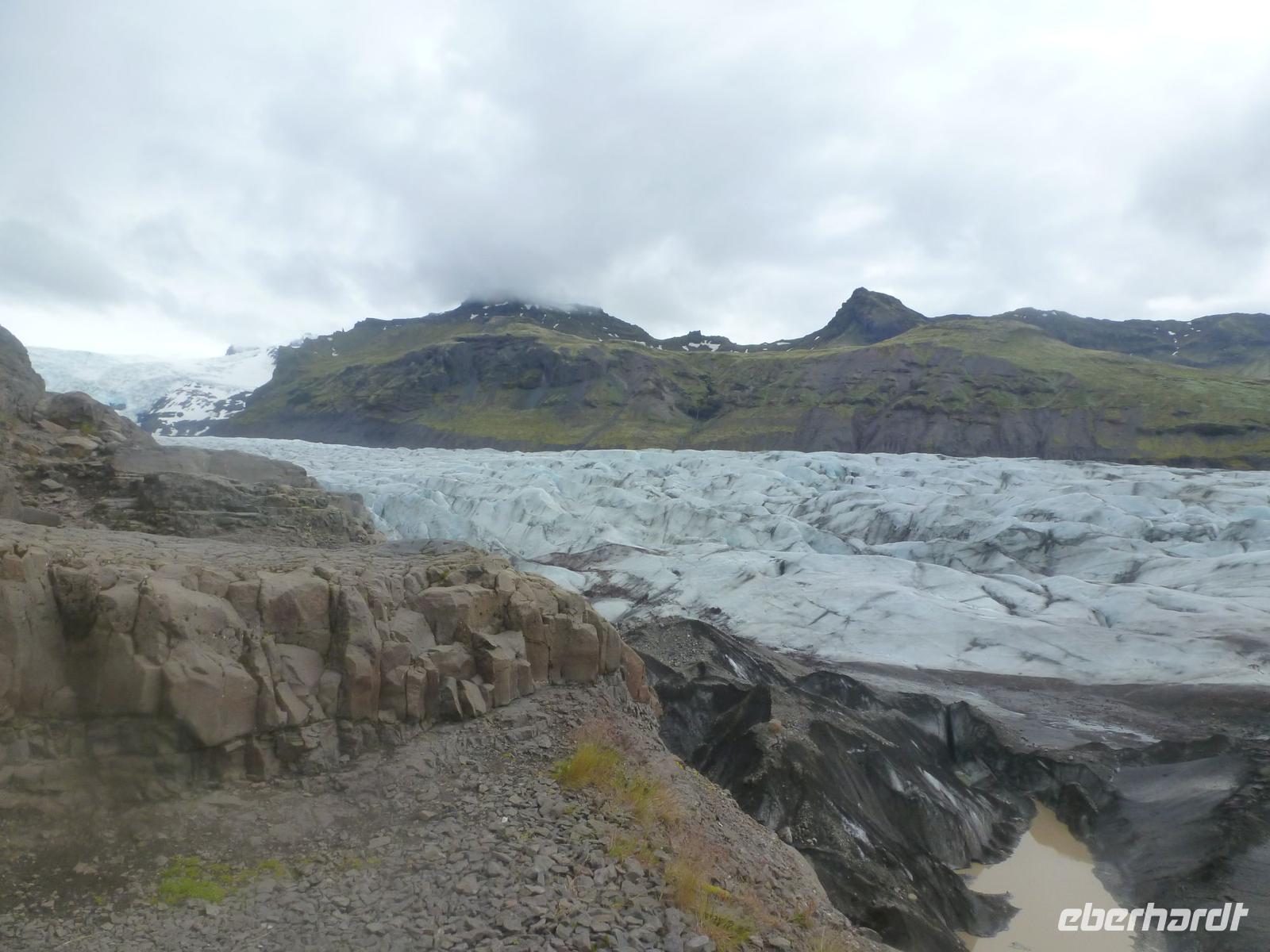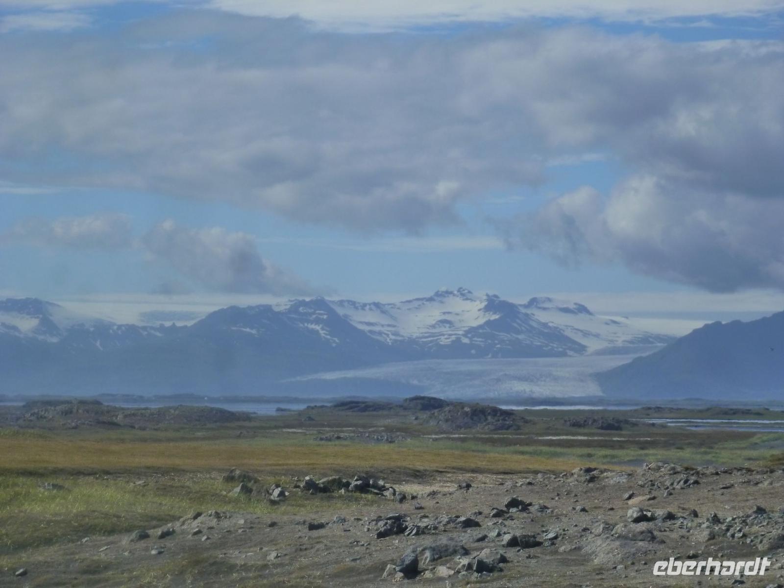 Auf Island muss man täglich mit schwankenden Wetterbedingungen rechnen. Und so hatten wir heute einen regnerischen und kalten Tag erwischt. Den ersten Stopp legten wir in der Gletscherlagune Jökulsárlón ein. Im diesigen Nebel erschienen die mächtigen Eisberge noch mystischer. Mit einem Amphibienfahrzeug ging es raus auf die Lagune. Inzwischen bereitete das Reiseleiterteam einen typischen Brenevin (Schnaps, auch schwarzer Tod genannt) mit uraltem Gletschereis vor. Dazu gab es Trockenfisch zu kosten. Weiter ging es entlang der Südküste. Dabei hatten wir immer den Blick auf gewaltige Gletscherzunge. Bei einer kleinen Wanderung kamen wir ganz nah ran an diese. Im Nationalpark Skaftafell besuchten wir ein Informationszentrum über die Gletscher. Auch eine individuelle Wanderung bis zum Gletscher bot sich hier an. Nach der Fahrt durch das weitläufige Lavafeld des Laki-Ausbruchs gelangten wir zum heutigen Übernachtungsort Vik.
