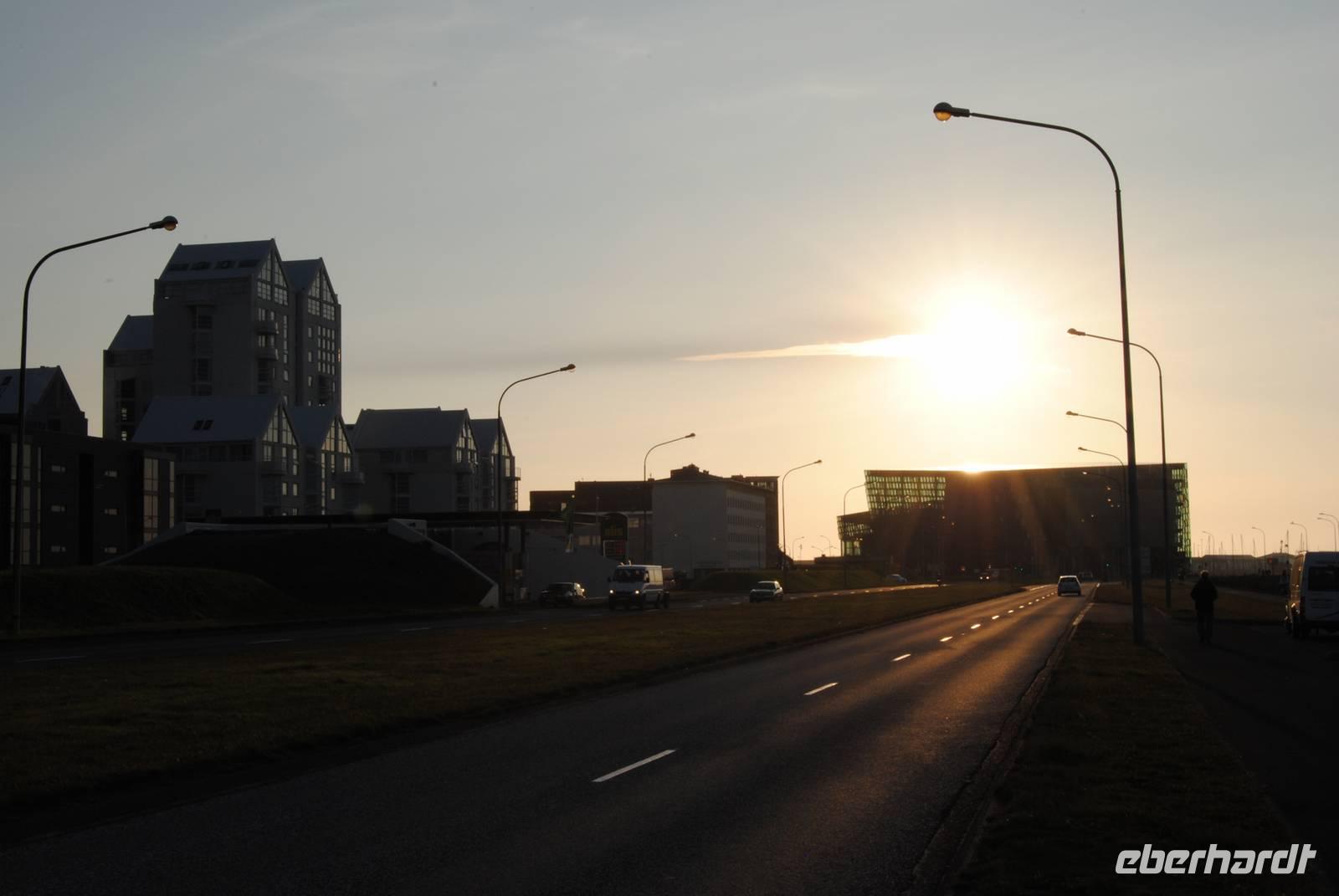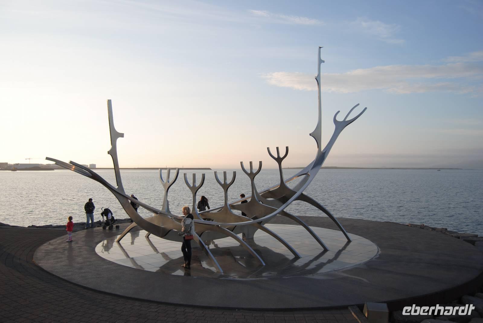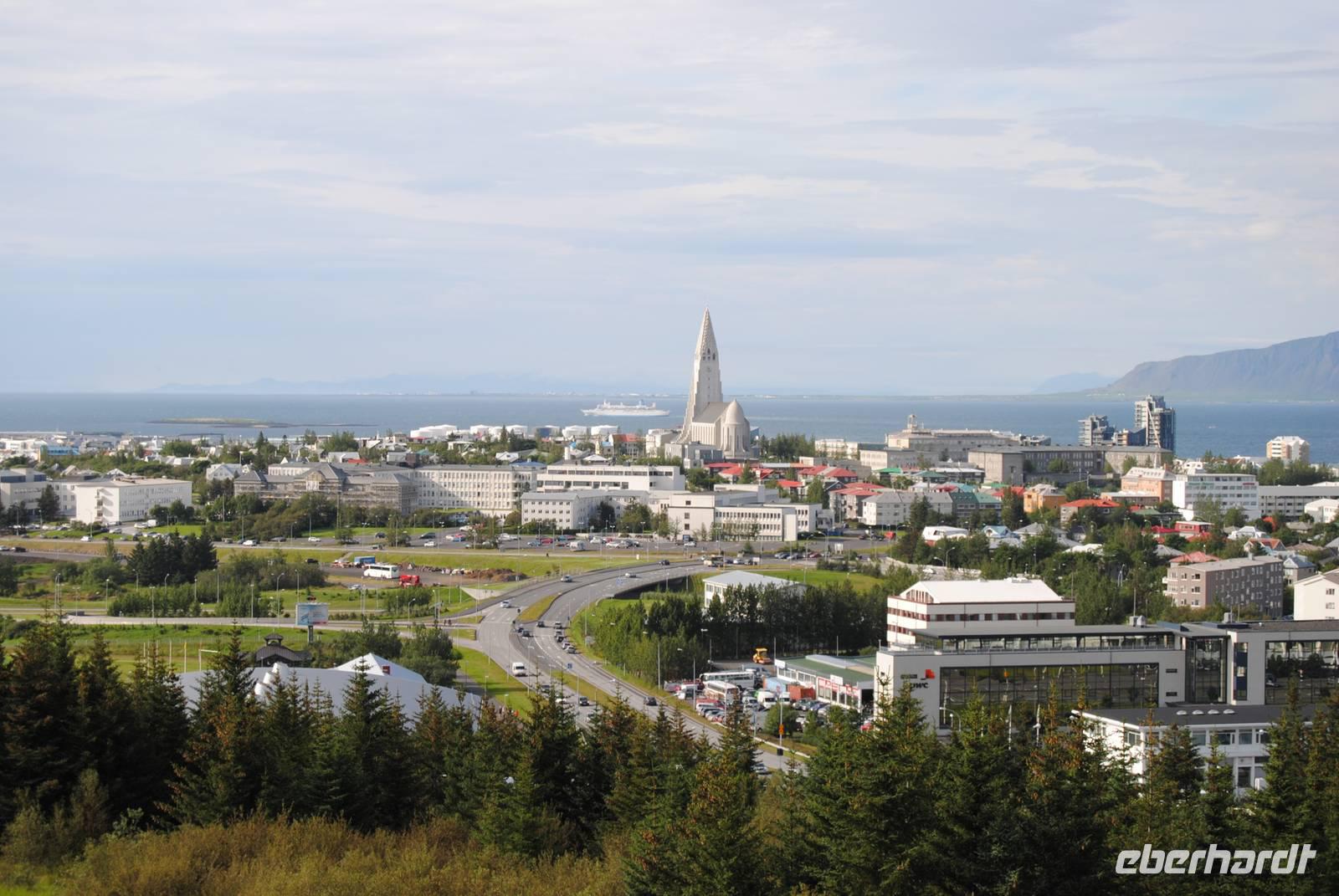 Am Morgen trafen sich ein Großteil der Gruppe und ich in Dresden um gemeinsam mit dem Bus bis zum Flughafen Berlin-Schönefeld zu fahren. In Schönefeld war unsere Gruppe dann komplett und wir flogen pünktlich um 13.35 Uhr in Richtung Norden. Die Flugdauer bis Island beträgt ca. 3,5 h, sodass wir am Nachmittag in Keflavik landeten. Der internationale Flughafen auf der ca. 100.000 km 2 großen Insel befindet sich ca. 40 km außerhalb der Hauptstadt Reykjavik. Am Flughafen begrüßte uns bereits herzlich unsere Reiseleiterin Berglind und wir fuhren gemeinsam zur Rauchbucht-so Reykjavik übersetzt. Am frühen Abend erreichten wir unser Hotel in der Innenstadt und bezogen unsere Zimmer. Den Abend ließen wir im Restaurant Sjavargrilled bei köstlichem Fisch ausklingen.