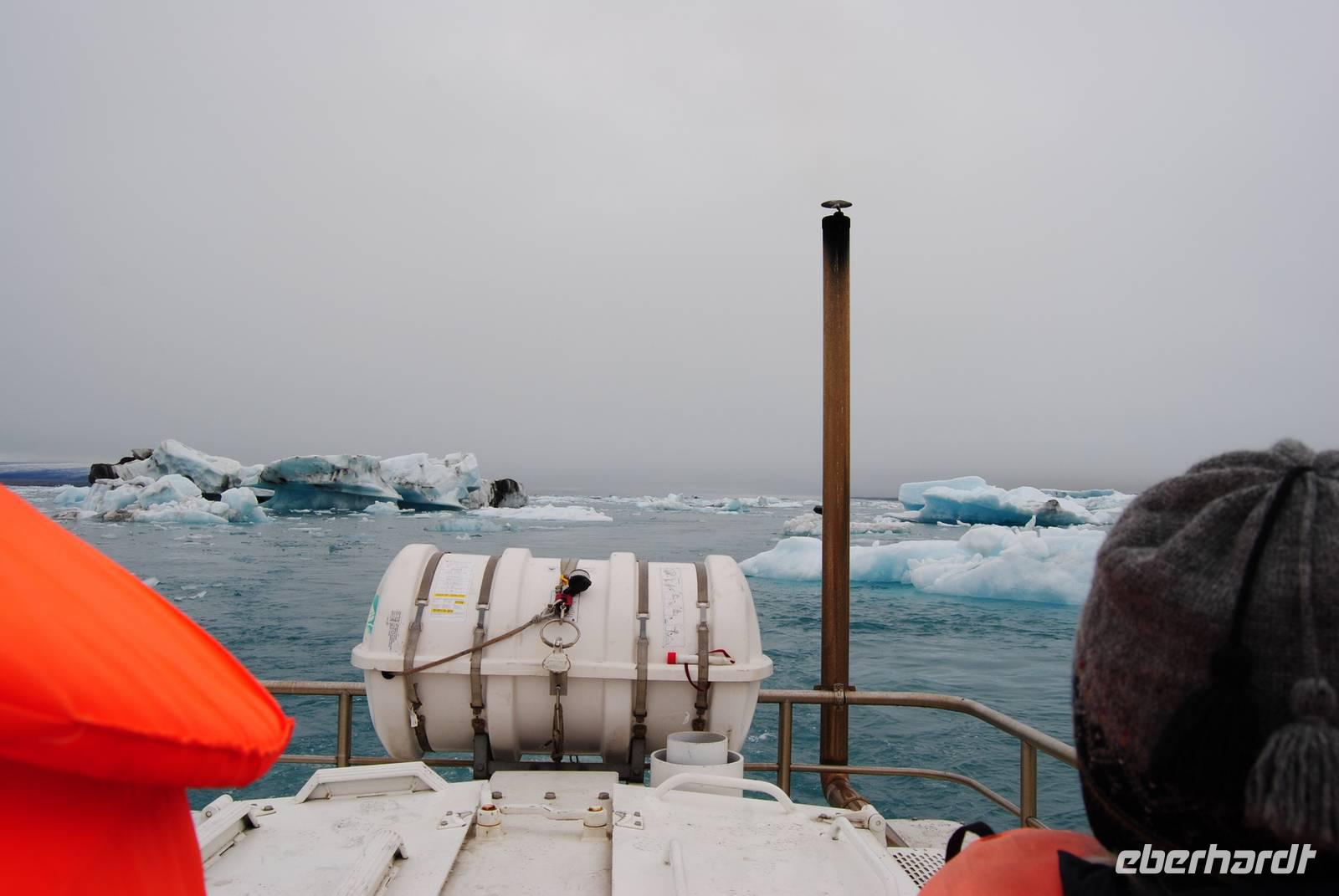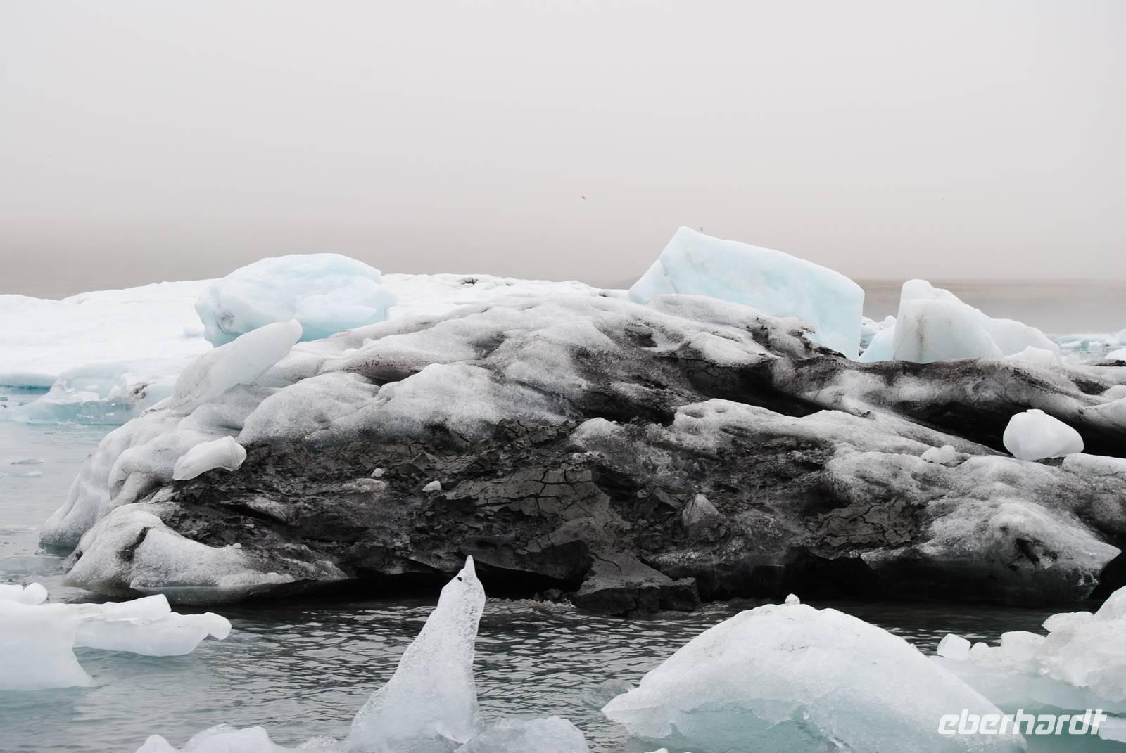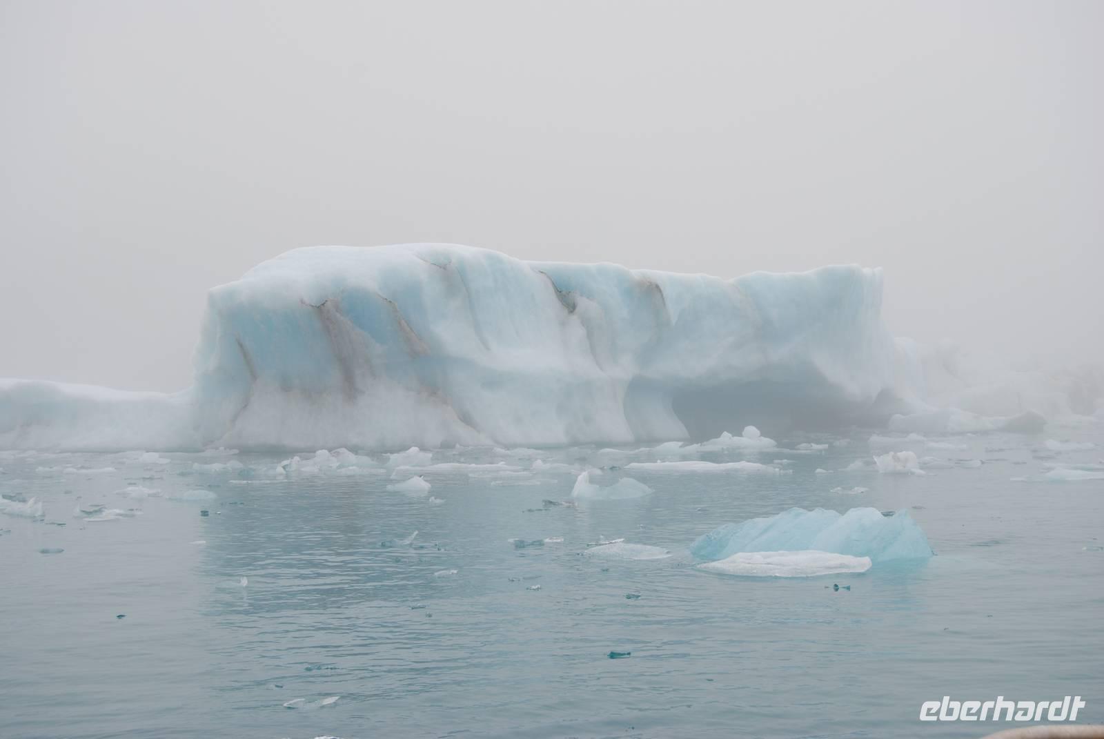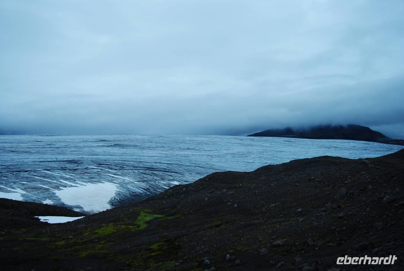 Hafen, wie Höfn übersetzt heißt, verließen wir am Morgen und setzten unsere Fahrt an der Südlküste in Richtung Westen fort. Entlang der Gletscherausläufer des Vatnajökull fuhren wir weiter auf der Inselringstraße 1 zunächst zum See Jökulsárlón (Gletscherflusslagune) Im dichten Nebel stiegen wir vom Bus auf ein Amphibienfahrzeug und fuhren, mit Schwimmwesten ausgerüstet, in die Lagune. Nach kurzer Zeit lockerte dann auch der Nebel auf und die Eisschollen kamen in ihrer blau-weißen Pracht zum Vorschein, ein beeindruckendes Erlebnis. An den Füßen der Gletscher setzten wir unsere Fahrt mit dem Bus fort und besuchten anschließend die Bergflussgletscherzunge Fjallsarlon und den Svínafellsjökull. An der Gletscherzunge des Svínafellsjökull legten wir am Mittag eine Pause ein und genossen die Weite des Gletschers. Ein interessantes Erlebnis, denn immer wieder hörte man Teile des Eises abbrechen und man merkte, wie hier die Natur hier arbeitet. Nach dem Mittag besuchten wir dann das Nationalparkzentrum Skaftafell und schauten uns die Ausstellung zu den Ausbrüchen und zur Geschichte des Vatnajökull an. Unsere Fahrt führte uns anschließend immer entlang der Südküste bis zu den Lavafeldern bei Skaftárhreppur. Das besondere der Lavafelder ist, dass diese komplett mit Zackenmützenmoos bedeckt- und somit weich wie ein Bett sind. Auch in dieser Gegend war es wieder faszinierend, wie sich die Landschaftsform von einem auf den anderen Kilometer ändern kann. Am frühen Abend erreichten wir dann das frisch eröffnete Edda-Hotel in Vik (Bucht) und am Abend unternahm ein Großteil der Gruppe einen Spaziergang entlang des schwarzen Strands von Vik.