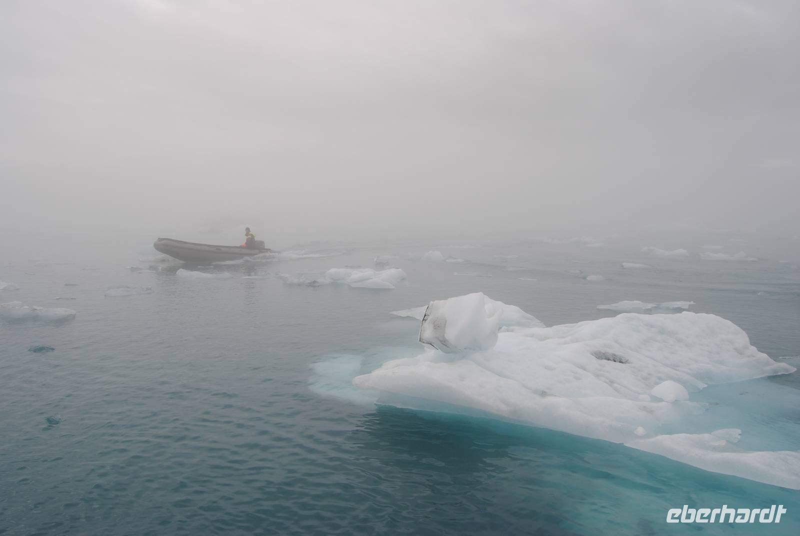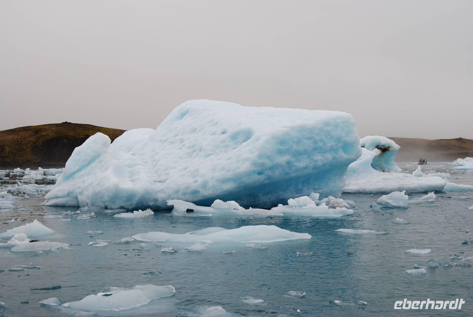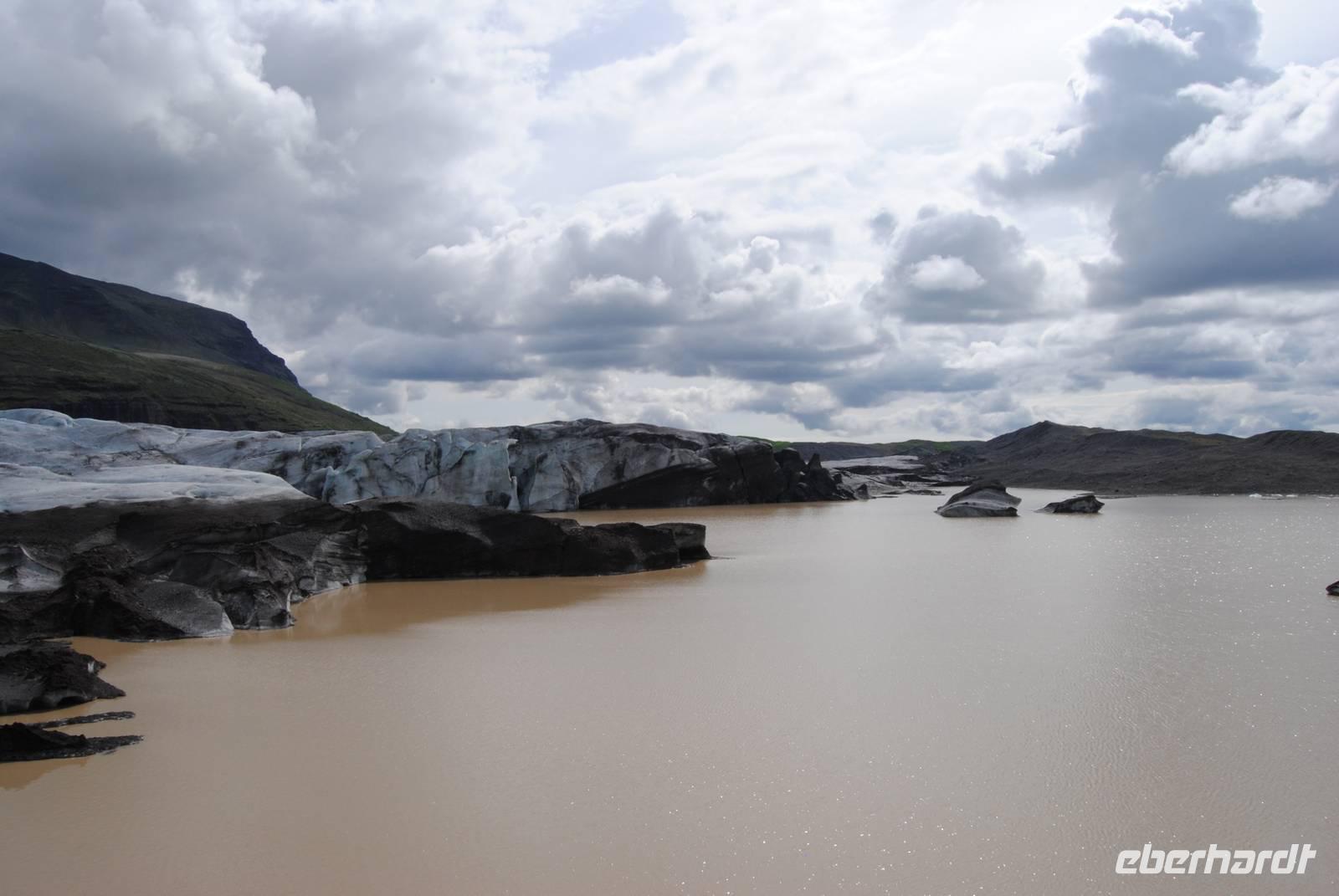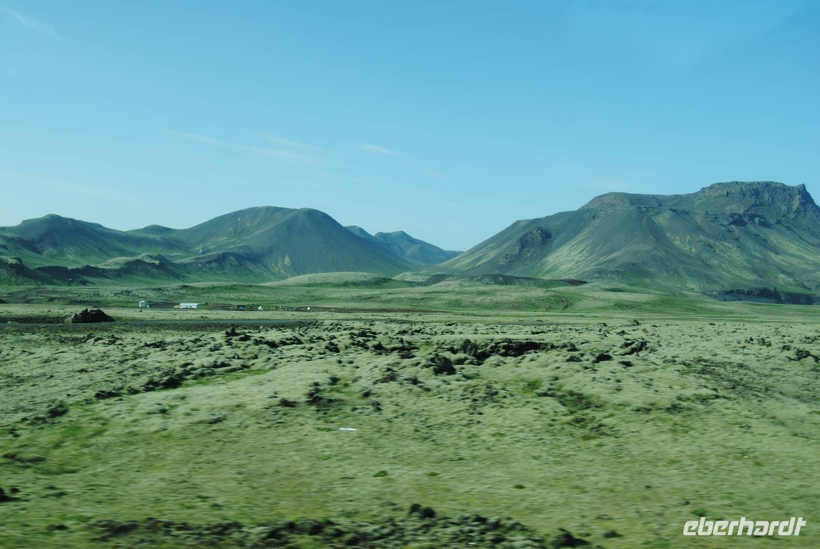 Hafen, wie Höfn übersetzt heißt, verließen wir am Morgen und setzten unsere Fahrt an der Südlküste in Richtung Westen fort. Entlang der Gletscherausläufer des Vatnajökull fuhren wir weiter auf der Inselringstraße 1 zunächst zum See Jökulsárlón (Gletscherflusslagune) Im dichten Nebel stiegen wir vom Bus auf ein Amphibienfahrzeug und fuhren, mit Schwimmwesten ausgerüstet, in die Lagune. Nach kurzer Zeit lockerte dann auch der Nebel auf und die Eisschollen kamen in ihrer blau-weißen Pracht zum Vorschein, ein beeindruckendes Erlebnis. An den Füßen der Gletscher setzten wir unsere Fahrt mit dem Bus fort und besuchten anschließend die Bergflussgletscherzunge Fjallsarlon und den Svínafellsjökull. An der Gletscherzunge des Svínafellsjökull legten wir am Mittag eine Pause ein und genossen die Weite des Gletschers. Ein interessantes Erlebnis, denn immer wieder hörte man Teile des Eises abbrechen und man merkte, wie hier die Natur hier arbeitet. Nach dem Mittag besuchten wir dann das Nationalparkzentrum Skaftafell und schauten uns die Ausstellung zu den Ausbrüchen und zur Geschichte des Vatnajökull an. Unsere Fahrt führte uns anschließend immer entlang der Südküste bis zu den Lavafeldern bei Skaftárhreppur. Das besondere der Lavafelder ist, dass diese komplett mit Zackenmützenmoos bedeckt- und somit weich wie ein Bett sind. Auch in dieser Gegend war es wieder faszinierend, wie sich die Landschaftsform von einem auf den anderen Kilometer ändern kann. Am frühen Abend erreichten wir dann das frisch eröffnete Edda-Hotel in Vik (Bucht) und am Abend unternahm ein Großteil der Gruppe einen Spaziergang entlang des schwarzen Strands von Vik.
