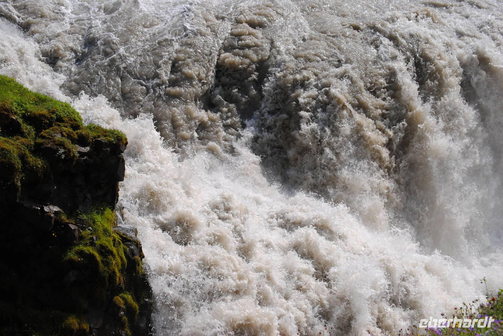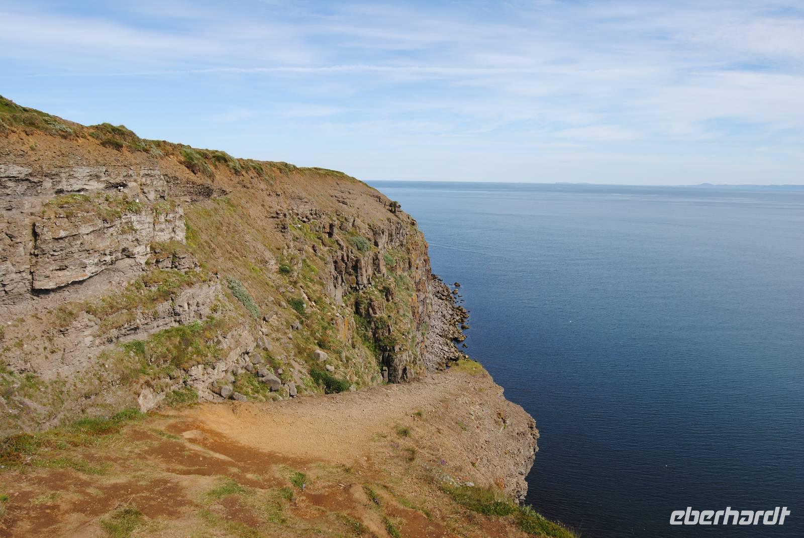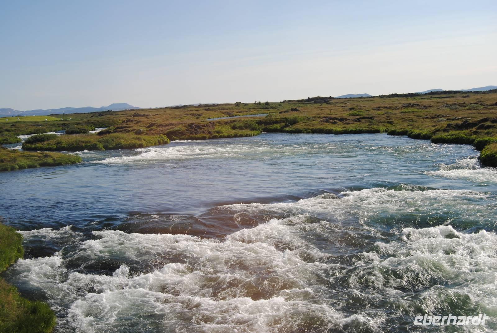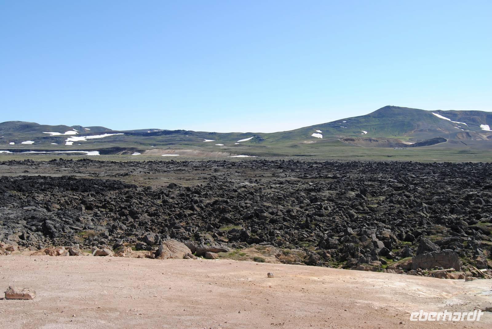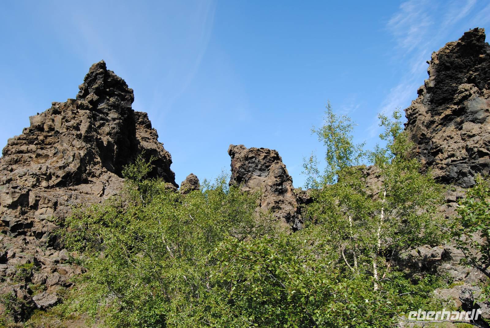 Akureyri war noch dicht in Nebel gehüllt, als wir die idyllische Stadt am Eyjafjördur (Inselfjord) am Morgen in Richtung Myvatn (Mückensee) verließen. Doch umso weiter wir höher in die Berge fuhren, umso mehr riss die Wolkendecke auf und uns boten herrliche Aussichten. Am Vormittag erreichten wir den Myvatn, den Mückensee und zugleich viertgrößten Binnensee Islands. Nach kurzem Fotostop setzten wir unsere Fahrt in das Vulkangebiet der Krafla fort. Und obwohl der Myvatn und das Vulkangebiet nur wenige Kilometer trennt, ist die Natur extrem unterschiedlich. Auf der einen Seite, das saftige Grün der Wiesen am Myvatn, auf der anderen Seite die endlose Weite des Vulkangesteins und der nimmermüden sprudelnden Quellen. Einfach beeindruckend. Am Mittag entspannten wir in der Badelagune Jardbödin zwischen Reykjahlio und Namaskaro und genossen die weite Sicht über den See Myvatn. Am frühen Nachmittag erreichten wir dann wieder den Myvatn und fuhren zum Lava-Labyrinth Dimmuborgir, einer bizarren Felslandschaft, in der wir eine kleine Wanderung unternahmen und neben den vielen versteinerten Trollen, auch eine Vielzahl an natürlichen, steinernen Pilzen entdeckten ;-) Auf der Rückfahrt nach Akureyri besuchten wir noch den Godafoss (Götterwasserfall), dessen Wasser wie das der meisten Wasserfälle auf Island durch Gletscherwasser gespeist wird. Am frühen Abend erreichten wir wieder unser Hotel in Akureyri, doch vorher legten wir gegenüber der Hafenstadt am Eyjafjördur noch einen Fotostop ein um die tolle Aussicht in den Fjord zu genießen. Nach dem Abendessen fuhr ich mit einigen Gästen hinunter an den Eyjafjördur um einen Reitausflug mit Islandpferden zu unternehmen. Nach kurzer Einweisung und der Helmausgabe führte uns anschließend die geführte Tour entlang des Eyjafjördur, ein tolles Erlebnis.