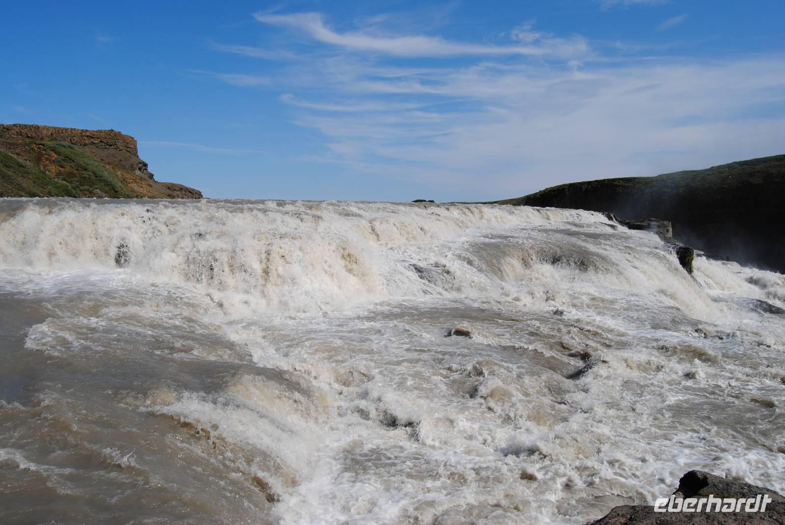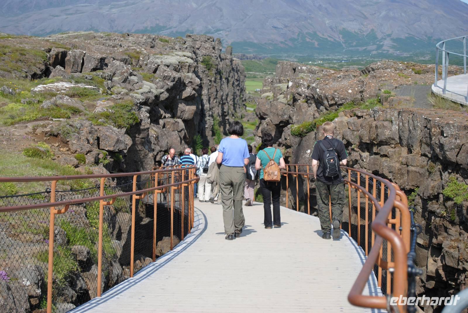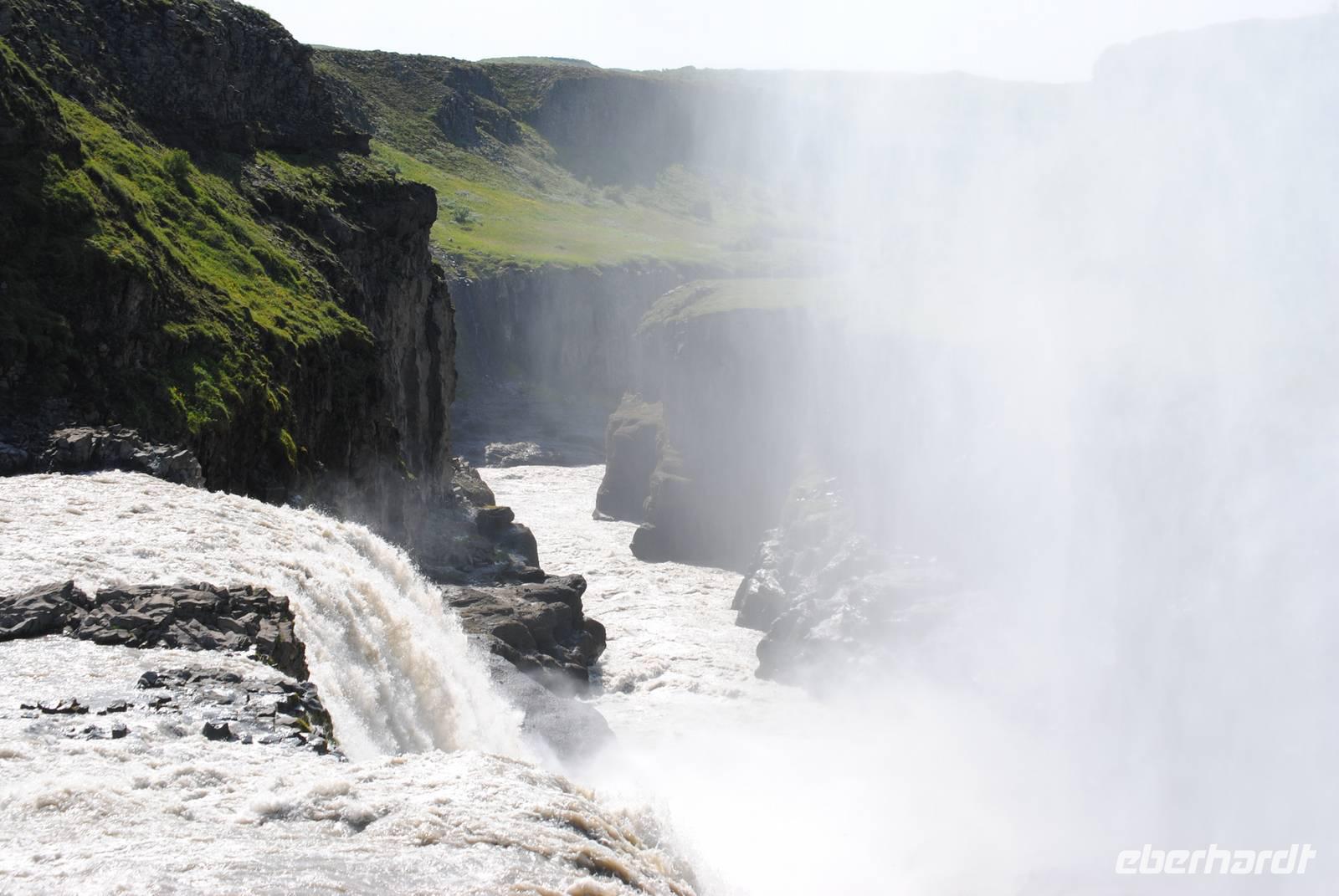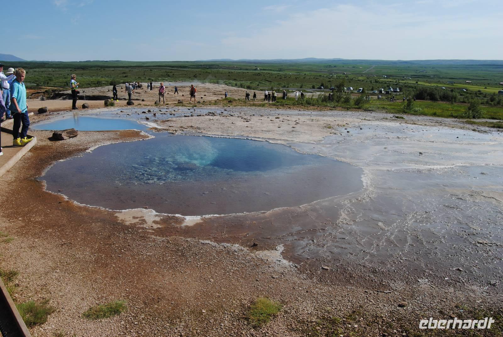Am Morgen fuhren wir zunächst in die Gartenstadt Hveragerði und besuchten dort im Ortszentrum die kleine Ausstellung zu den hier häufig auftretenden Erdbeben. Die weitere Fahrt führte uns über den Wasserfall Faxi an den Geysir Strokkur, der aller 5-8 Minuten eine 40-50 Meter hohe Wasserfontäne in die Höhe schießen lässt, ein tolles Erlebnis. Nach dem Mittag fuhren wir weiter zum Gullfoss (goldener Wasserfall) und spazierten bis an die Kante des Wasserfalls. Am Nachmittag erreichten wir Thingvellir, die Ebene der Volksversammlung. Hier verließen wir den Bus und spazierten zwischen der euroasiatischen- und der amerikanischen Platte zum Platz der Volksversammlung. Am Abend unterahmen wir noch eine kleine Stadtrundfahrt und besuchten das höchste Gebäude Reykjaviks, die Hallgrimmskirche.