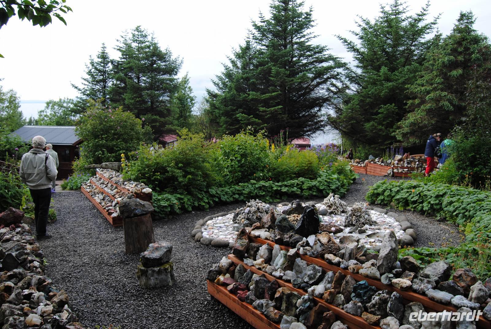 Am Morgen fuhren wir zunächst entlang der Ostfjorde bis zu Petras Steinhaus. Die Dame hat seit frühem Kindesalter Steine auf Island gesammelt und Sie nach und nach zu einer Ausstellung zusammen getragen. Leider lebt Petra selbst nicht mehr, Ihre Kinder führen Ihre Sammlung fort, sodass dieses kleine Idyll auch in Zukunft der Öffentlichkeit zugänglich sein wird. Am Mittag erreichten wir die kleine Hafenstadt Djüpivogur (tiefe Bucht) wo wir eine Mittagsrast einlegten. Nach der Stärkung fuhren wir zum Hafen und unternahmen einen kleinen Spaziergang der besonderen Art. Denn entlang der Hafenmauer hat hier hat ein isländischer Künstler Eier von 34 in der Umgebung nistenden Vögeln in Übergröße aus Stein aufgestellt.