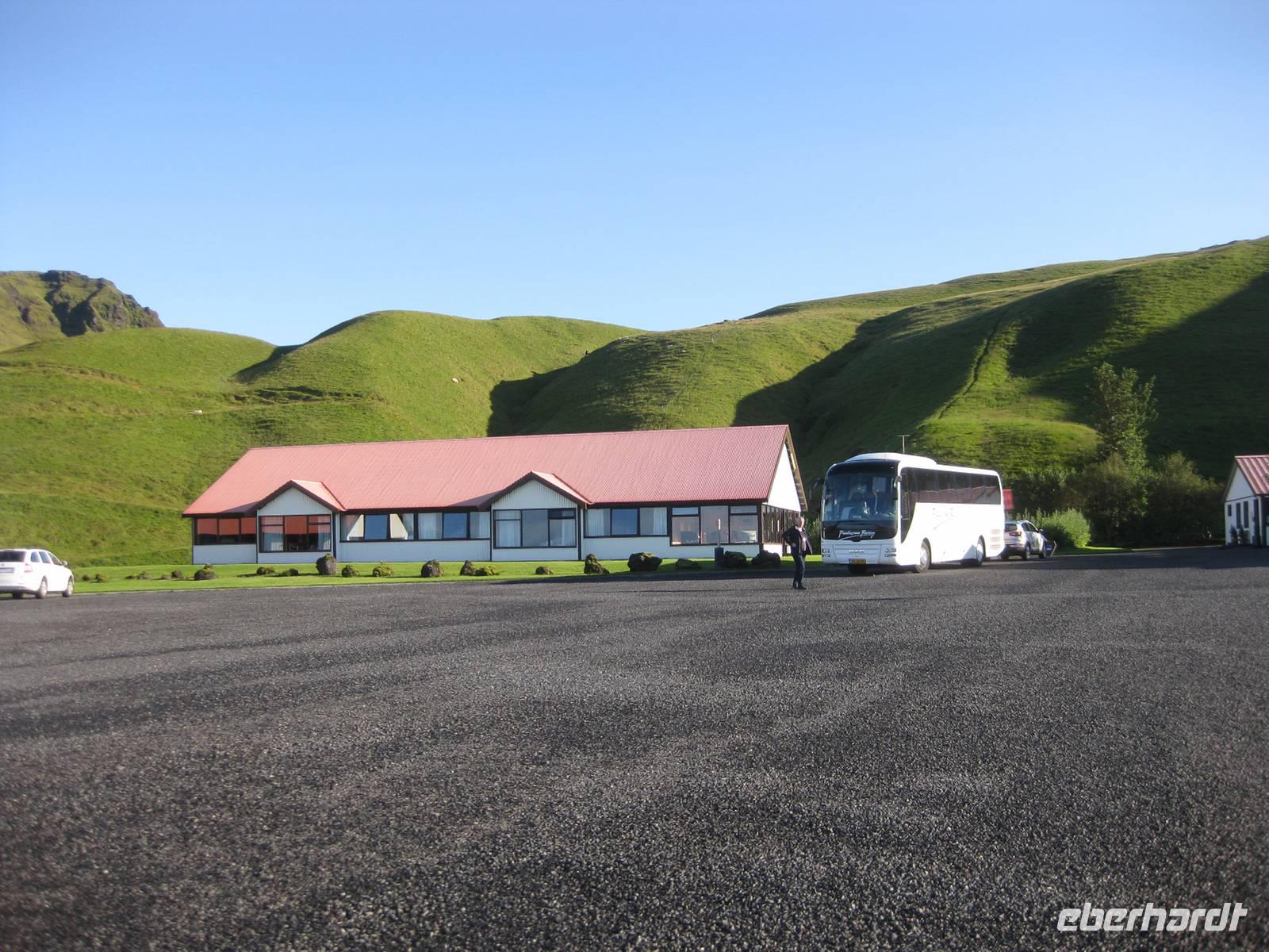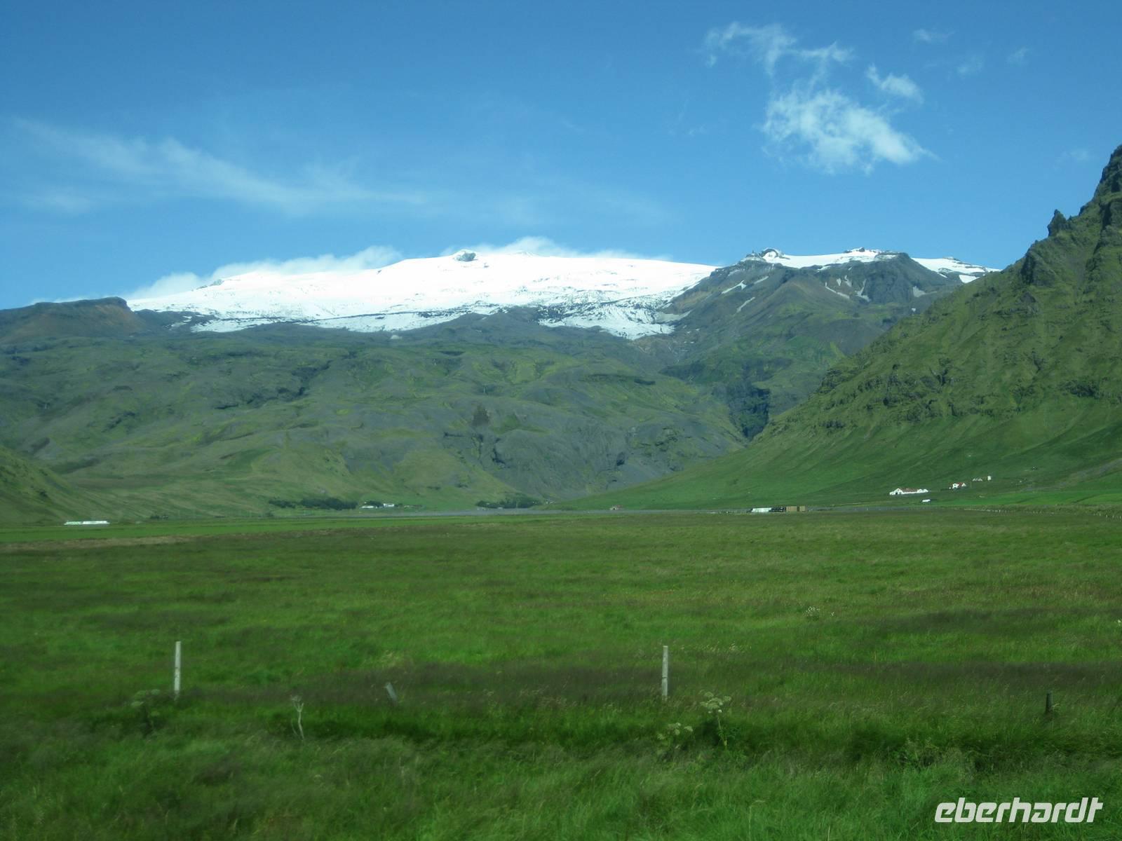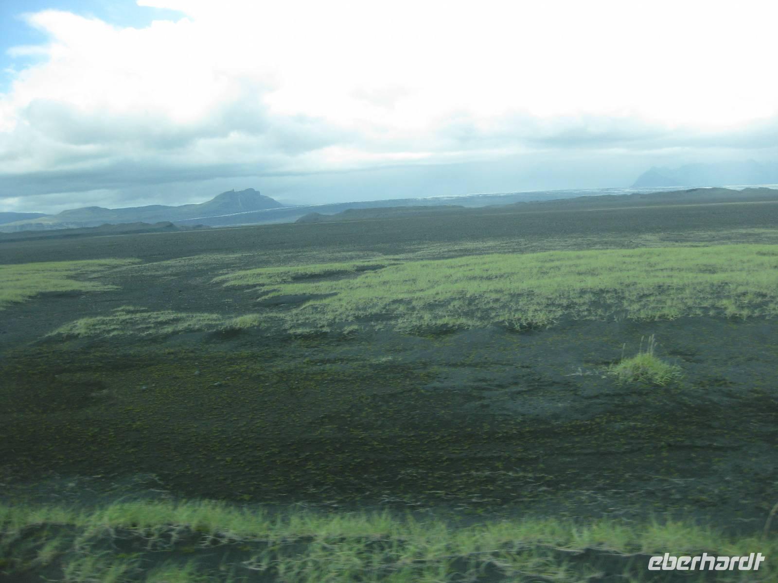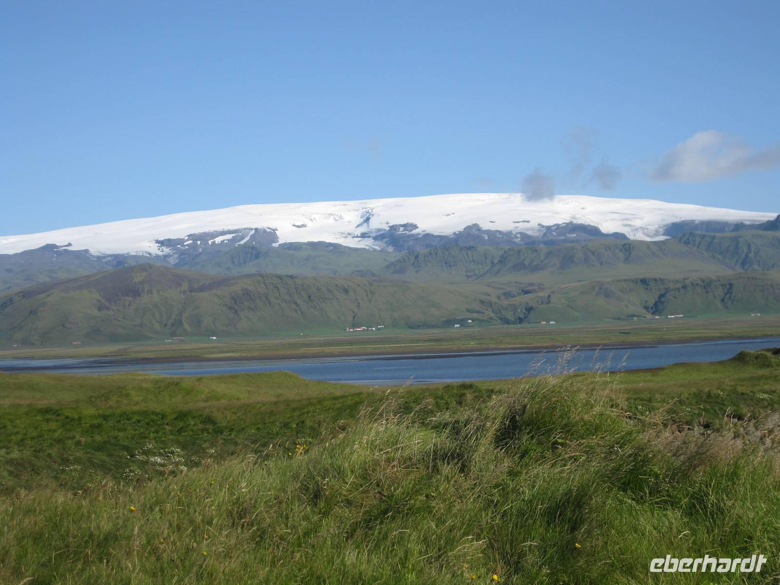 Dann führt uns die Fahrt am größten Talgletscher Europas, dem Skeidararjökull vorbei, über riesige Sanderflächen, an riesigen Lavafeldern, die bei der „Dampfkatastrophe" 1873 entstanden sind, vorbei bis zu unserem Hotel „Katla - Höfdabrekka" kurz vor Vik. Auf der Fahrt sehen wir in der Ferne den Gletscher Myrdalsjökull, der den Vulkan Katla beherbergt.