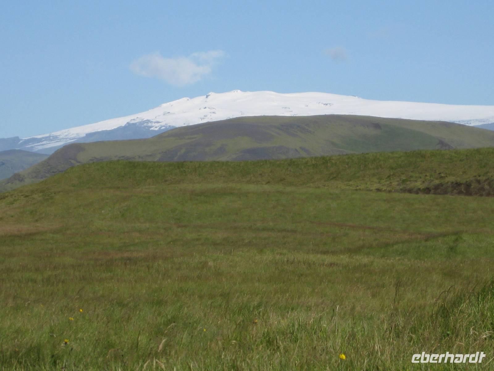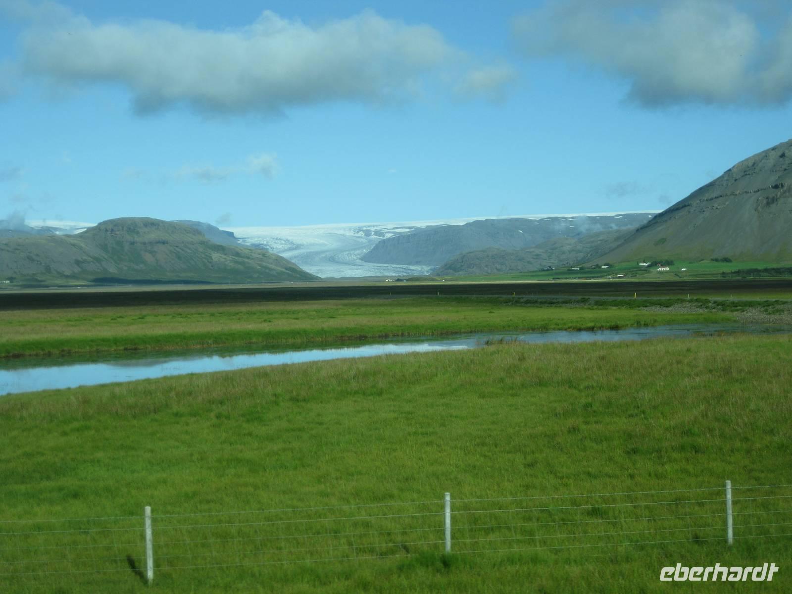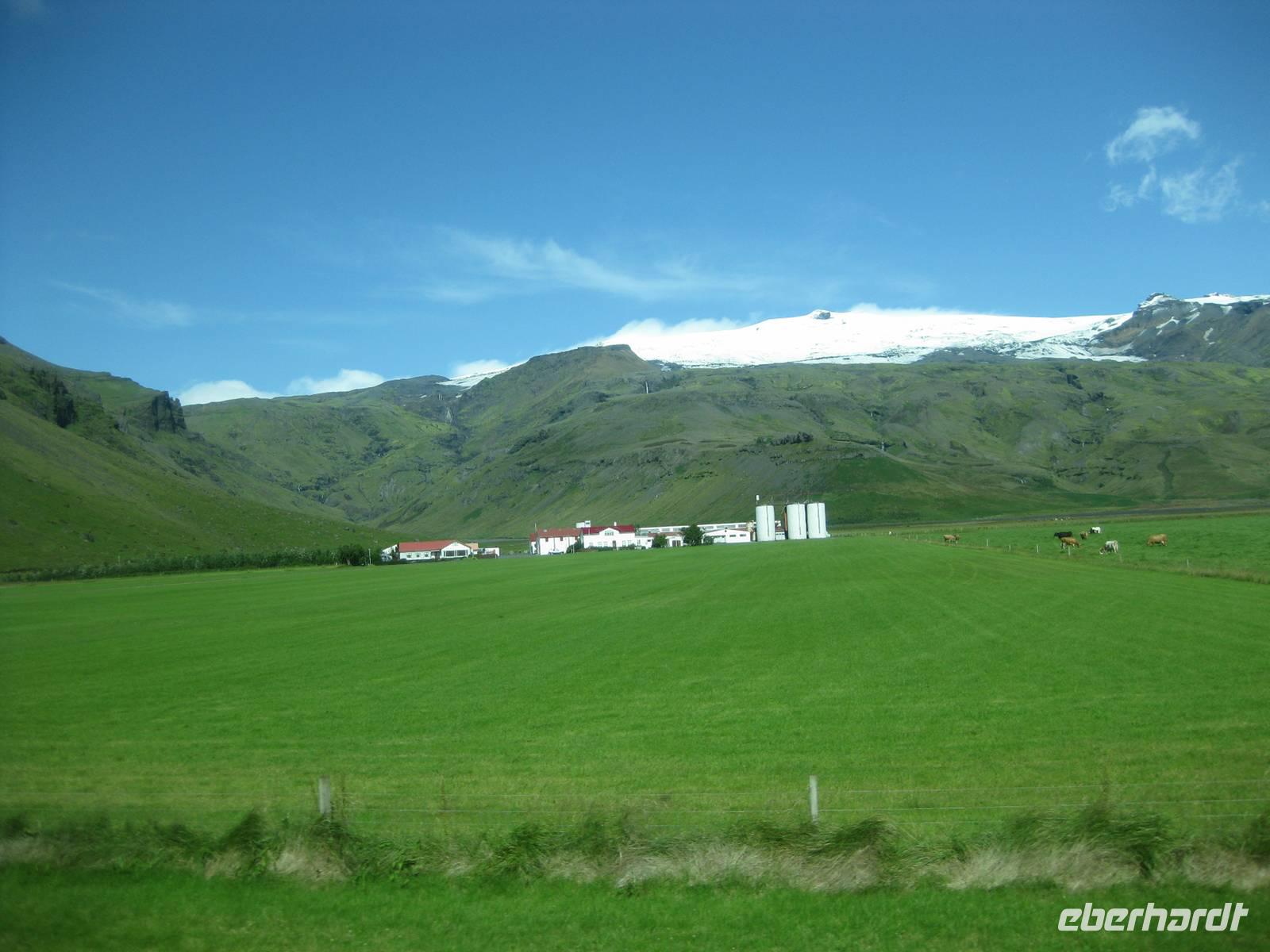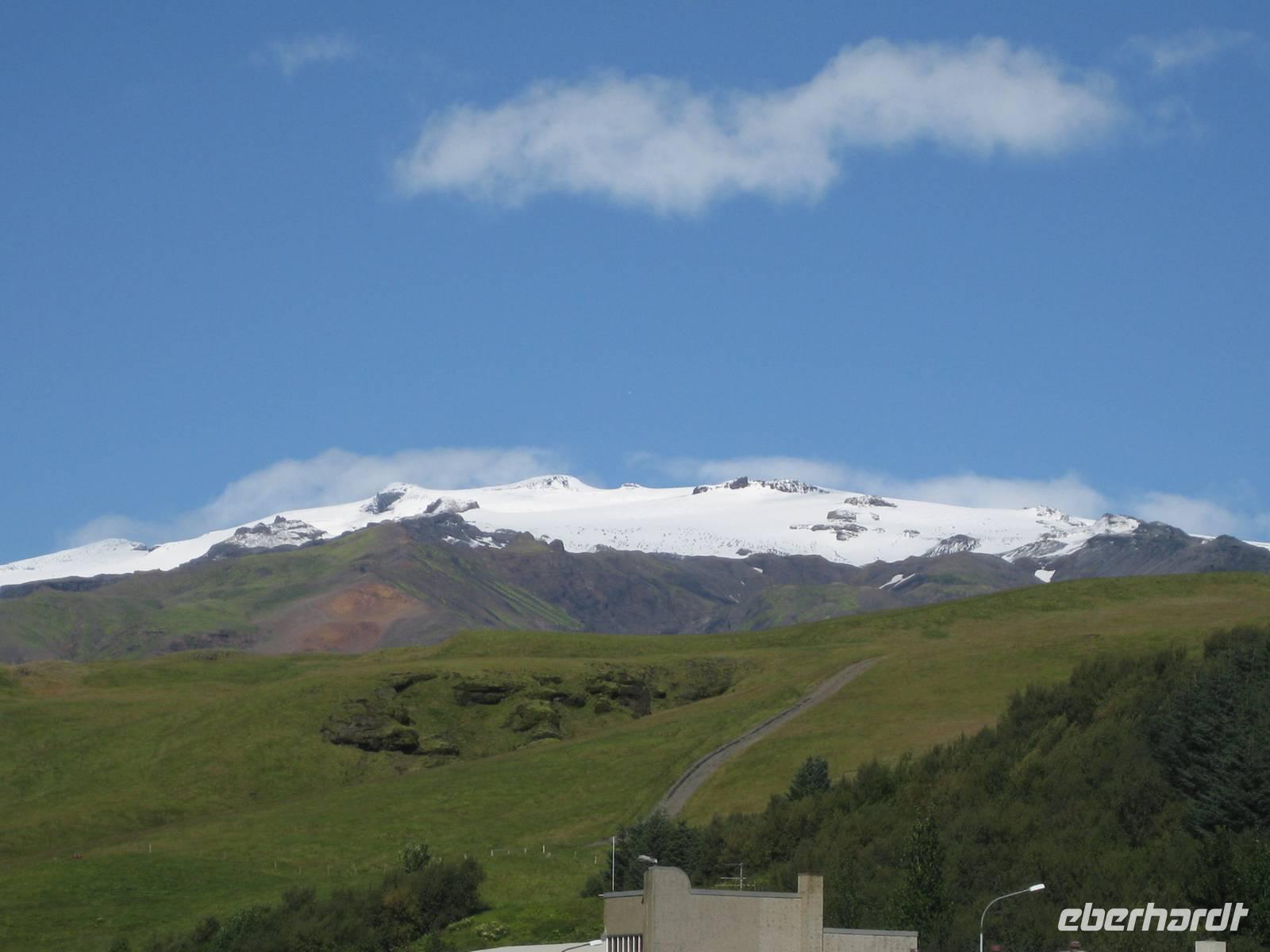 Dann führt uns die Fahrt am größten Talgletscher Europas, dem Skeidararjökull vorbei, über riesige Sanderflächen, an riesigen Lavafeldern, die bei der „Dampfkatastrophe" 1873 entstanden sind, vorbei bis zu unserem Hotel „Katla - Höfdabrekka" kurz vor Vik. Auf der Fahrt sehen wir in der Ferne den Gletscher Myrdalsjökull, der den Vulkan Katla beherbergt.
