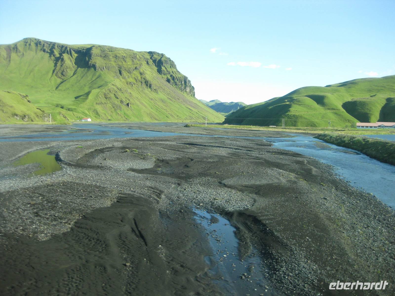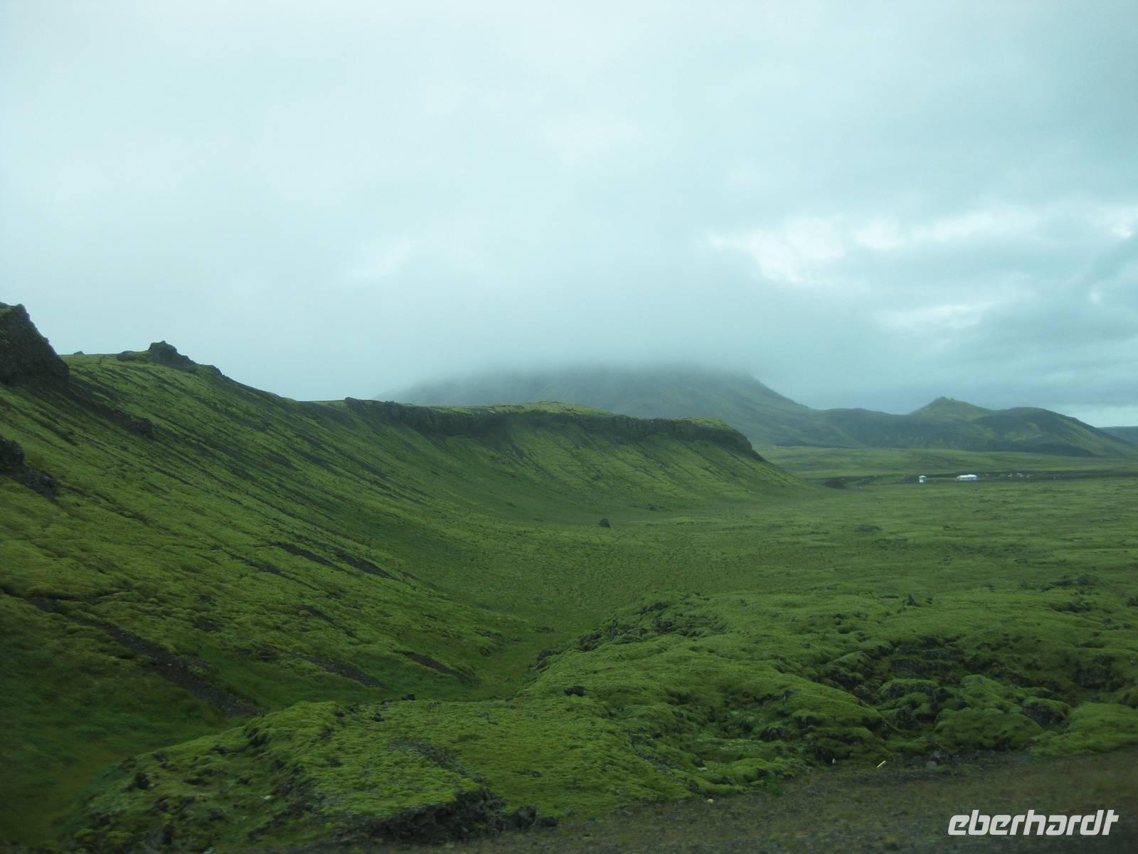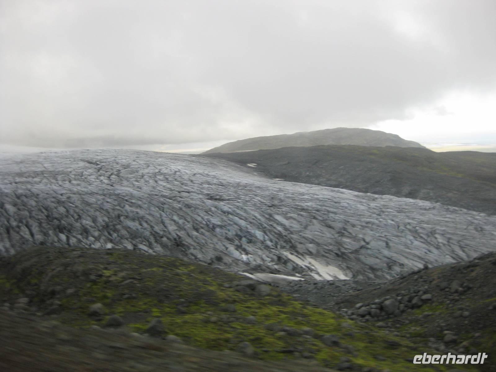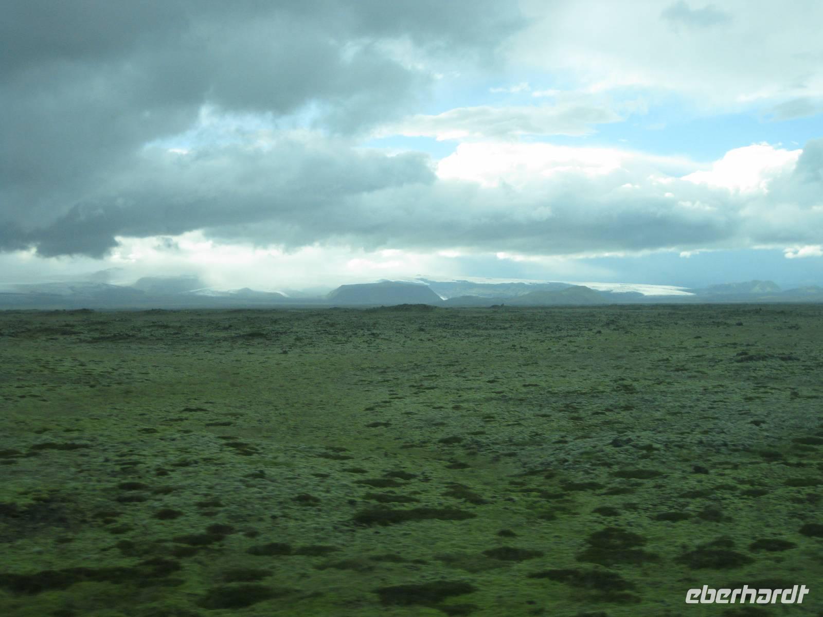 Dann führt uns die Fahrt am größten Talgletscher Europas, dem Skeidararjökull vorbei, über riesige Sanderflächen, an riesigen Lavafeldern, die bei der „Dampfkatastrophe" 1873 entstanden sind, vorbei bis zu unserem Hotel „Katla - Höfdabrekka" kurz vor Vik. Auf der Fahrt sehen wir in der Ferne den Gletscher Myrdalsjökull, der den Vulkan Katla beherbergt.