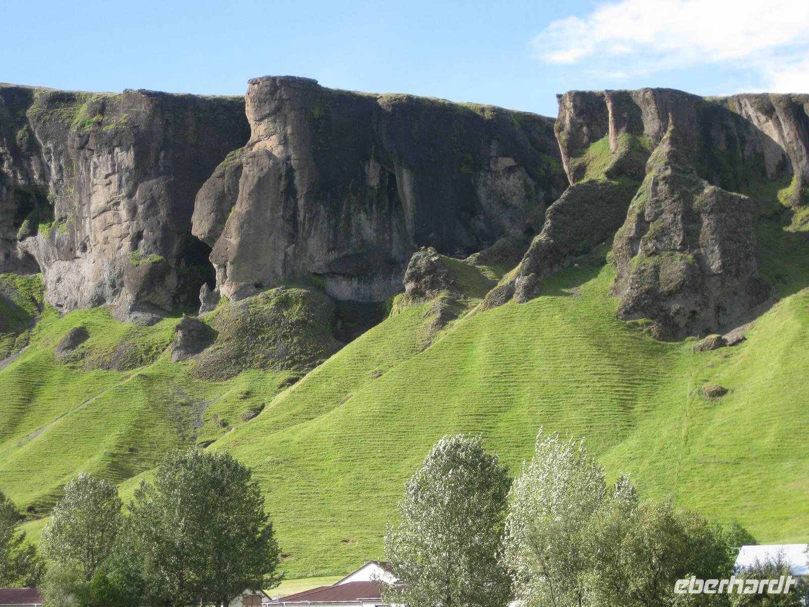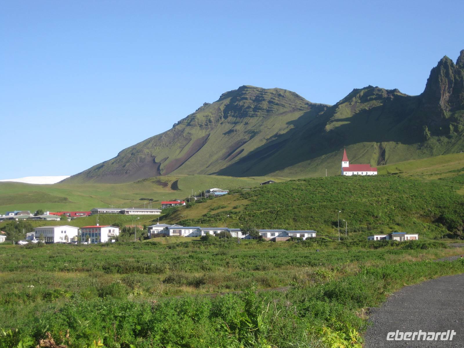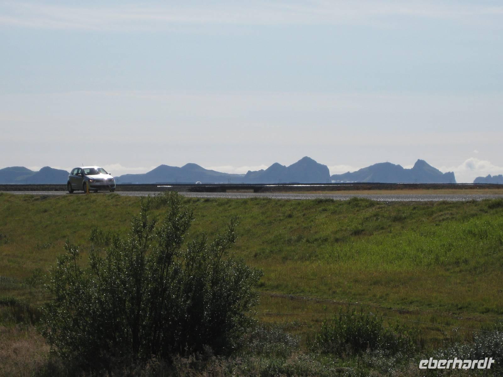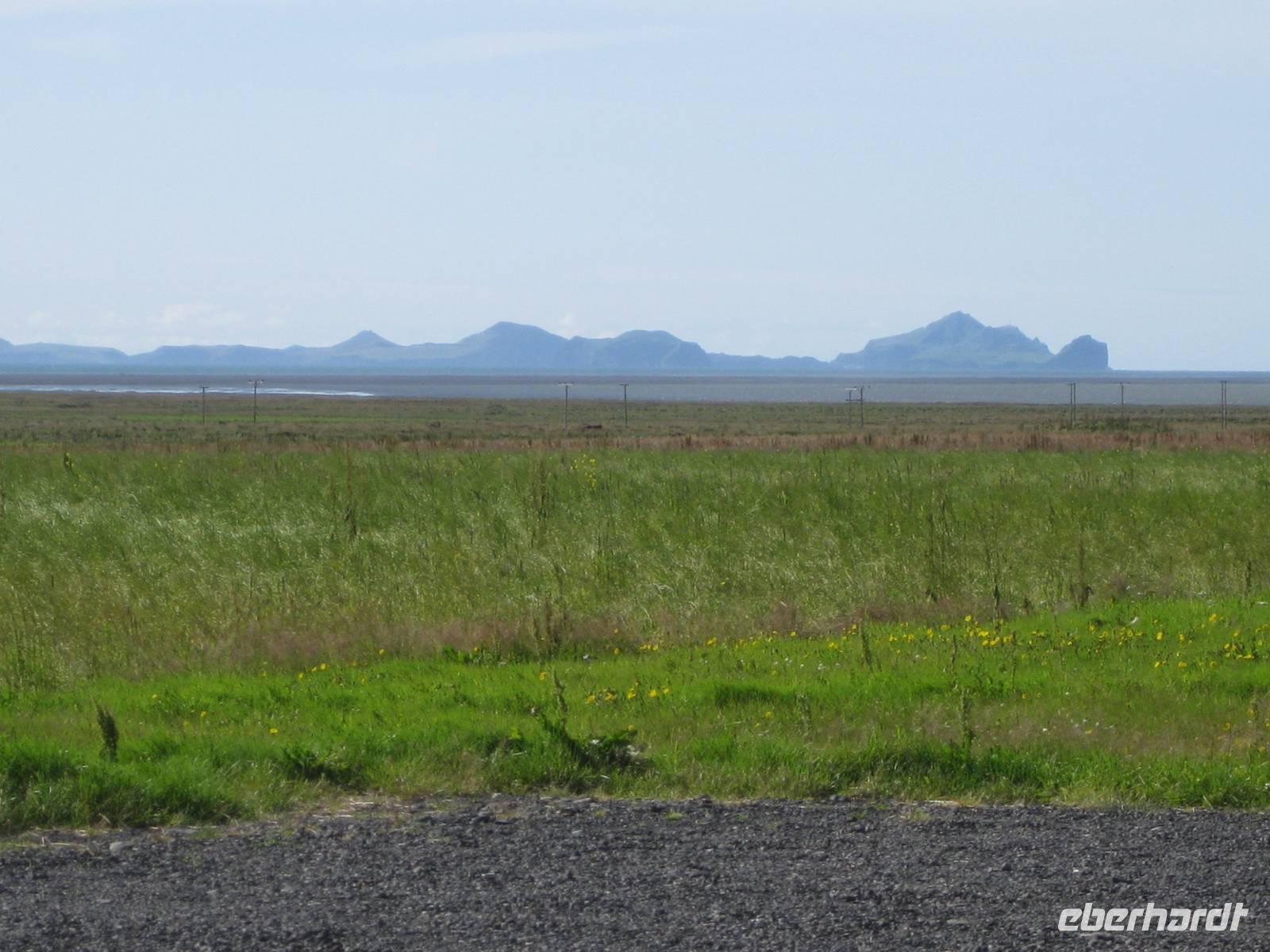 Dann führt uns die Fahrt am größten Talgletscher Europas, dem Skeidararjökull vorbei, über riesige Sanderflächen, an riesigen Lavafeldern, die bei der „Dampfkatastrophe" 1873 entstanden sind, vorbei bis zu unserem Hotel „Katla - Höfdabrekka" kurz vor Vik. Auf der Fahrt sehen wir in der Ferne den Gletscher Myrdalsjökull, der den Vulkan Katla beherbergt.