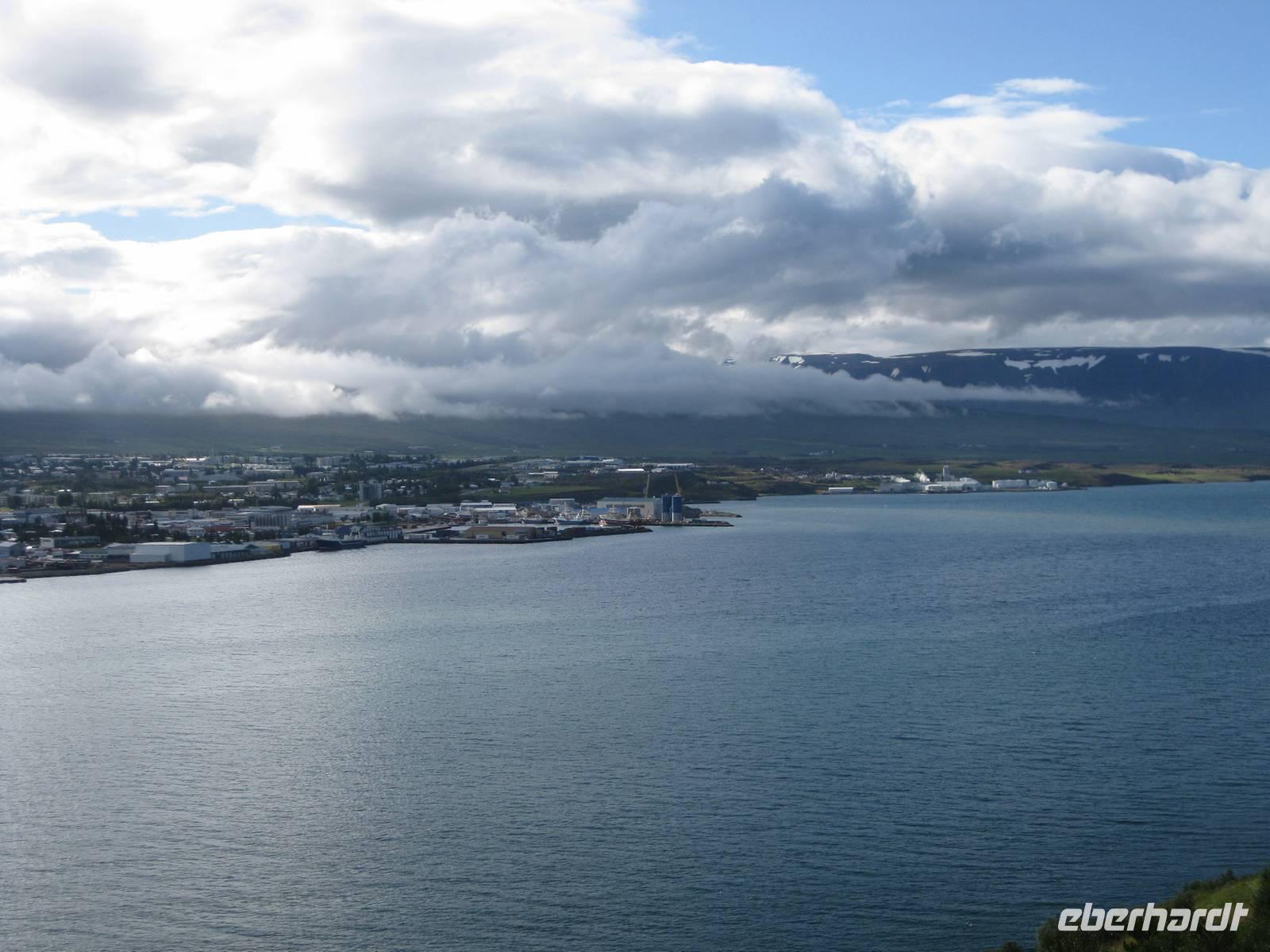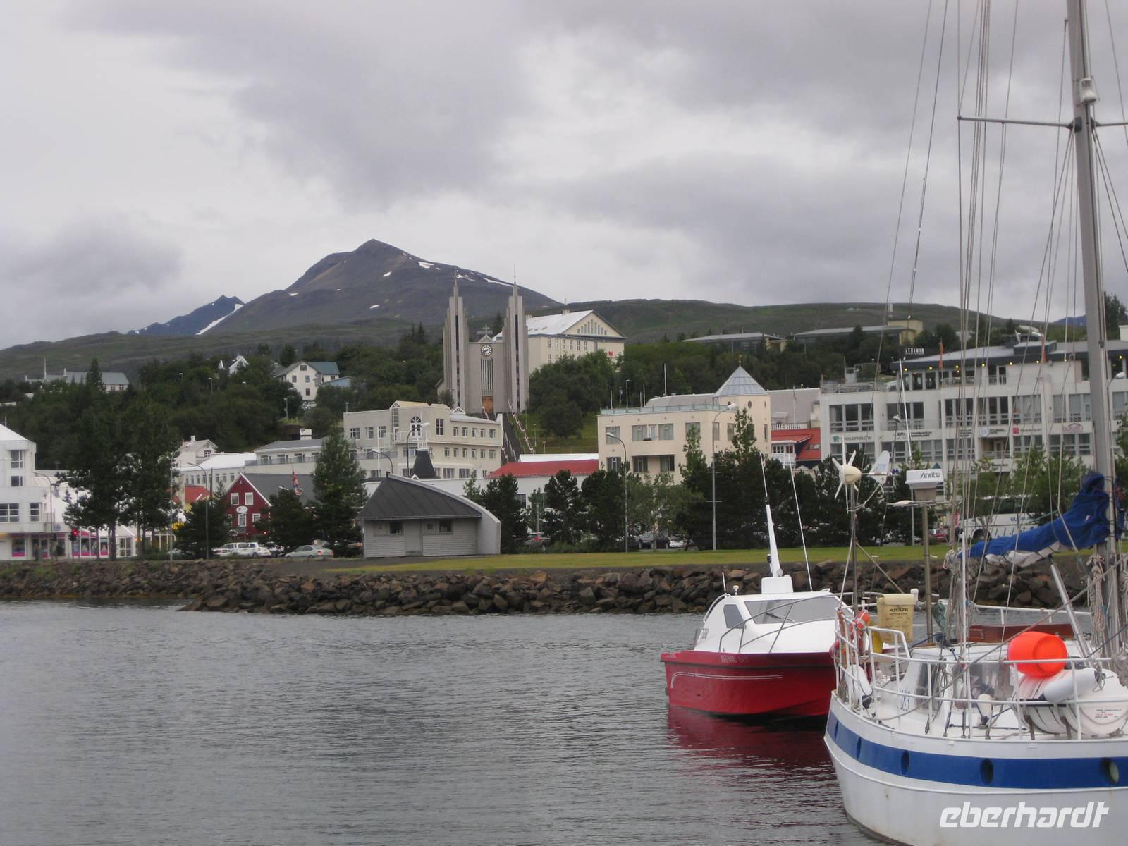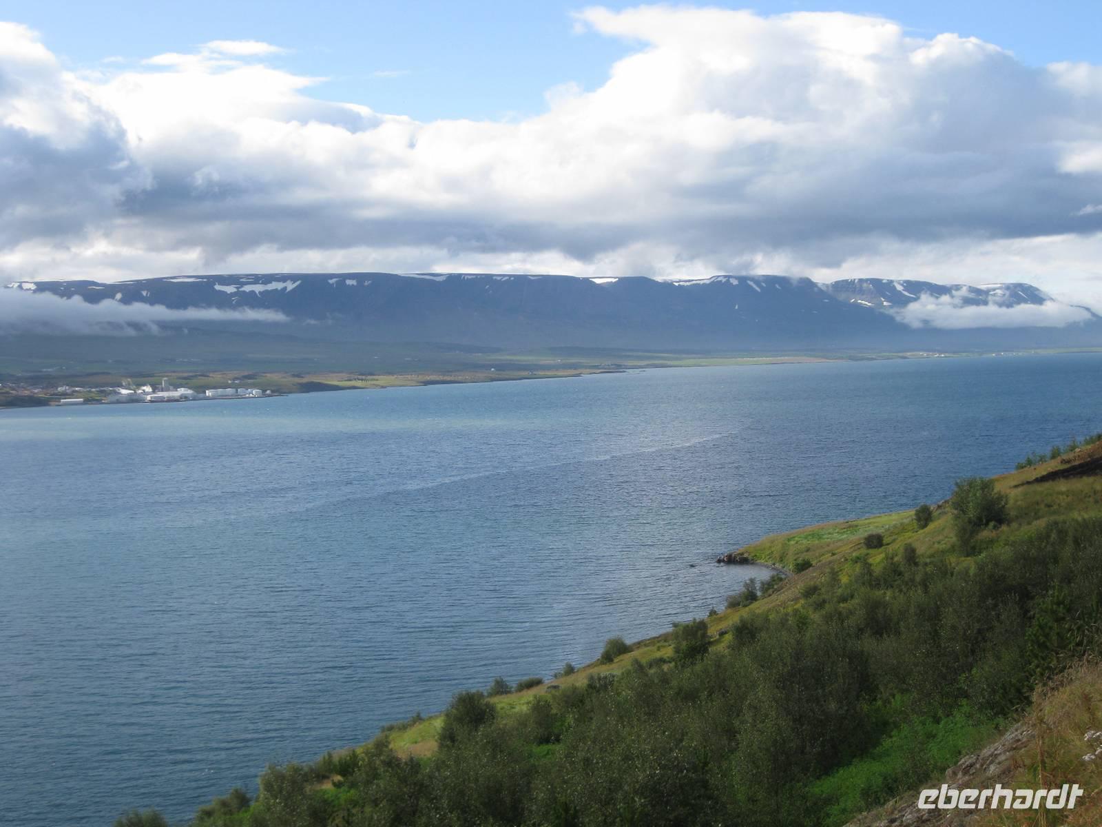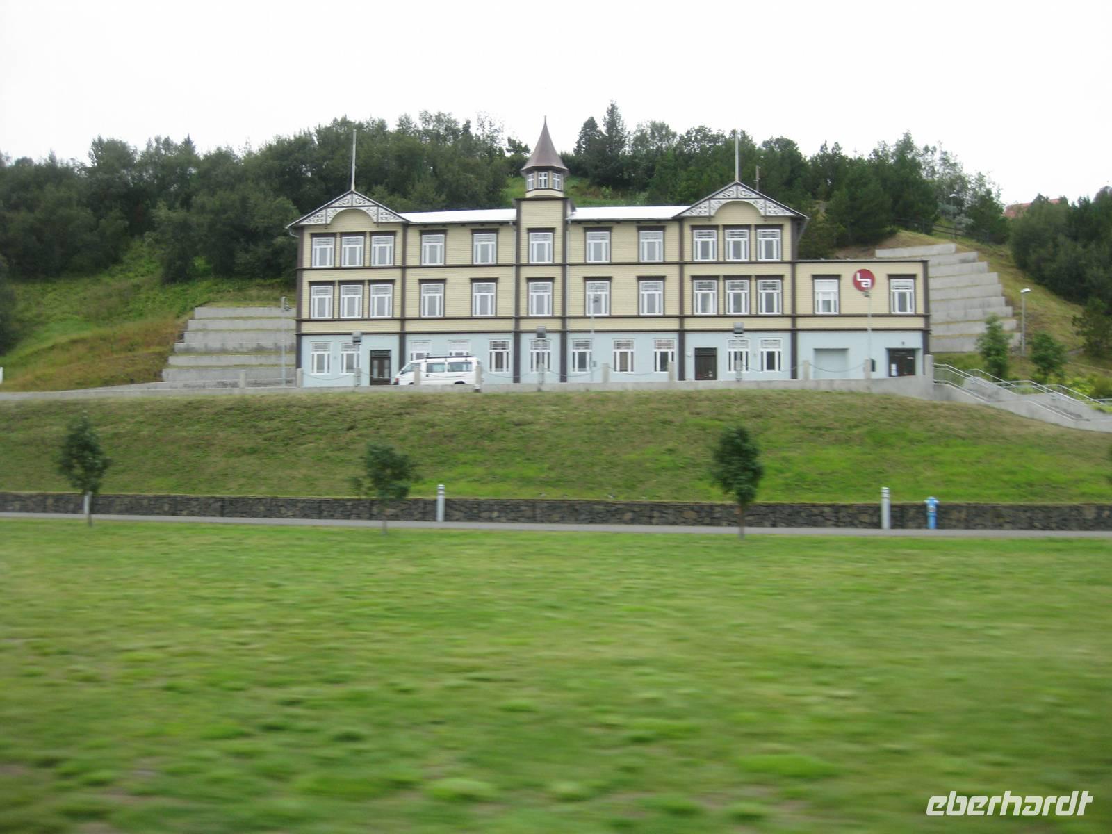 Am späten Nachmittag setzen wir unsere Fahrt fort und treffen dann bald in Akureyrj am Eyjafjördur (Inselfjord) ein. Wir beziehen unser Hotel, eines der „Edda-Hotels", die es nur im Sommer in Island gibt. In der anderen Zeit sind das Schulen mit Internaten. Zum Abendessen erwartet uns im Hotel ein sehr leckeres und reichhaltiges Buffet.