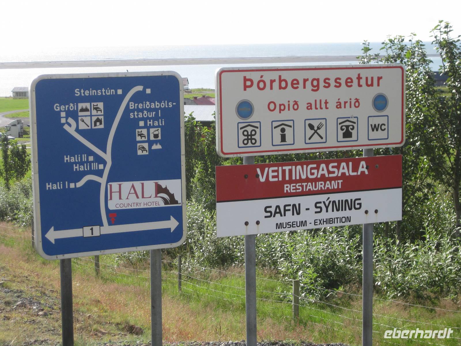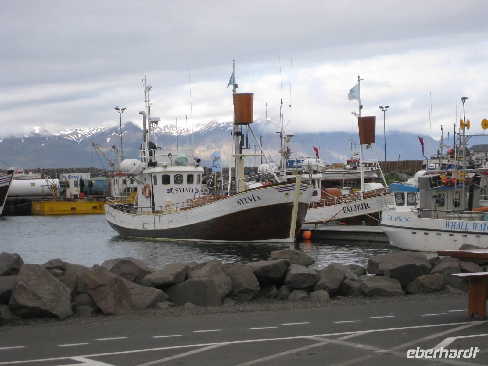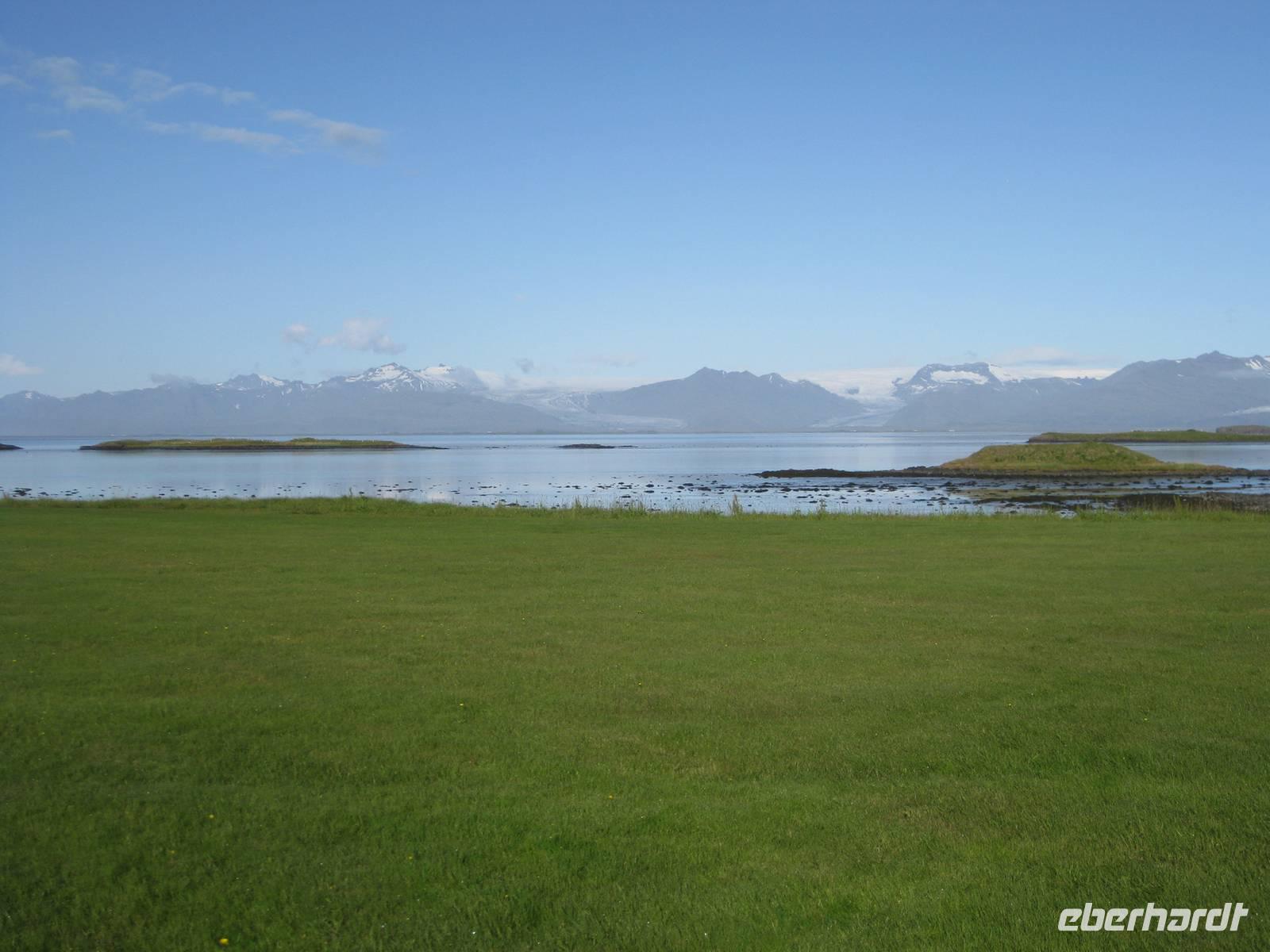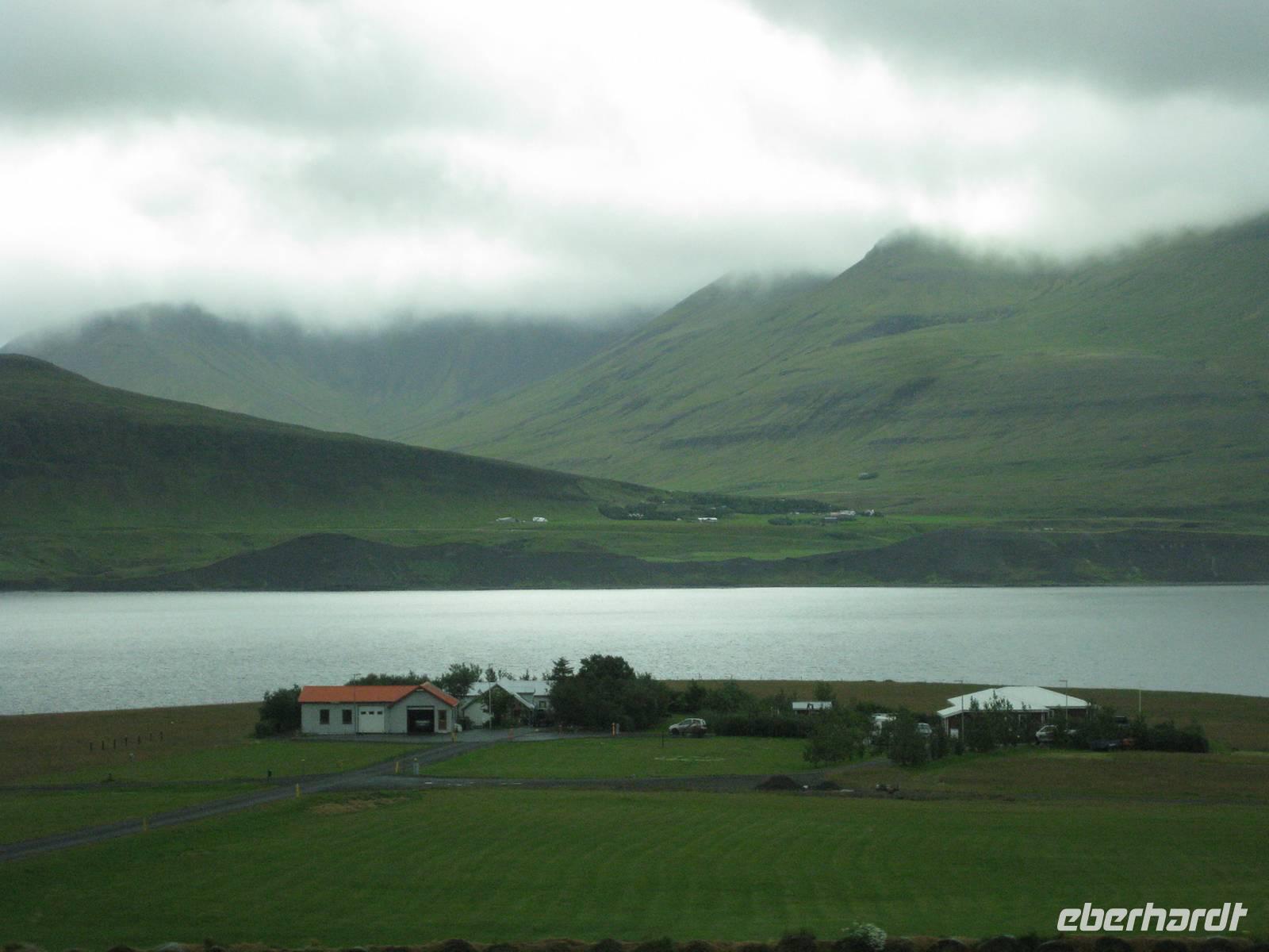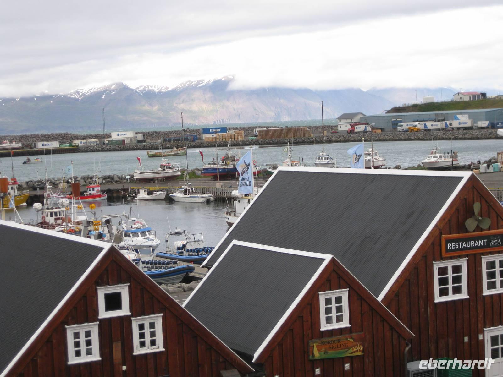 Am späten Nachmittag setzen wir unsere Fahrt fort und treffen dann bald in Akureyrj am Eyjafjördur (Inselfjord) ein. Wir beziehen unser Hotel, eines der „Edda-Hotels", die es nur im Sommer in Island gibt. In der anderen Zeit sind das Schulen mit Internaten. Zum Abendessen erwartet uns im Hotel ein sehr leckeres und reichhaltiges Buffet.