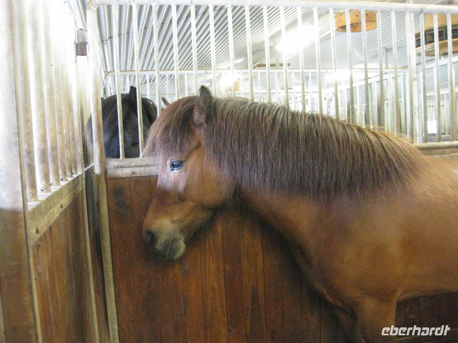 Weiter geht die Fahrt in Richtung Norden über die Hochebene Holtavörduheidi. In der Raststätte Stadarskali machen wir Mittagspause. Am Nachmittag besuchen wir im Norden den Pferdehof Flugumyri. Hier werden Islandpferde gezüchtet und ausgebildet. Der Pferdehof wird als Familienbetrieb geführt. Alle Mitglieder der Familie, vom Ältesten bis zum Jüngsten, sind beteiligt. Wir erfahren vom Hausherrn sehr viel Interessantes über die Islandpferde. Wir dürfen die Ställe besichtigen und eine kleine Vorführung der Pferde sehen. Alle sind begeistert.