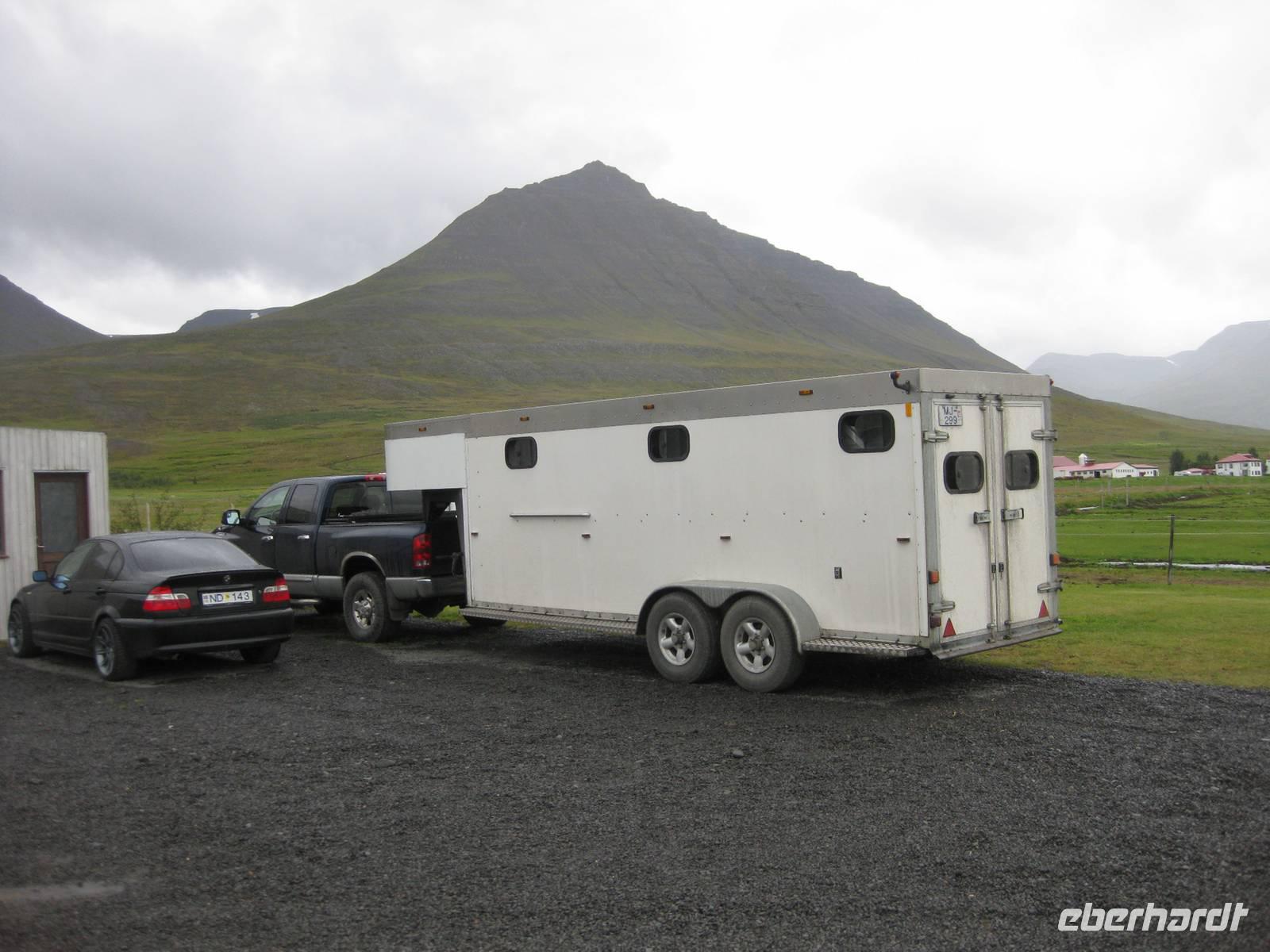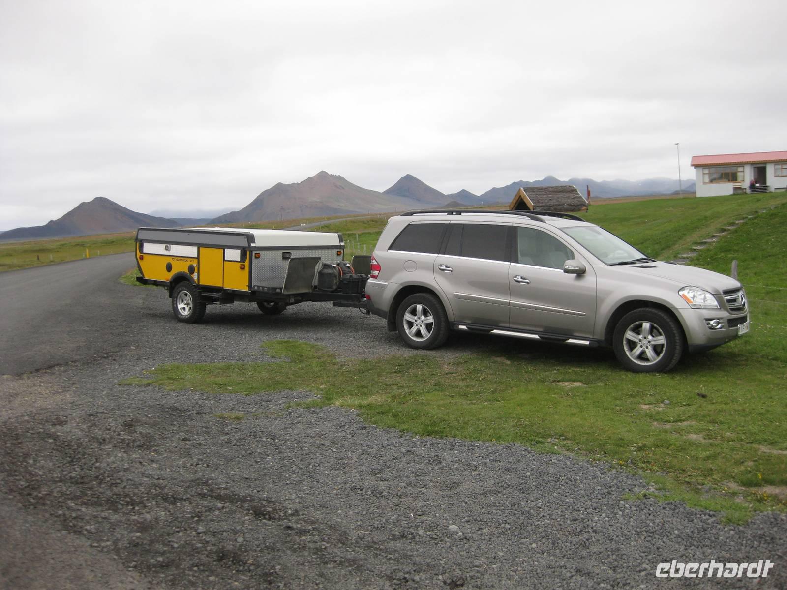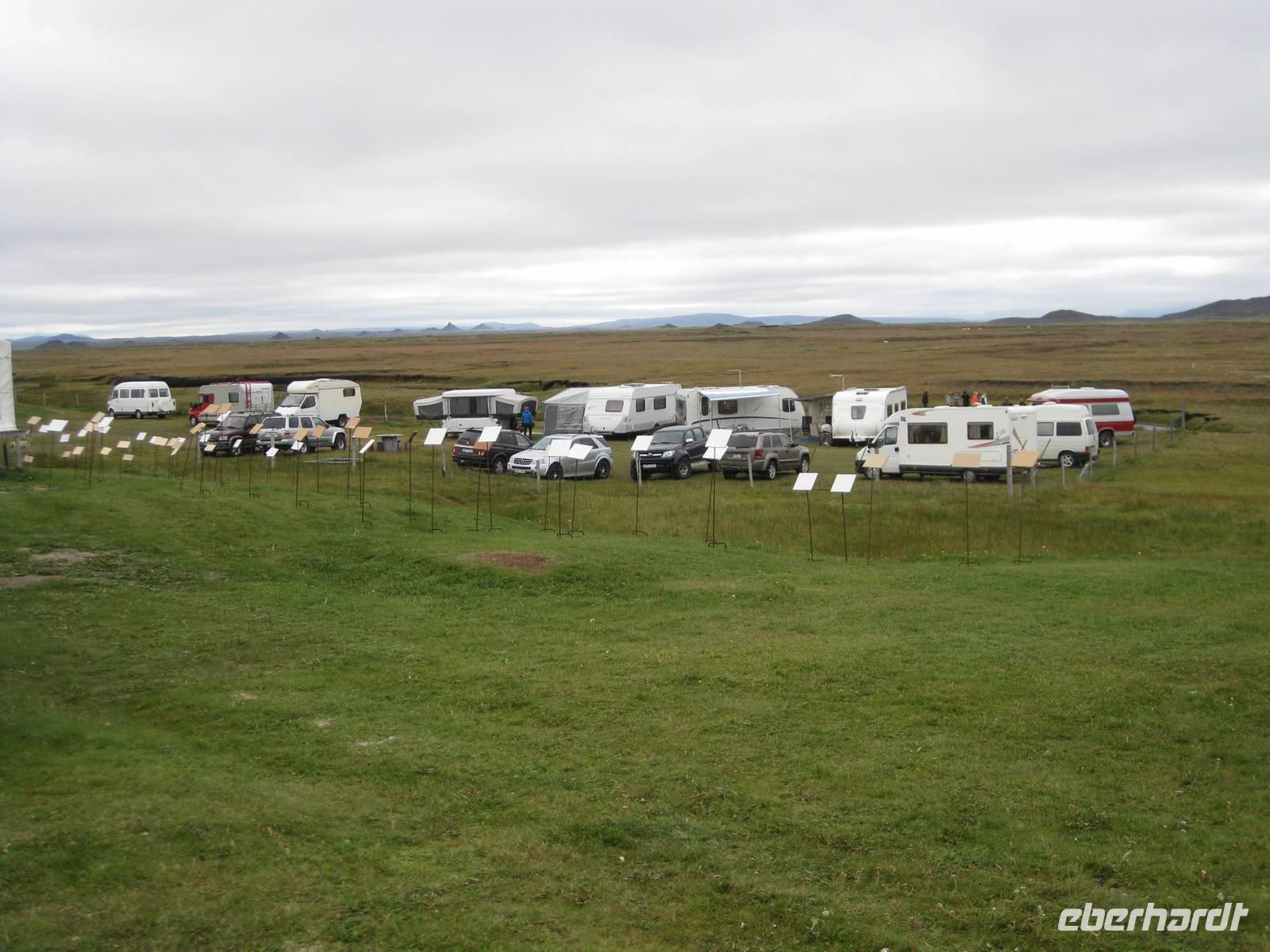 Am späten Nachmittag erreichen wir einen Bauernhof, auf dem sich auch ein Cafe befindet. Wir kehren ein, trinken Kaffee und genießen frischen selbstgebackenen Kuchen. Hier wird heute gerade ein Sommerfest gefeiert und da sind auch viele Isländer da. Die meisten von ihnen übernachten in Ihren Wohnwagen.