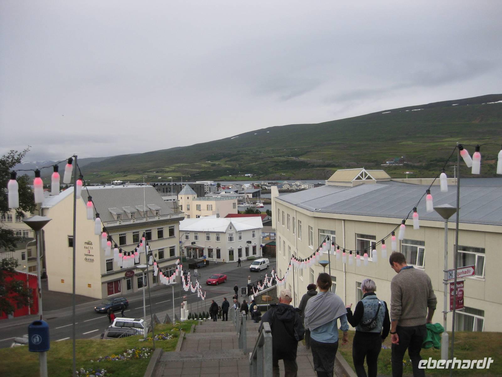 Nach dem Abendessen machen wir noch einen Spaziergang durch das Städtchen Akureyri.