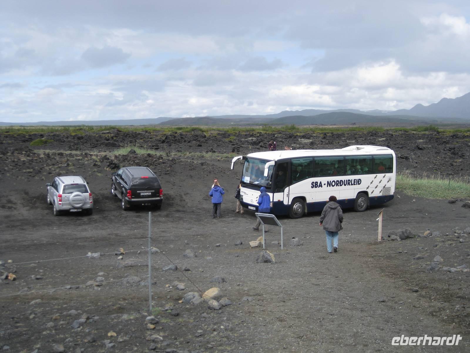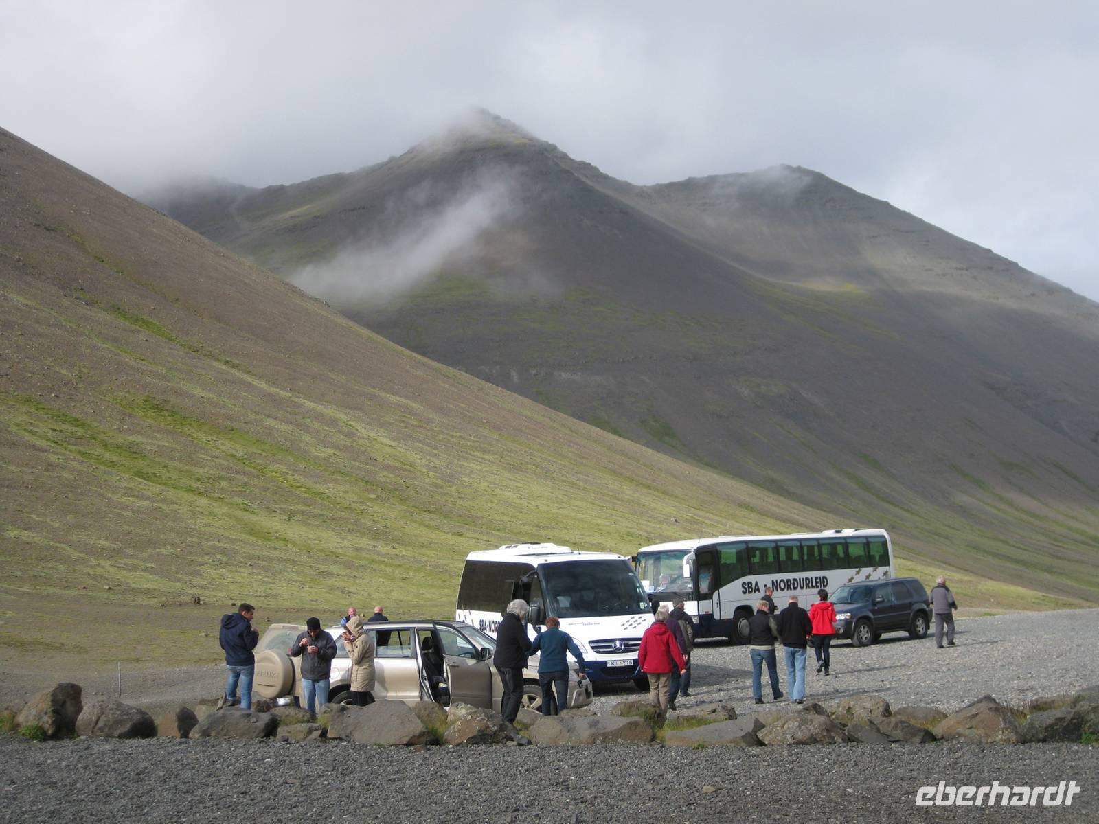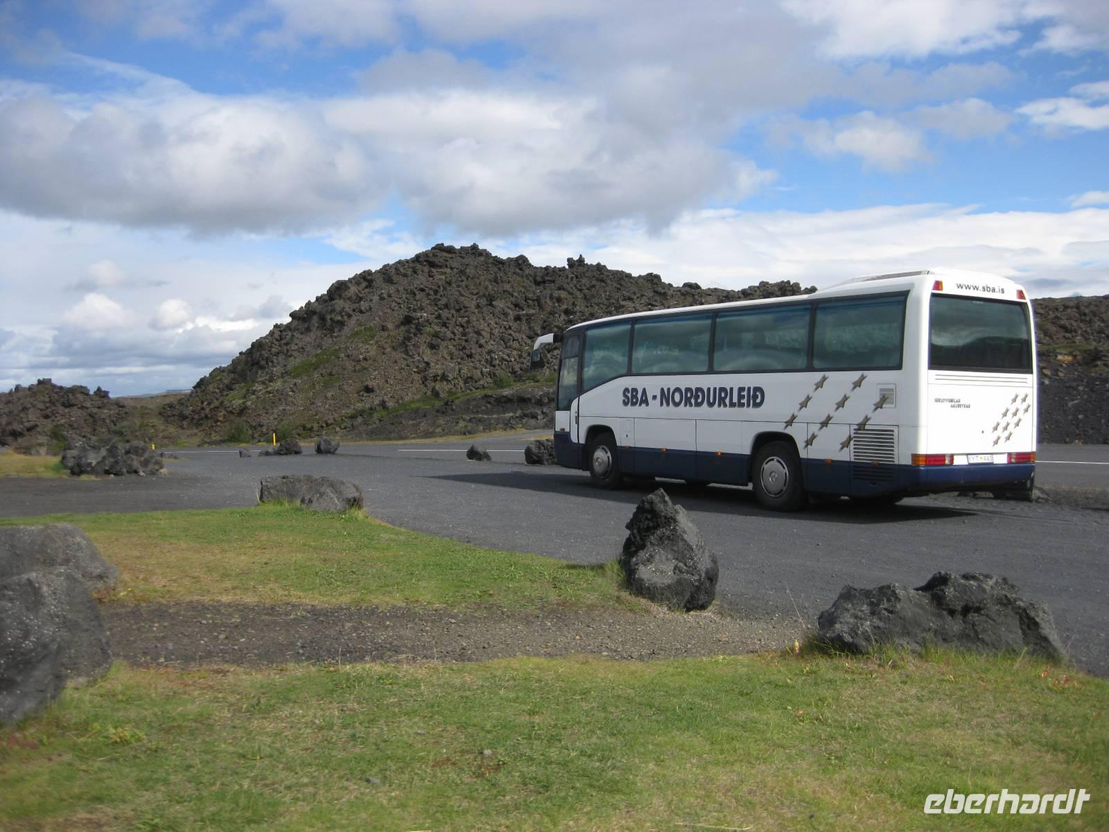Nachdem wir uns bei einem sehr reichlichen Frühstück gestärkt haben, starten wir zu unserem Ausflug in das Myvatn-Gebiet. Ab heute ist Siggi unser Fahrer. Er war schon des öfteren mit Eberhardt-Reisegruppen unterwegs.