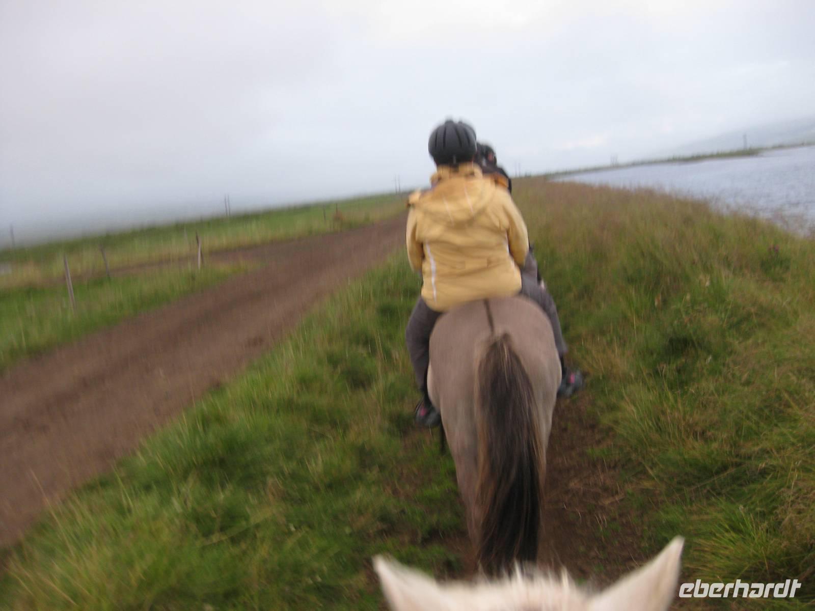 Nach dem Abendessen start ich zusammen mit zwei von unseren Damen zum Reitausflug mit den Islandpferden. Wir werden um 20.00 Uhr am Hotel abgeholt. Auf dem Reiterhof besteigen wir die Pferde. Zuerst schaukelt es ganz schön. Wir gewöhnen uns schnell daran und ab geht der Ausritt. Die Pferde kennen schon den Weg und sie sind ganz geduldig mit uns unerfahrenen Reiterinnen - ein toller Abschluss des Tages.