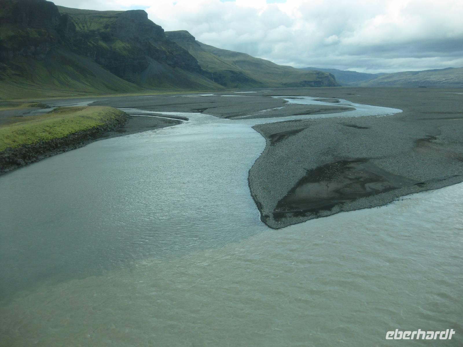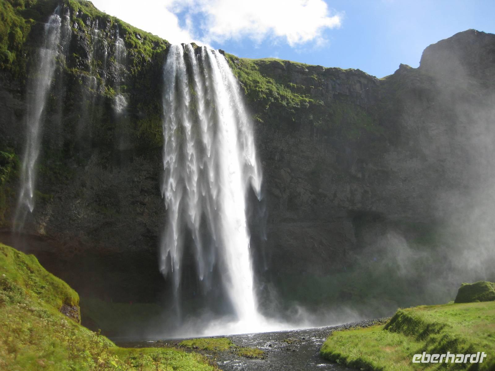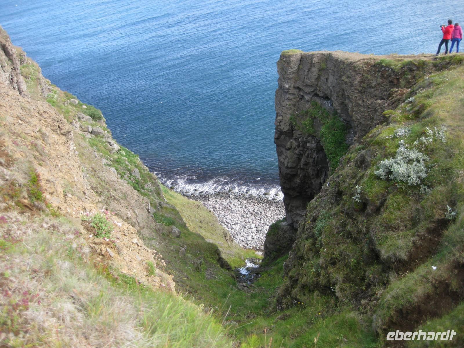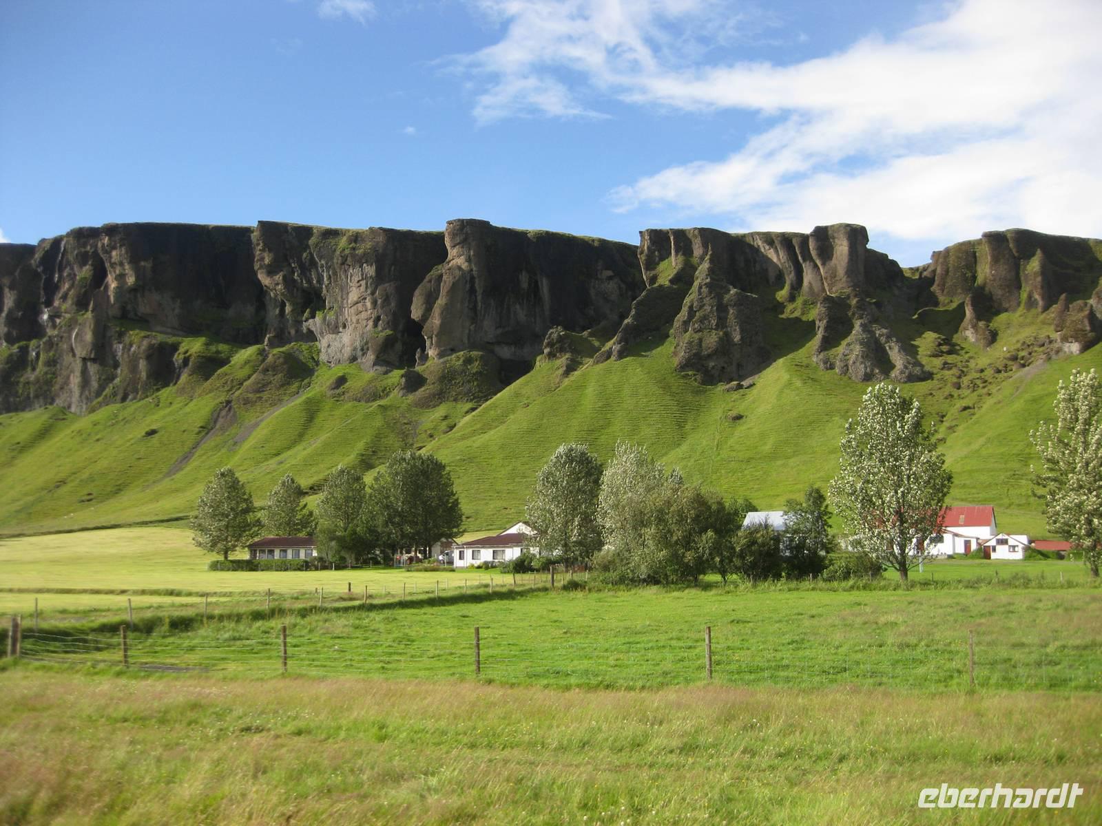 Dann geht die Fahrt weiter zur Halbinsel „Dyrholaey", Islands Südkap. Wir erleben einen grandiosen Blick auf die Gletscher Myrdal mit dem Vulkan Katla im Inneren und auf den „Eyjafjallajökull", der 2010 die Welt in Atem hielt. Von „Dyrholaey" aus hat man auch eine Superaussicht auf die schwarze Sanderküste und auf das markante, von der Brandung geschlagene Felsentor. Hier leben auch viele Seevögel, leider sind die Papageientaucher nicht da.