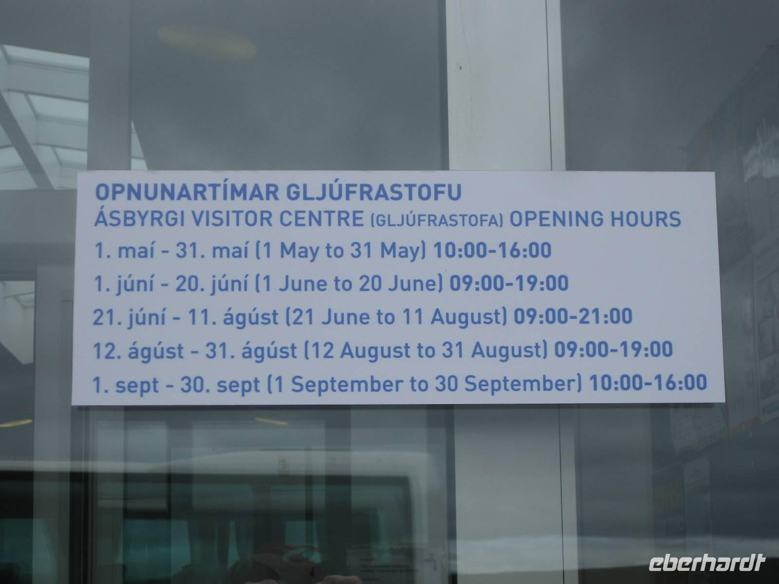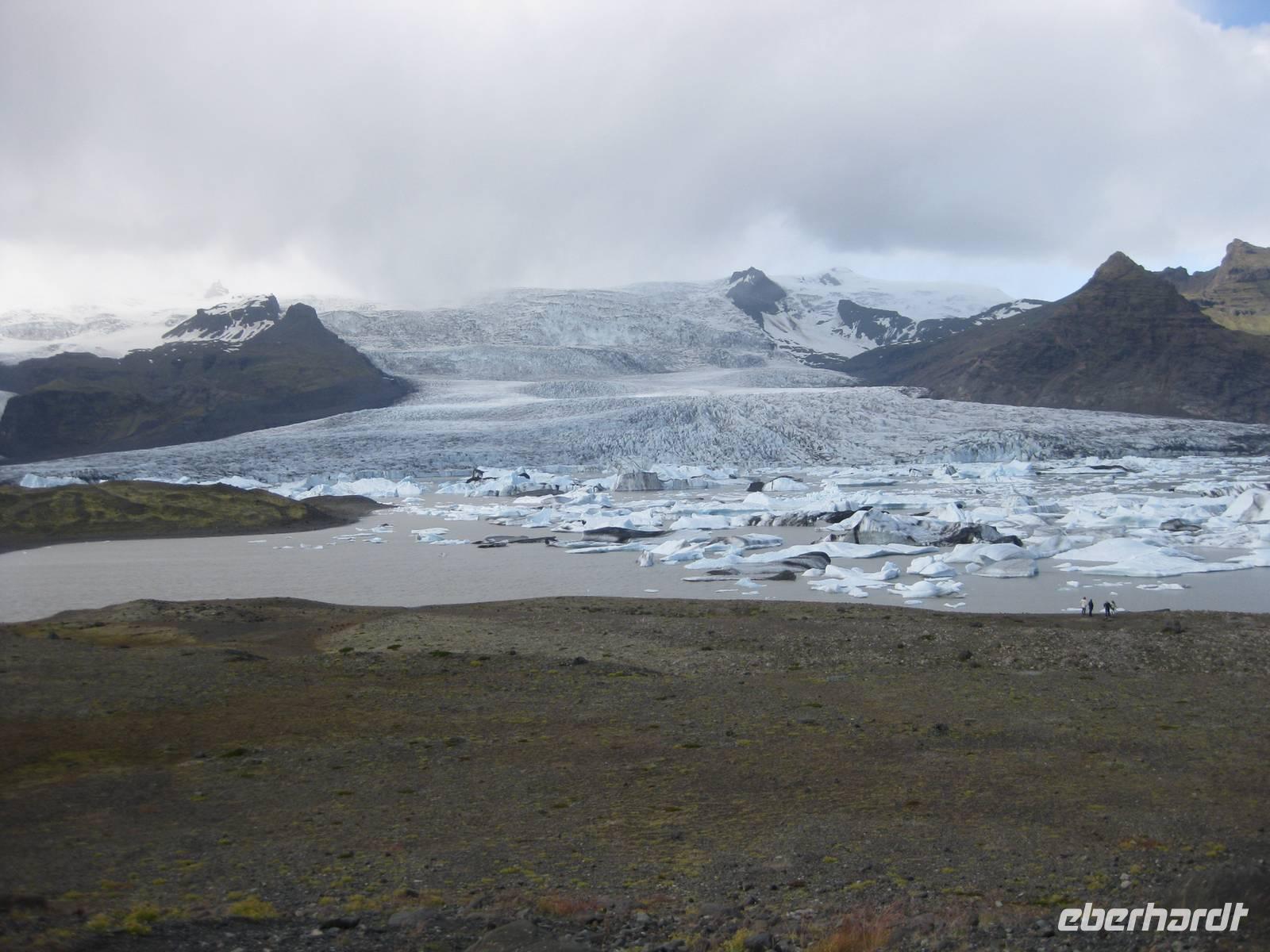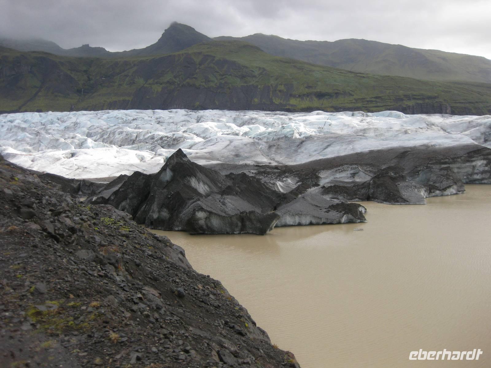 Auf unserer weiteren Fahrt besuchen wir noch mehrere Gletscherseen und fahren auch ganz dicht an eine Gletscherzunge heran. Nach der Mittagspause erreichen wir das Visitor Centre des Nationalparks Skaftafell. Hier machen wir noch einmal Stopp. Es gibt eine Filmdokumentation über den Vulkanausbruch im Jahr 1996, eine Ausstellung und viel Infomaterial. Bei schönem Wetter kann man von hier aus den höchsten Berg Islands, den vergletscherten Hvannadalshnukur mit seinen 2.119 Metern Höhe sehen.