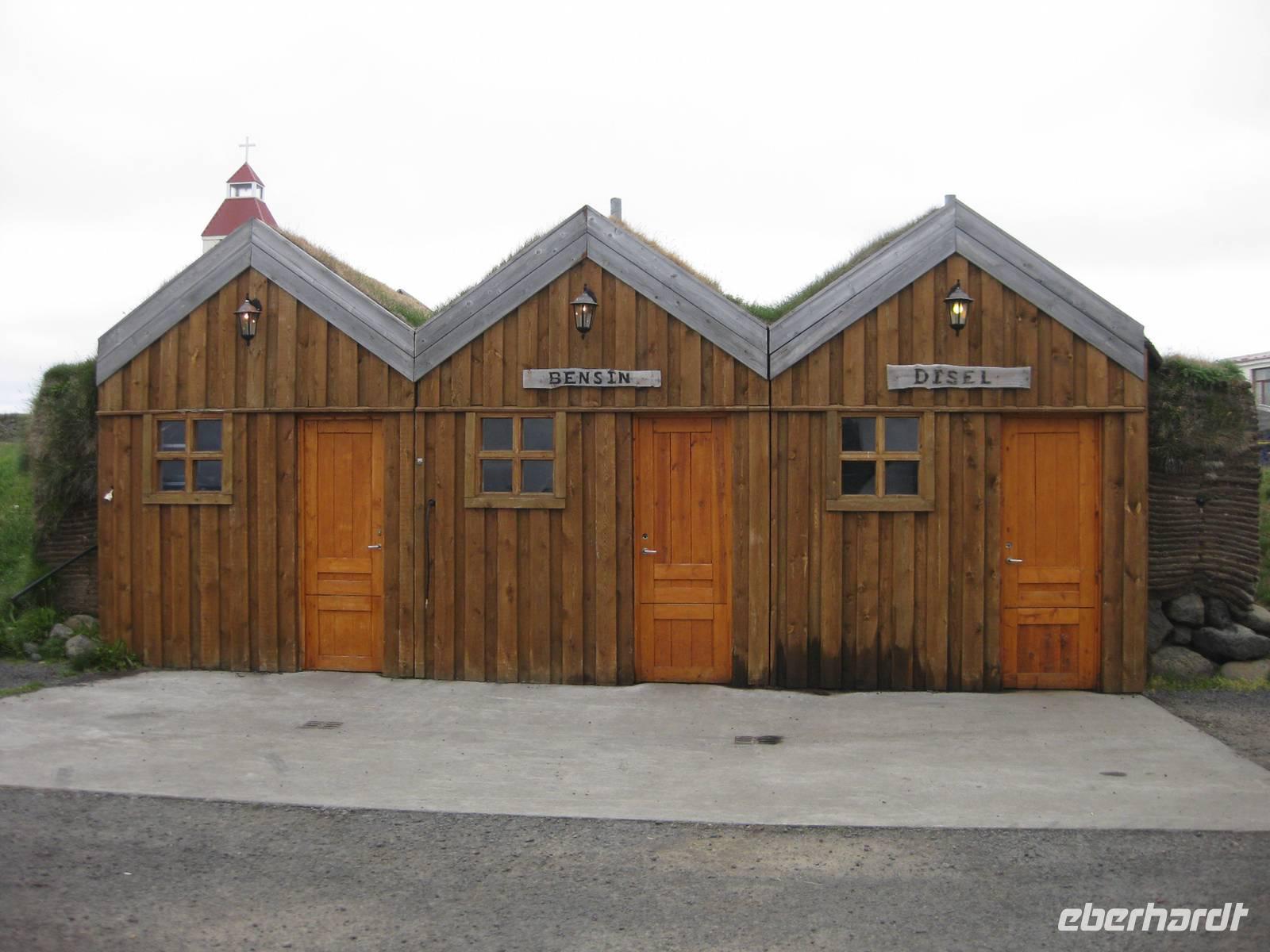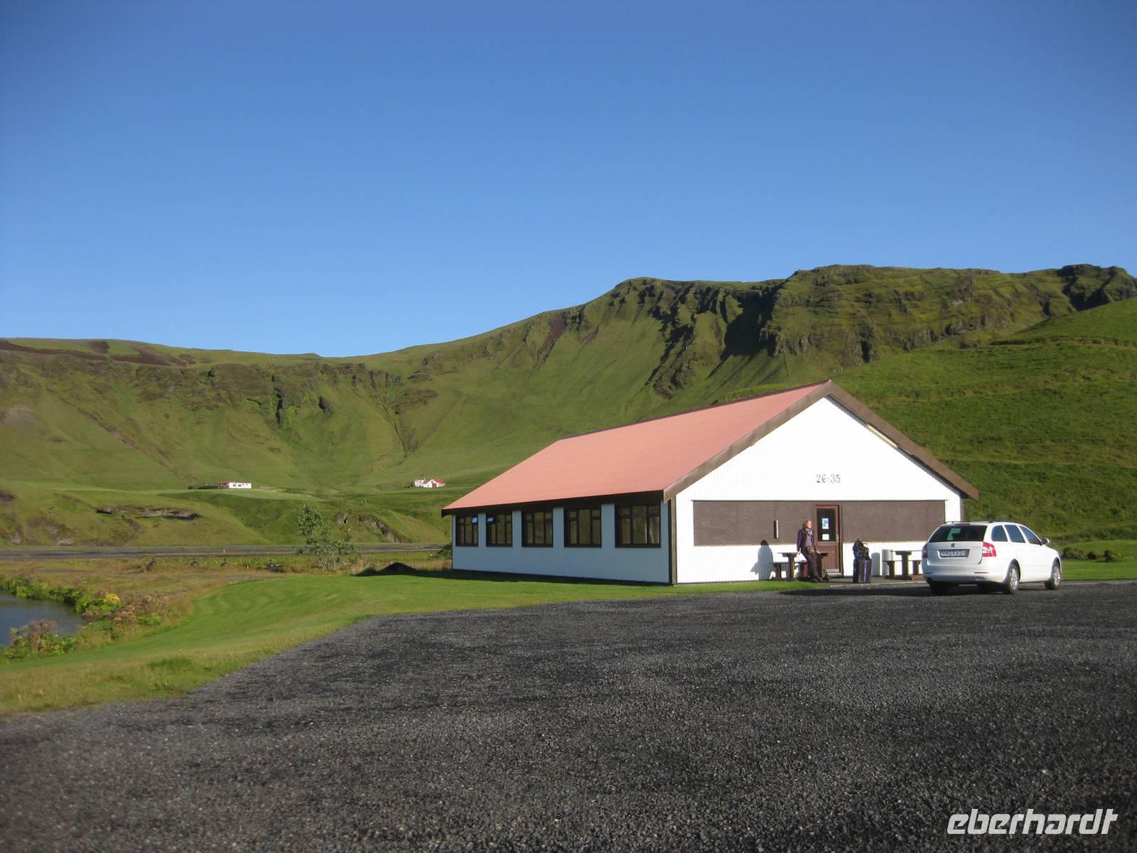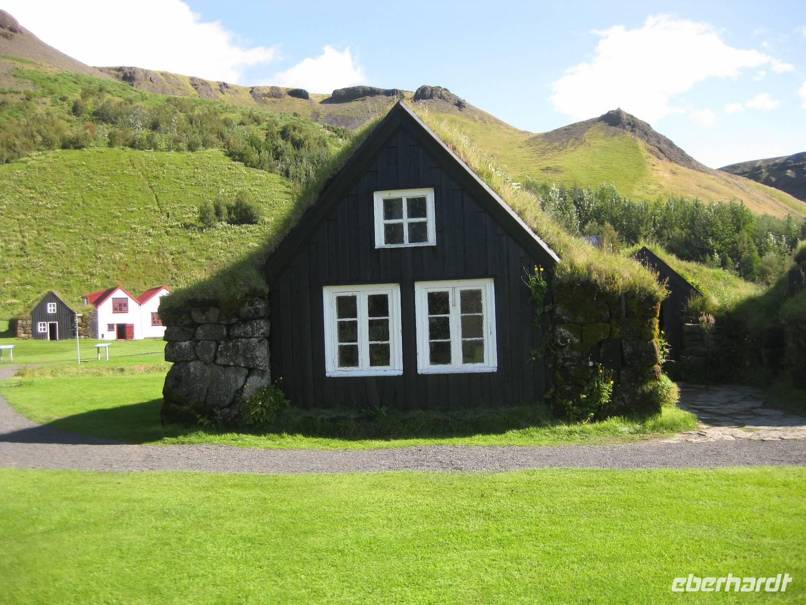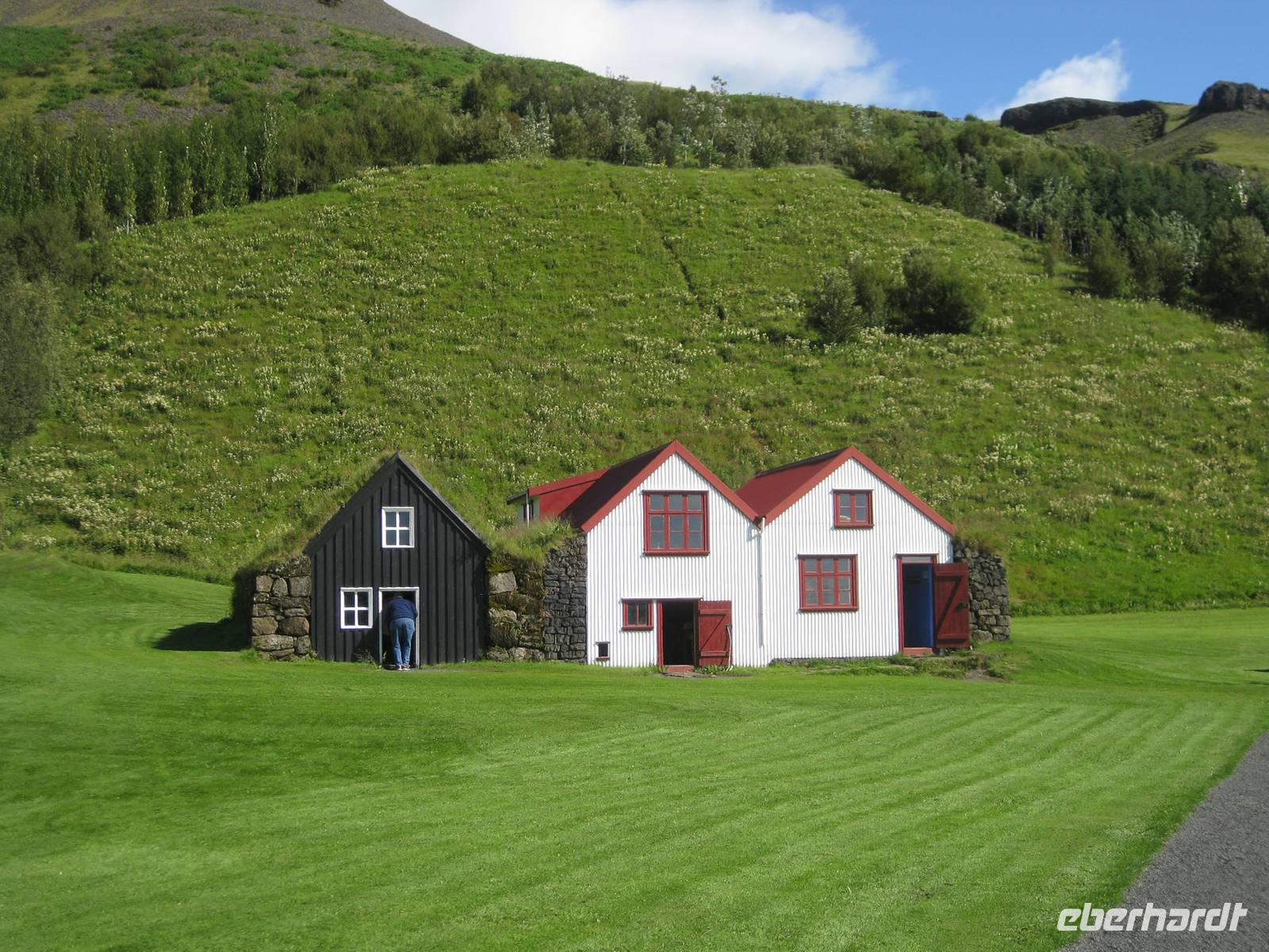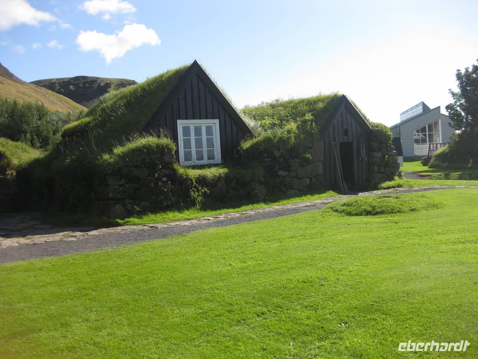 Unser nächstes Ziel ist das Heimatmuseum in Skogar. Wir lernen bei einer kleinen Führung durch das Museum die traditionelle isländische Kultur kennen. Im Freiluftteil des Museums können wir in die typischen mit Gras gedeckten isländischen Häuschen schauen, auch eine Schule und eine Kirche sind da. Und dann gibt es noch ein Technikmuseum .... Leider reicht unsere Zeit nur für einen Kurzbesuch.