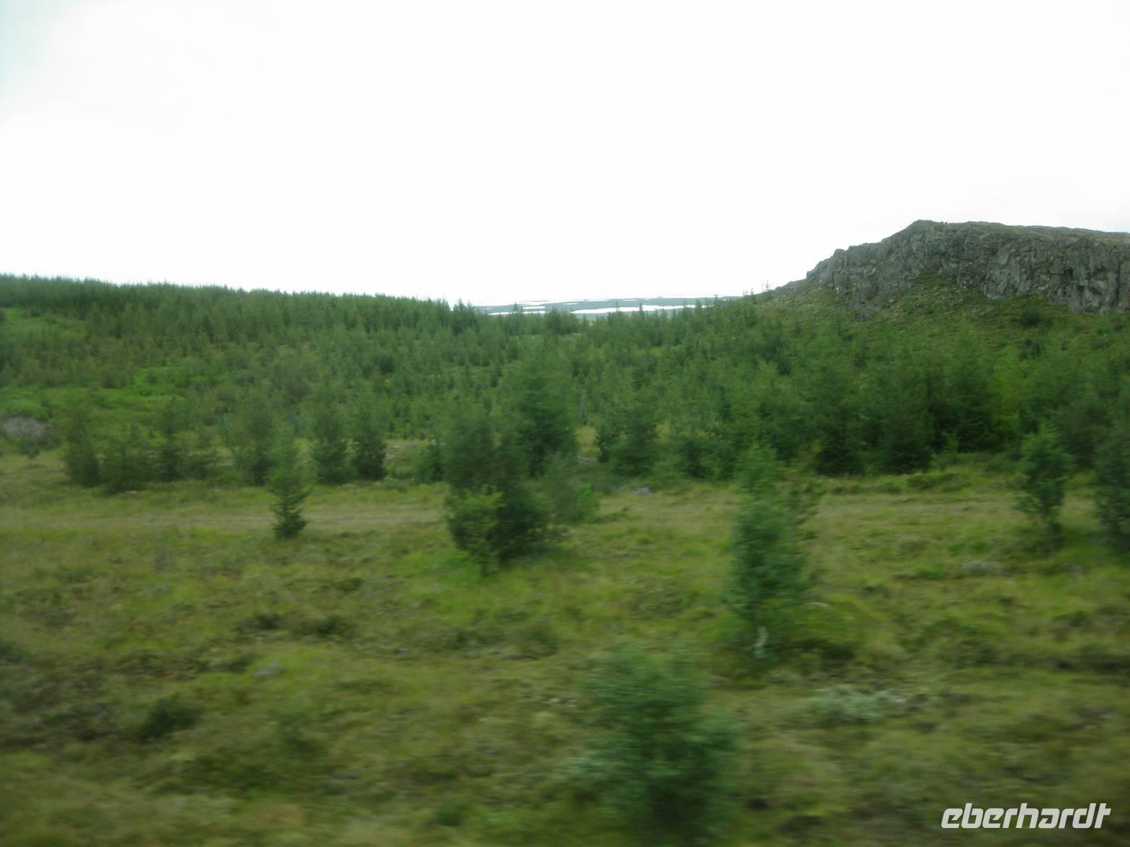 Die Fahrt durch das Gebiet um Egilsstadir führt uns durch eine für Island ungewöhnliche Landschaft - hier befindet sich ein kleiner Wald. Die Bäume wurden extra angepflanzt und haben sich gut entwickelt.