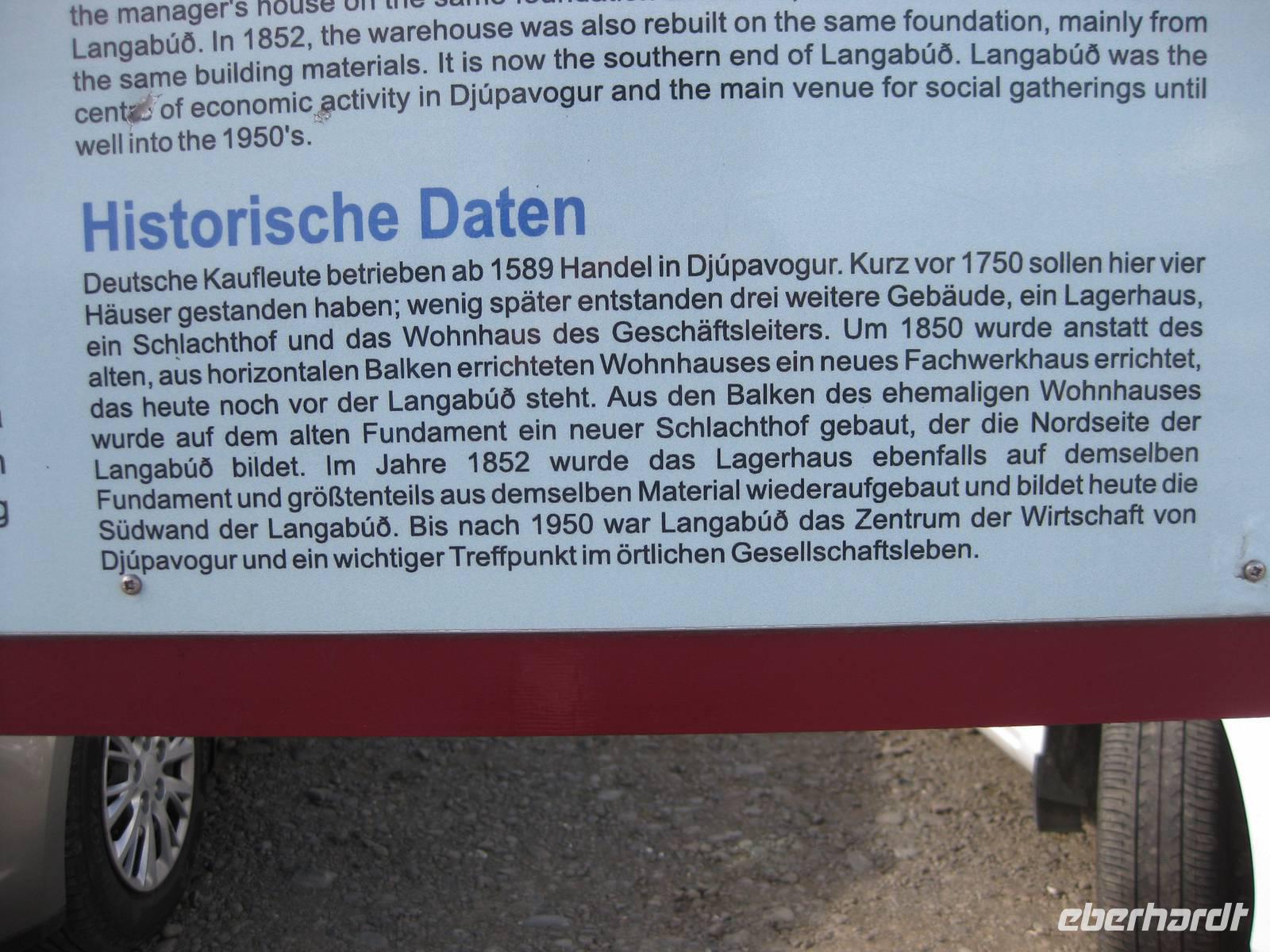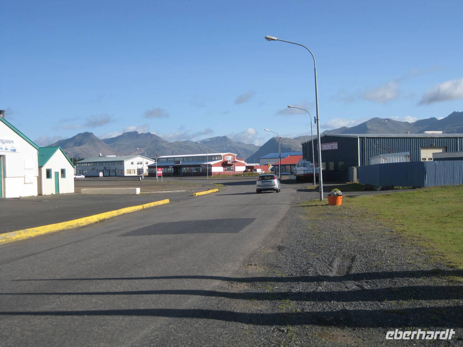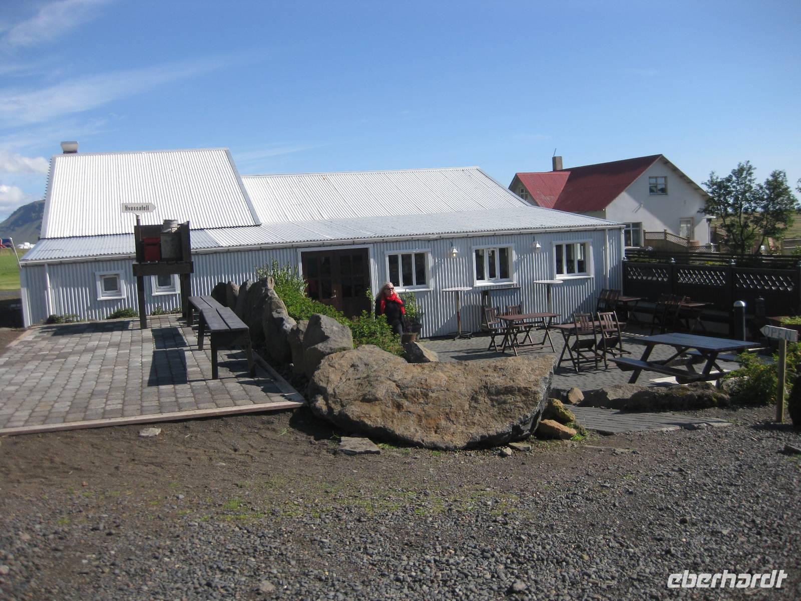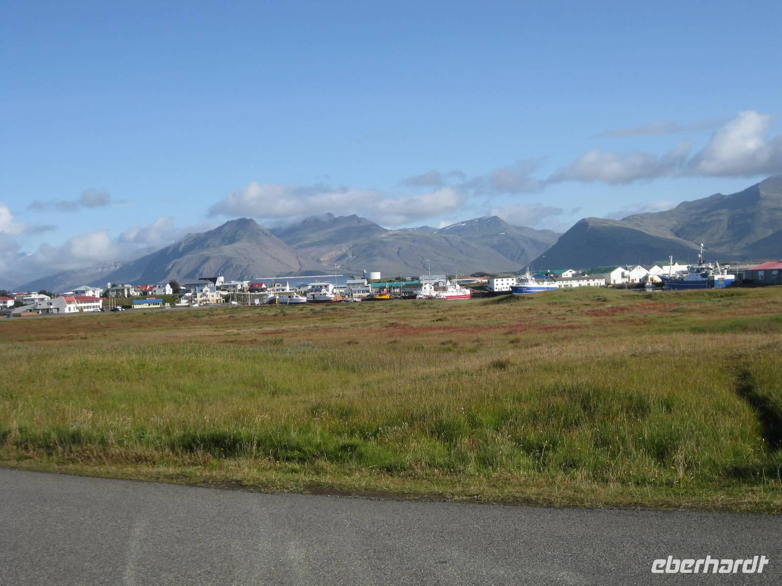In Djupivogur machen wir Mittagspause. In der „Langabud" gibt es eine typische isländische Suppe, Lachsbrote und frische Kuchen und Torten. Djupivogur liegt direkt am Berufjördur.