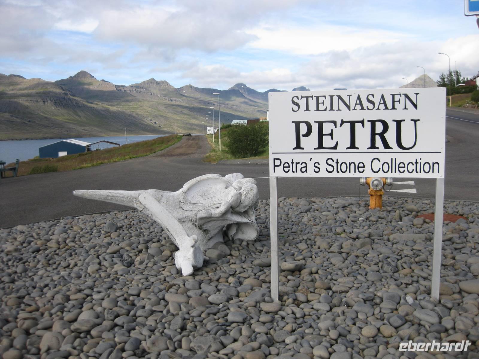 Dann kommen wir an die Ostküste mit ihren tiefblauen Fjorden und den schroffen Bergen. Wir besuchen in Stödvarfjördur „Petras Steinhaus" mit einer einmaligen, riesigen Steinsammlung und einem wunderschönen Garten mit vielen Blumen. Auch das Wohnhaus steht zur Besichtigung offen.