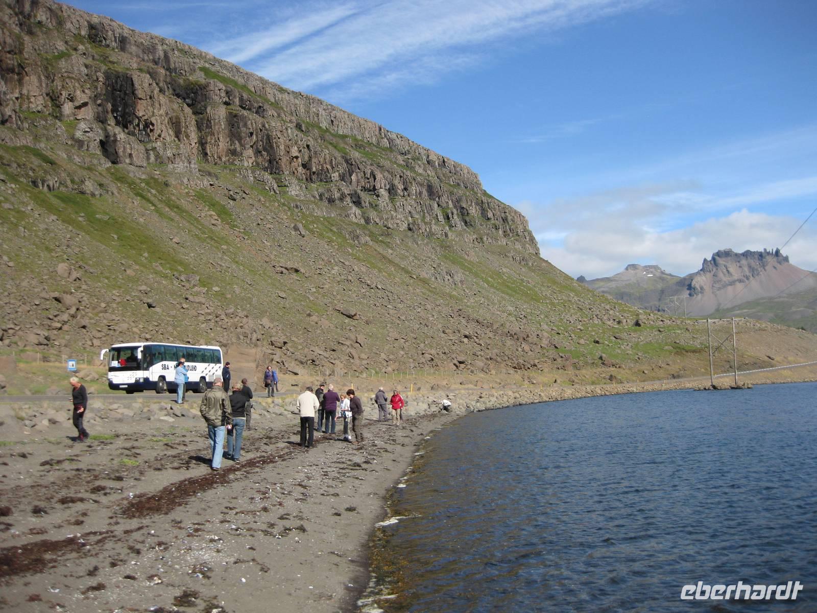 Nach dem Frühstück starten wir zu unserer heutigen Reise entlang der Ostfjorde. Es ist eine Fahrt durch eine eindrucksvolle Landschaft an der Ostküste. Bestes Wetter ist unser Begleiter, so sieht alles noch viel eindrucksvoller aus.