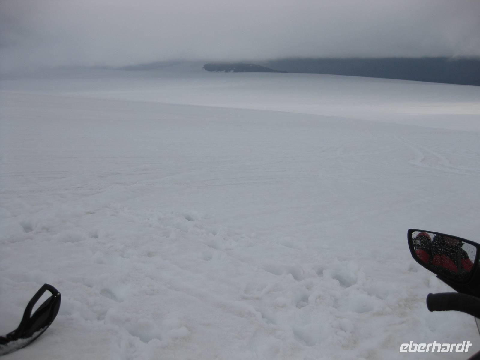 Nach einer kurzen Pause zum Umziehen werden wir zu unserem fakultativen Ausflug auf den Gletscher Vatnajökull mit Jeeps abgeholt. Fast alle fahren mit auf den Gletscher. Schon allein die Fahrt hinauf ist faszinierend. Oben angekommen, teilen wir uns in zwei Gruppen auf. Die eine Gruppe fährt mit Snowmobiles über den Gletscher und die andere Gruppe mit Jeeps. Die Snowmobile-Fahrer bekommen entsprechende Kleidung - Anzüge, Helme, Stiefel und sehen dann wie Astronauten aus. Nach einer kurzen Einweisung dürfen wir die Snowmobiles selbst fahren. Die Jeepfahrer sind schon gestartet. Die Jeeps werden von den Gletscher erprobten Fahrern des Unternehmens gesteuert. Wir alle treffen uns auf dem Gletscher zu einem Gruppenfoto. Alle sind fasziniert von dem Ausflug über den Gletscher Vatnajökull. Dann werden wir wieder zu unserem Hotel in Höfn zurück gefahren.