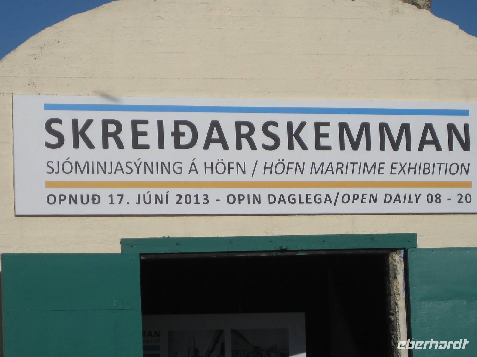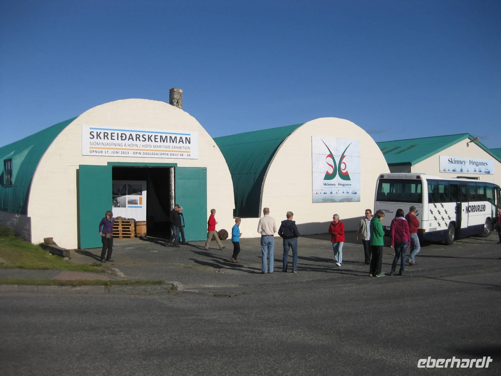 Nach dem Frühstück starten wir zu unserem „Gletschertag". Erst einmal machen wir noch eine kleine Runde durch Höfn. Rosa und Siggi zeigen uns das kleine Fischer-Städtchen. Wir besuchen das örtliche Museum über die Geschichte des Fischfangs in der Region. Sehr anschaulich wird die schwere Arbeit der Fischer dargestellt. Dann fahren wir auf der Straße 1 weiter, auf der linken Seite die Küste mit dem Meer und auf der rechten Seite die Gletscherzungen. Natürlich machen wir einige Fotostopps.