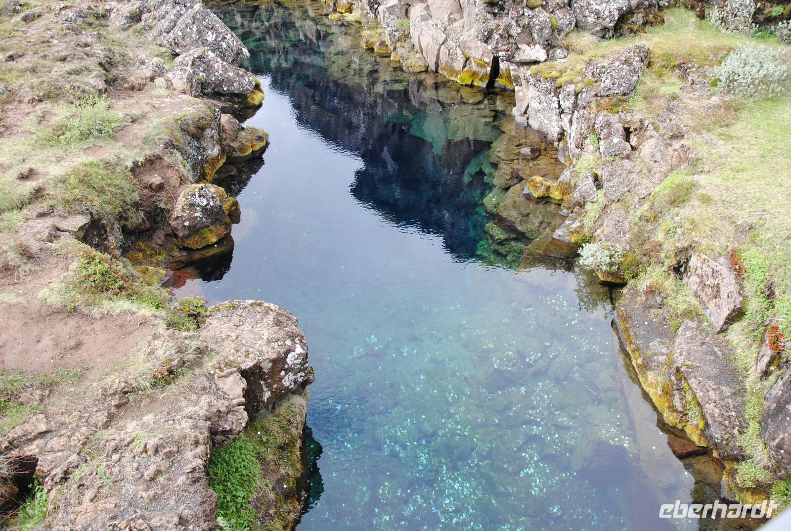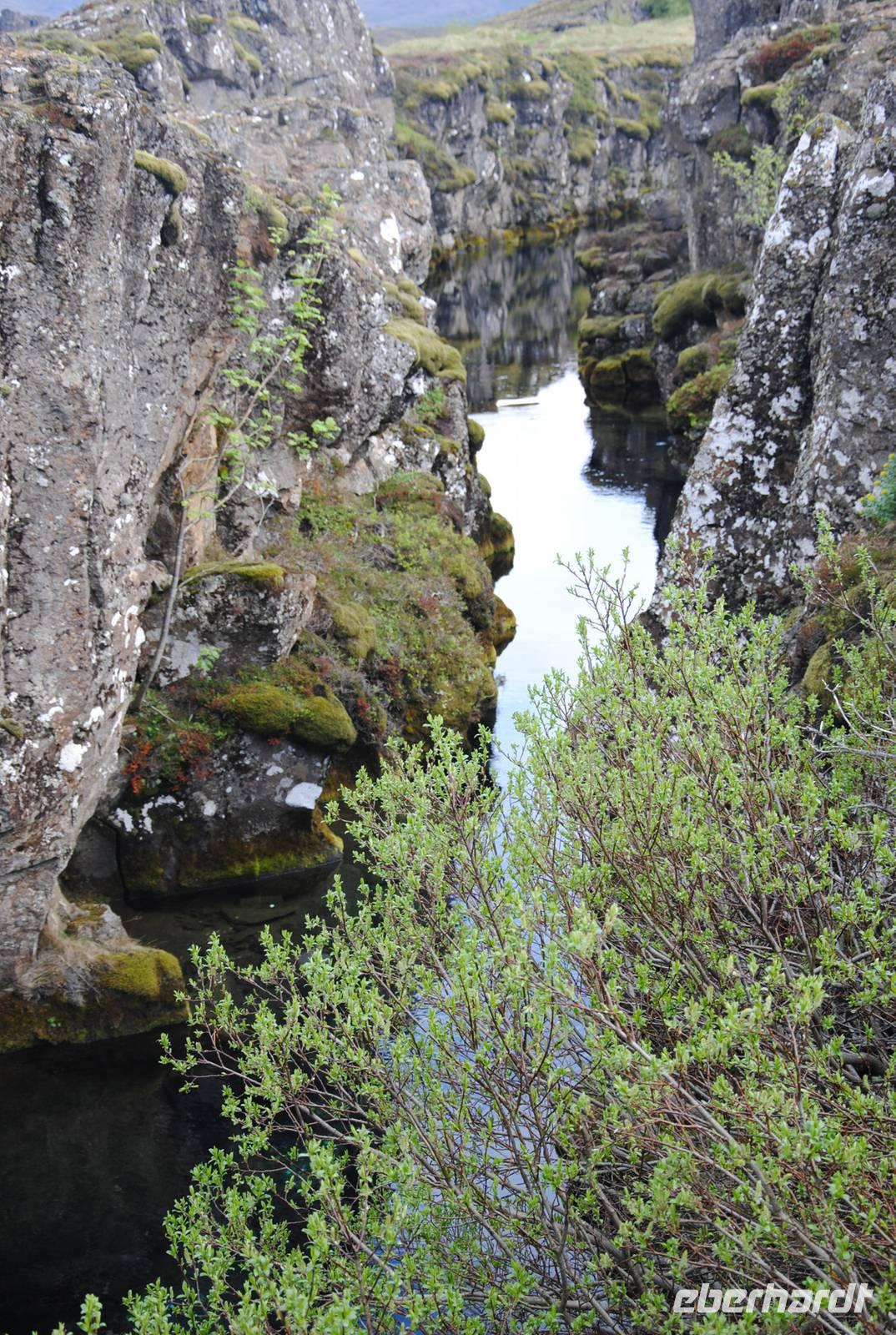 Hier schufen die Wikinger bereits 930 n. Chr. das weltweit erste demokratische Parlament - leider sind von den sichtbaren Resten der damaligen Zivilisation nicht mehr viel zu sehen. Aber dafür wurden wir mit einem atemberaubenden Naturerlebnis entschädigt. Durch die auseinanderdriftenden Kontinentalplatten Amerikas und Eurasiens entstand eine breite Senke. Sie war von malerisch gewundenen mit Moos bewachsenen Lavaströmen, Wasserläufen u. bizarren Felsspalten durchzogen. Da wurden die Spaziergänge durch diese Landschaft zum Hochgenuss.