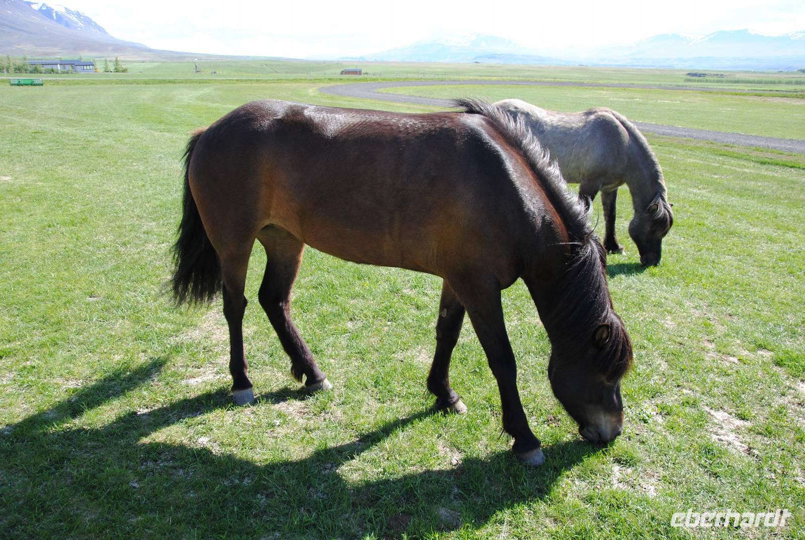 Am Nachmittag machten wir auf dem Pferdehof Flugumyri dann die Bekanntschaft mit den isländischen „Vierbeinern". Wir erfuhren viel Wissenswertes über die Besonderheit der robusten Islandpferde und deren Zucht.