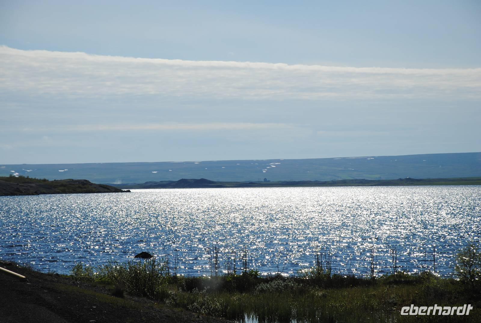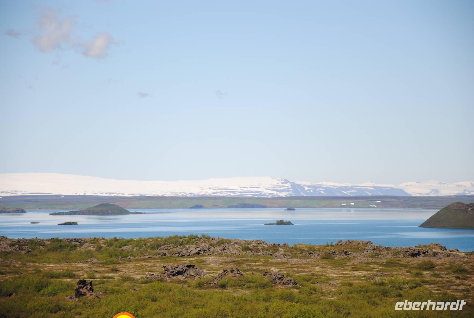 Heute verließen wir die Region Akureyri und unsere Reise führte uns zunächst wieder zum Myvatnsee. Bei einem kurzen Fotostopp mit etwas weniger Mücken konnten wir nochmals die wunderbare Landschaft für unsere Fotoalben festhalten.