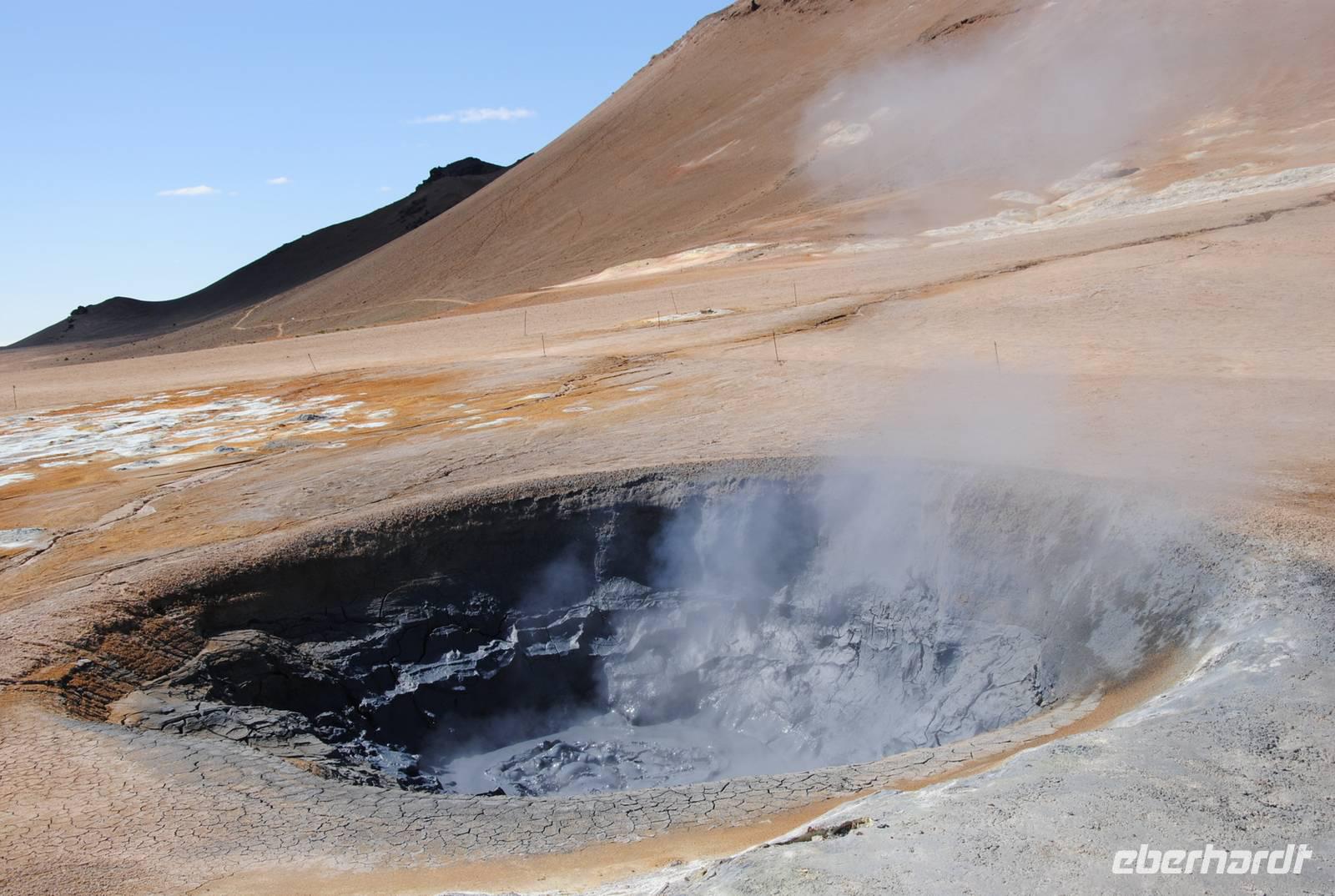 In den Schlammtöpen des Hochtemperaturgebiet Námaskad fühlte man sich dem „Teufel" wirklich ein wenig näher. Die Erde kocht hier und wie! Wir konnten nur über dieses Naturschauspiel staunen und auch die Spuren des letzten Ausbruches des Vulkans Krafla waren eine Besichtigung wert.